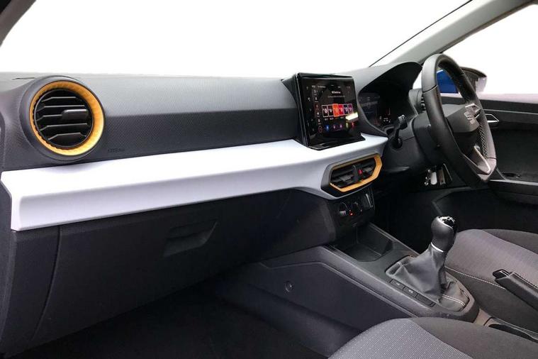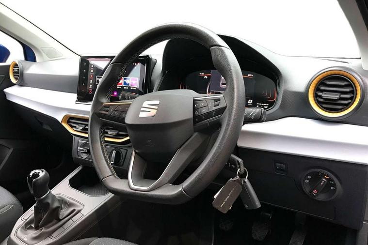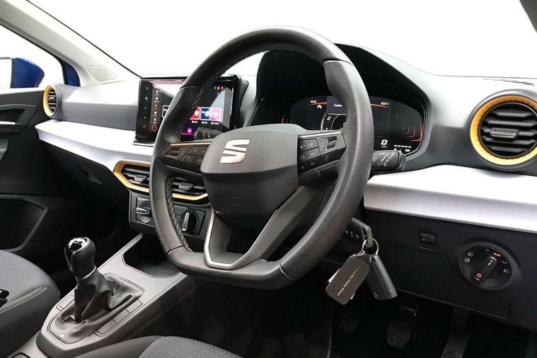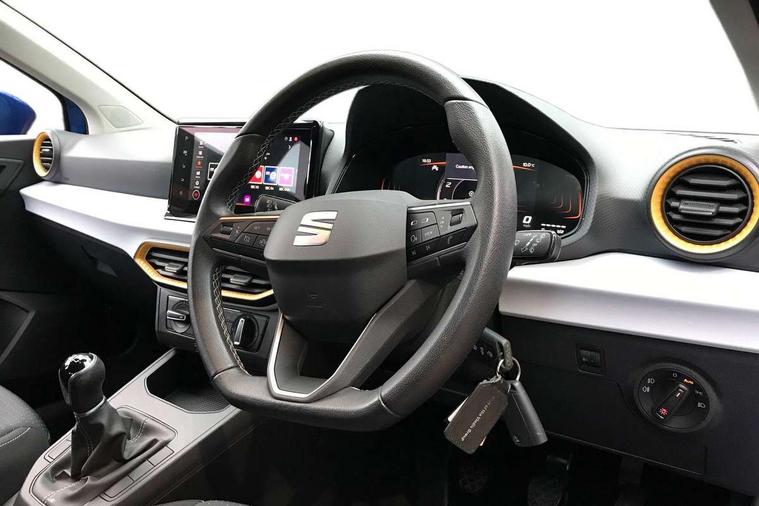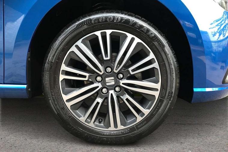 'Lights On' Reminder warning buzzer, 8" Digital cockpit, 9.2" touchscreen navigation system with type C USB socket, Voice control and DAB/AM/FM radio, Auto start and stop system, Bluetooth audio streaming with handsfree system, Cruise control, Digital clock, E-call, Full link smartphone integration with mirror link, wireless apple carplay, Google android auto + USB Type C cable for apple and android devices, Lane assist, Low fuel warning light, Outside temperature gauge, Power Steering, Seat connect with safety, service, remote and online, SEAT logo boot release, Speed limiter, Trip computer, Comfort suspension, Auxiliary input socket, Radio/MP3 player, SD card slot, Steering wheel mounted controls, Anti theft roof antenna, Body colour bumpers, Body colour door handles, Body colour door mirrors, Dimming interior rear view mirror, ECO LED automatic headlights and LED daytime running lights, Electric front windows, Electric headlight adjustment, Electrically adjustable door mirrors, Front/rear fog lights, Halogen tailights, Rain sensor, Rear side wing doors, Rear wiper, Third brake light, 3 seat bench in 2nd row, 60/40 split folding rear seat, Air conditioning with dust and pollen filter, Chrome interior detailing and grey headlining, Cloth upholstery, Comfort seats, Front courtesy lights, Front cupholders x 2, Front reading lights, Gear shift indicator, Glovebox, Height adjustable front and rear headrests (five), Height adjustable front seats, Height/reach adjust steering wheel, Illuminated boot, Instrument lighting with brightness control, Isofix, Leather multifunction flat bottomed sports steering wheel, Passenger sunvisor, Single front passenger seat, Sunvisors with mirror and driver side card holder, 3 point seatbelts on all 3 rear seats, ABS, Active front headrests, Child locks on rear doors, Electronic stability control, Energy recovery system, Front assist forward collision warning and autonomous emergency braking, Front driver and passenger side airbags with curtain airbag and front passenger airbag deactivation, Hill hold control, Multi-Collision braking, Seat belt reminder for front and rear seats, Tiredness recognition system, Tyre pressure monitoring system, Electronic engine immobiliser, Locking wheel bolts, Remote central locking + deadlocks, 16" Design machined alloy wheels in Nuclear grey, Emergency tyre repair kit,