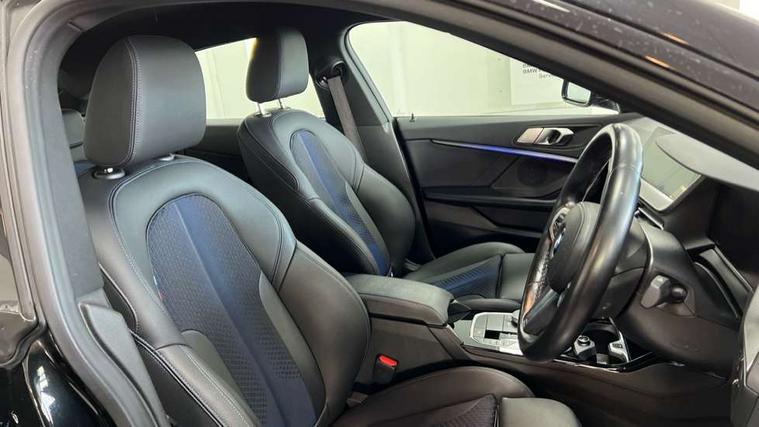 Active guard plus, Attentiveness assist, Auto start-stop, BMW Intelligent Personal Assistant, BMW Live Cockpit Professional with 10.25" high resolution instrument and control display, BMW Online services, BMW operating system with 7.0 mid interface, BMW Teleservices, Check Control warning system for monitoring of lights and door/luggage compartment open warning, Cruise control with braking function, iDrive controller with 7 short cut favourite buttons on centre console, Integrated navigation data with map data via USB +features such as 3D landmarks and micro city models, Integrated owners handbook, Intelligent voice assistant, Lane departure warning system, M Sports steering, On board computer - average speed+fuel consumption, service interval, clock/date, odometer/trip meter, outside temperature display and ice warning, Optimum shift indicator, Personal Profile, Pull away assistant, Speed limiting function, Aluminium lightweight construction, Balancer shaft, Double VANOS, Drive performance control with ECO PRO comfort + sport mode, Dual clutch automatic transmission, Electronic differential lock, High precision injection, M Sport suspension with stiffer spring/damper set-up and vehicle lowered by 10mm + twin tube gasfilled shock absorbers and Anti roll bars, Performance Control, Petrol Particulate Filter, VALVETRONIC engine management, 2x USB Type C ports (for charging and data transfer), 4G LTE Connectivity with hard wied 4G network sim card, DAB digital radio, MP3 players and RDS double tuner, Auto wipers, Automatic headlight beam throw control, Automatically dimming rear view mirror, Body colour door handles, Body colour mirror caps, Chrome 'M' logo side designation, Chrome exhaust single tailpipe, round, Direction indicator side lights integrated exterior mirrors, Electric windows - front and rear, with open/close fingertip control and trap release, Exterior mirrors - electrically folding with anti-dazzle, Fading support, Follow me home headlights, Front and rear bumper system with replaceable deformation elements, Front door sill finishers in black plastic with M designation in metallic look, Heated, electrically adjustable exterior mirror aspheric on driver side, convex on passenger side, High gloss black B pillar finish, High gloss shadow line exterior trim, High level third brake light, LED daytime running lights, LED front fog lights, LED Headlights, Lightweight engineering, Model designation on right side of tailgate, Preparation for high beam assistant, Rain sensor with automatic headlight activation, Rear boot, Rear fog lights, Rear side wing doors, Reversing light in rear light cluster, Welcome lighting, 12V power socket in centre console, 2 cupholders in front centre console, 3 rear seat head restraints, 3 rear seats, 3 spoke M sports design leather steering wheel finished in nappa leather with specific M badge, Anthracite finished floor mats with contrasting surround, Anthracite headlining, Automatic two zone climate control air conditioning, Child seat ISOFIX attachment for two outer rear seats and front passenger seat with anchorage points, Conditioned based service, Driver and front passenger seat heating, Front and rear door pockets including bottle trays, Front and rear side armrests integrated into door trim, Front armrest foldable with integrated storage compartment, Front centre interior light over interior mirror and rear centre automatic interior light when door is opened/ignition switched off or via remote key, Front head restraints, Front passenger seat, Front sports seats with electric side bolster adjustment, Glove compartment, Glovebox with light, Luggage compartment lighting, Manually adjustment steering wheel column, Multi-function controls for steering wheel, Sun visors with vanity mirrors and insert tab, Through loading system with 40/20/40 split folding rear seat, Two lashing eyes, Additional interior lighting pack - 2 Series Gran Coupe, Extended storage pack - 2 Series Gran Coupe, M Sport exterior styling aerodynamics pack - 2 Series Gran Coupe, 2 tone horn, Airbag - Front driver and passenger, front and rear head, front side, curtain head protection, manual deactivation of front passenger airbag possible, Anti lock braking system (ABS) with cornering brake control, BMW emergency call, Brake drying, Braking readiness, City braking function, Crash sensor activating of airbags, Unlocking doors, hazard warning lights, interior light, safety battery terminal, Dynamic stability control + (DSC+), Dynamic Traction Control - DTC, Electrically operated hand brake, Rear brake discs, Rear child proof door locks, Seat belt security check for driver and front passenger, Seatbelt warning, Side impact protection, Three point seat belts on all seats including front belt stopper, pyrotechnic belt tensioners and belt force limiters, Trailer stability control, Tyre pressure monitoring system, Ventilated front disc brakes, Warning triangle and first aid kit, Central locking switch for all doors, fuel filler cap and luggage compartment, Deadlocking function system to all doors, Drive away locking system on all doors and luggage compartment, Locking wheel bolts, Start/Stop button (illuminated) in centre console with keyless engine start and Auto Start-Stop deactivation button, Thatcham Cat.1 alarm and immobiliser, Two remote control key with integrated key - open/close doors/fuel flap/tailgate +1 button for unlock compartment with M design high gloss black inlay, Contrast stitching on instrument panel, 18" Burnished M double spoke bi-colour alloy wheels finished in orbit grey - style 819M, Reduced rolling resistance tyres,
