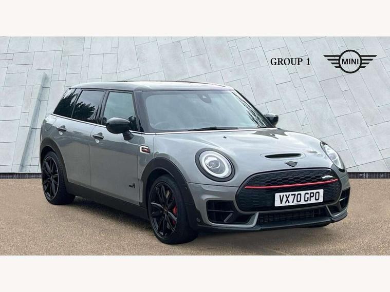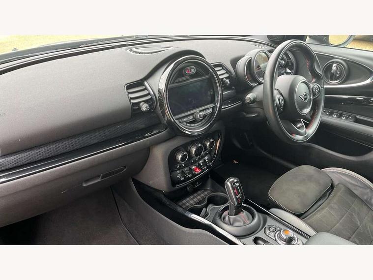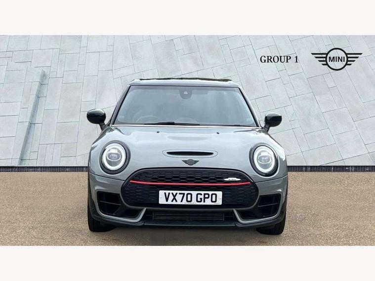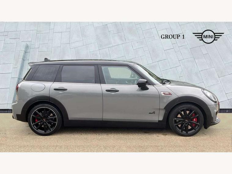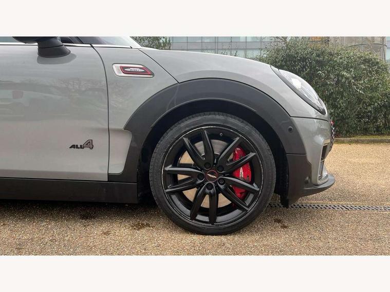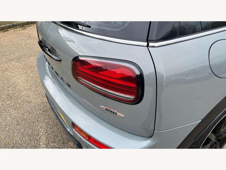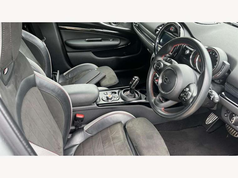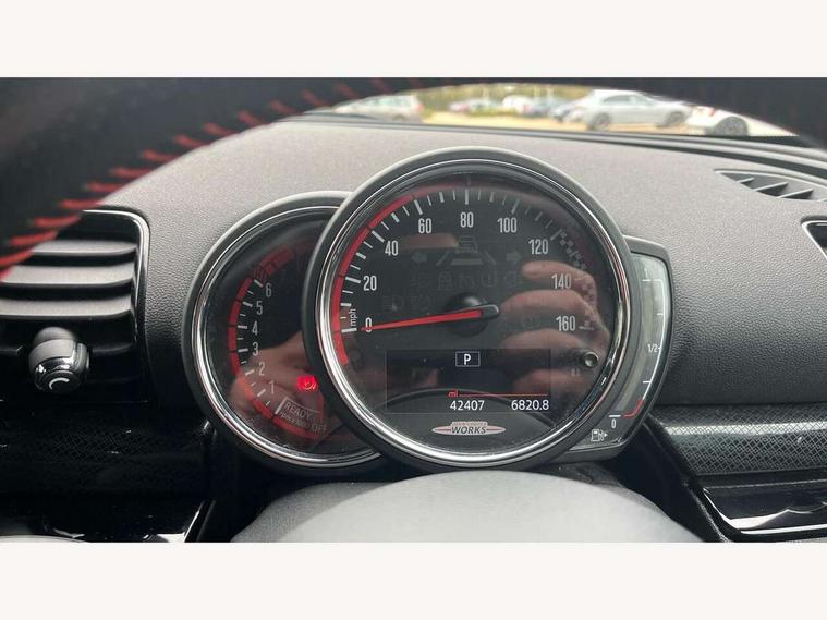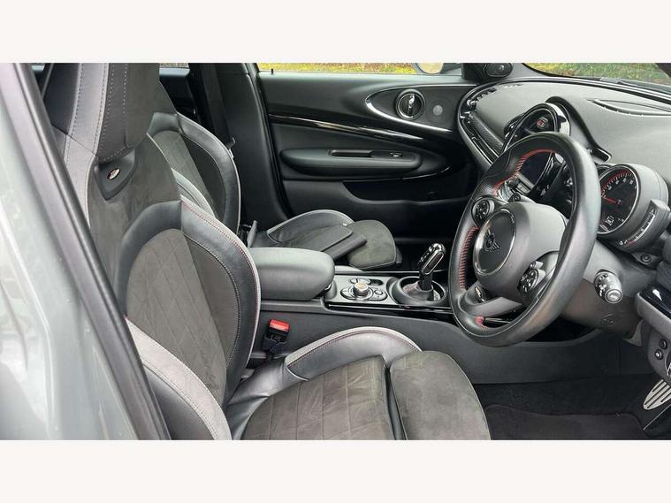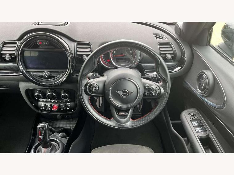 Active Guard incl speed limiting and lane departure functions with auto steering, and front collision warning with brake intervention, Automatic start/stop function with brake energy recuperation, Compatible mobile phone bluetooth with audio streaming, Digital cockpit, Electro-mechanical speed dependant steering assistance, Instrument cluster, Mini E-call, MINI TeleServices, On board computer, 8 Speed steptronic sport transmission including steering wheel paddles, All Wheel Drive (AWD), Double Vanos system, Fully variable valve control, High precision injection, Performance Control, FM tuner and DAB digital radio, Bonnet scoop, Chrome fuel filler cap, Dynamic brake lights, Electric windows, Heated rear window, Heated windscreen washer jets, John Cooper Works - aerodynamic kit (front and rear apron, spoiler), front and rear sport bumpers and part-painted side sills with door sill finishers, John Cooper Works rear spoiler, LED rear light with union jack design, Metal door sill strips with Cooper S imprint, Model logo, Model logo on rear doors, Piano black exterior, Radiator grille piano black border with honeycomb structure in matt black with John Cooper Works logo above an individual grille struct in chilli red, Rain sensor with auto headlights, Rear fog lights, Rear window wiper, Side scuttle with MINI John Cooper Works logo in high gloss black with red border, Split rear doors, Sun/heat protection glass, Twin exhaust tailpipe, White indicator lenses, 12V Accessory socket in centre console, 360L luggage compartment capacity, 4 lashing eyes in luggage compartment, 60/40 split folding rear seat, Anthracite headlining with grab handles and clothes hooks, Chrome interior highlights, Cupholders, English handbook, Glove compartment, Height and length steering column adjustment, Interior lighting with 12 basic colours selectable via toggle switch in roof, Isofix rear child seat preparation, John Cooper Works perforated leather steering wheel with contrast stitching in chilli red and John Cooper Works logo, John Cooper Works sports seat with integrated headrest, adjustable thigh support and John Cooper Works logo, Leather gearshift lever and handbrake gaiters, LED reading lights, vanity mirror lights, front foot well light and spotlight on front seats, Multifunction steering wheel, Rubberised stainless steel pedals, Storage compartments in doors, Sunvisors with vanity mirrors, Toolkit, Comfort plus pack - Mini Clubman, Excitement pack - Clubman, Navigation pack - Clubman, 17" front sport brake with 4 piston fixed calliper, 2 tone horn, 3 point seatbelts on all seats, 6 Airbags - front, side, head and seat belt tensioners, Anti-lock braking system (ABS), DSC - Dynamic Stability Control, Electronic handbrake, Front and rear disc brakes, Red brake callipers with John Cooper Works logo, Torsen mechanical limited slip differential, Tyre pressure monitoring system, Alarm system with tilt sensor, monitoring doors, bonnet interior and tailgate, Auto drive away locking, Comfort access system, Deadlocking function, Electronic vehicle immobiliser, Locking wheel bolts, Start/stop toggle with keyless go,
