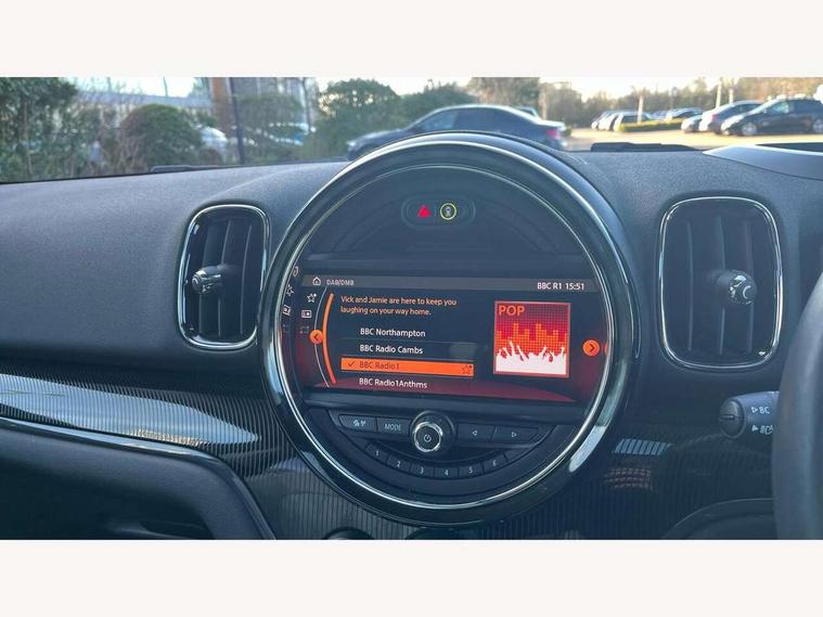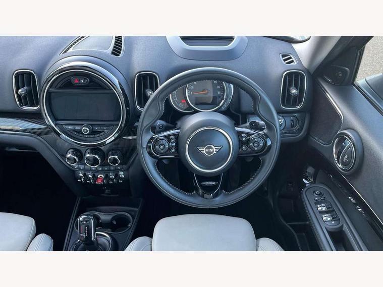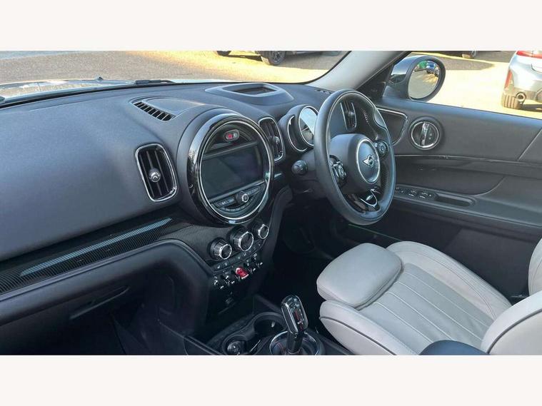 Active Guard incl speed limiting and lane departure functions with auto steering, and front collision warning with brake intervention, Automatic start/stop function with brake energy recuperation, Electro-mechanical speed dependant steering assistance, Instrument cluster, Mini E-call, MINI TeleServices, On board computer, Rear parking distance control, Double Vanos system, Fully variable valve control, High precision injection, Performance Control, Steptronic sport transmission with double clutch and steering wheel paddles, FM tuner and DAB digital radio, Bonnet scoop, Chrome border honeycomb structure radiator grille with S badge, Chrome fuel filler cap, Chrome line exterior, Day time driving lights, Dynamic brake lights, Electric windows, Heated rear window, Heated windscreen washer jets, Metal door sill strips with Cooper S imprint, Model logo, Model logo on Tailgate, Rain sensor with auto headlights, Rear fog lights, Rear window wiper, Side scuttle panel with integrated indicator, Split rear doors, Sun/heat protection glass, Twin exhaust tailpipe, White indicator lenses, 12V Accessory socket in centre console, 360L luggage compartment capacity, 4 lashing eyes in luggage compartment, 40:20:40 split folding rear seats, Chrome interior highlights, Cupholders, English handbook, Front headrests, Glove compartment, Height and length steering column adjustment, Interior lighting with 12 basic colours selectable via toggle switch in roof, Isofix rear child seat preparation, Leather gearshift lever and handbrake gaiters, LED reading lights, vanity mirror lights, front foot well light and spotlight on front seats, Manual air conditioning, Mechanical seat adjustment, driver seat height adjust, forward/back and front seats backrest, MINI Yours fine walk nappa leather steering wheel with contrast stitching in silver and MINI Yours badge, Multifunction steering wheel, Passenger seat height adjuster, Rear headrests, Storage compartments in doors, Sunvisors with vanity mirrors, Excitement pack - Countryman, Navigation pack - Countryman, 2 tone horn, 3 point seatbelts on all seats, 6 Airbags - front, side, head and seat belt tensioners, Anti-lock braking system (ABS), DSC - Dynamic Stability Control, Electronic handbrake, Front and rear disc brakes, Hill start assist, Tyre pressure monitoring system, Alarm system with tilt sensor, monitoring doors, bonnet interior and tailgate, Auto drive away locking, Deadlocking function, Electronic vehicle immobiliser, Locking wheel bolts, Start/stop toggle with keyless go, Chrome line interior, Tool kit,