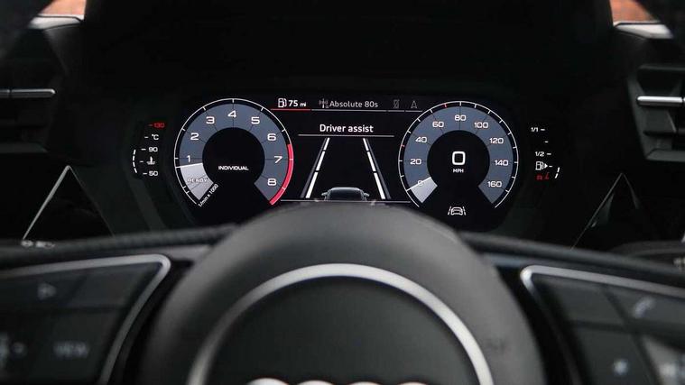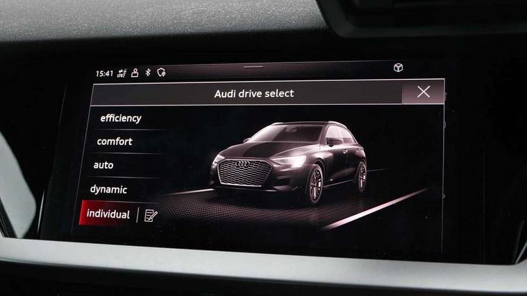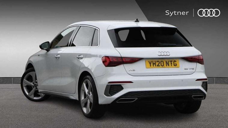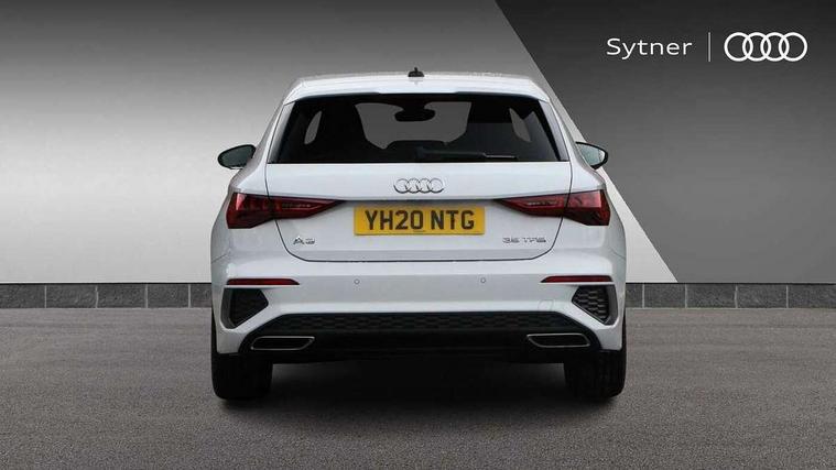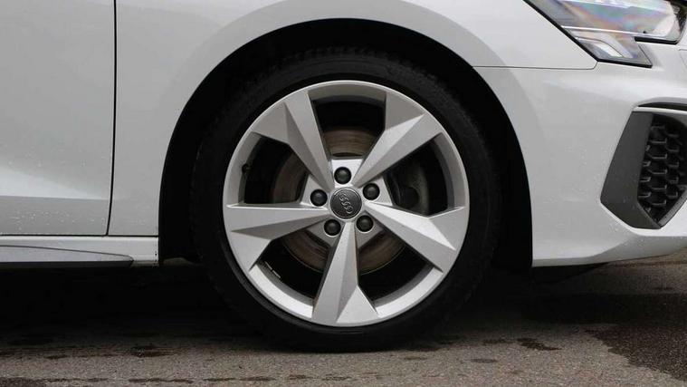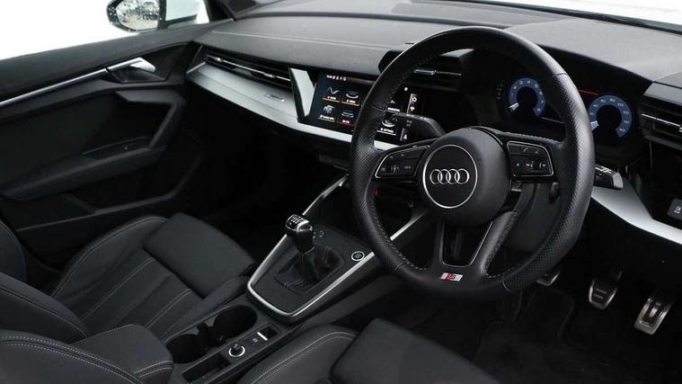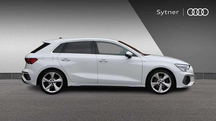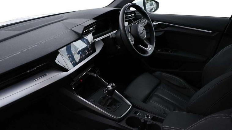 Audi connect emergency call and service, Audi drive select (Auto, Comfort, Dynamic, Efficiency and Individual), Audi smartphone interface, Audi Virtual Cockpit - 10.25" digital and colour instrument cluster, Automatic start/stop system with recuperation, Bluetooth interface, Collision avoidance assistant, Cruise control, Electromechanical power speed sensitive steering, Lane departure warning system, MMI Navigation Plus with high resolution 10.1" colour touch screen display, Rear parking sensors, Service indicator, Trip computer, Voice control system with natural language interaction, 1xUSB-A and 1xUSB-C connection, 6 passive loudspeakers, DAB Digital radio, Acoustic glass windscreen, Aluminium window trim, Auto dimming frameless rear view mirror, Body colour exterior mirrors, Electrically adjustable/heated/folding/dimming door mirrors with kerb view includes integrated LED indications + kerb view function for passenger side, Front electric windows, Illuminated aluminium inserts front door sills with S logo, LED daytime running lights, Light and rain sensors, Privacy glass - dark tinted rear window, rear door and side windows, Rear electric windows, Rear side air outlets in grained matt black, Rear wiper, S line bumpers, S roof spoiler, 12V socket and storage compartment in front centre console, 40/20/40 split folding rear seat bench with cupholder, Black cloth headlining, Dual zone electronic climate control, Front and rear centre armrest in leather, Front and rear headrests, Front/rear floor mats, Height and reach adjustable steering wheel, Interior lighting - glove compartment light and right hand side, Luggage compartment floor covering, Manual boot compartment lid, Manually adjustable front seats, Seat side bolsters, Stainless steel pedals and front footrest, Twin leather upholstery with front sports seats S embossed logo, Aluminium interior elements pack - A3 Sportback, S line styling pack - A3 Sportback, 3x3 point rear seat belts, Driver and front passenger airbag with passenger airbag deactivation, Electronic Stabilisation Control (ESC) including ABS, ASR and EDL, First aid kit with warning triangle and 2 safety vests, Hill hold assist, Pre-sense front with pedestrian and cyclist detection, Seatbelt monitoring, Tyre pressure loss indicator, Anti theft alarm, Anti-theft wheel bolts, Electronically operated child lock, Immobiliser, Remote control central locking, Accent surfaces in the dashboard and centre console in platinum grey silk effect paint finish, Dark spectrum aluminium inlays,
