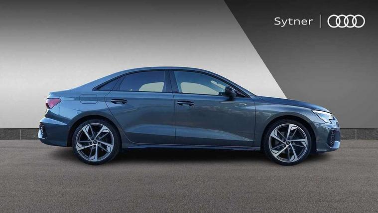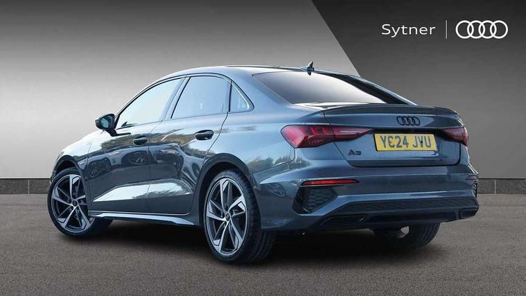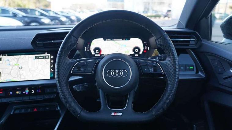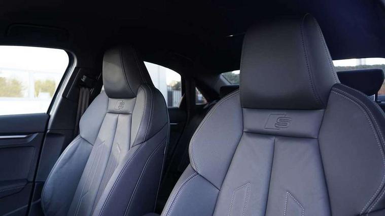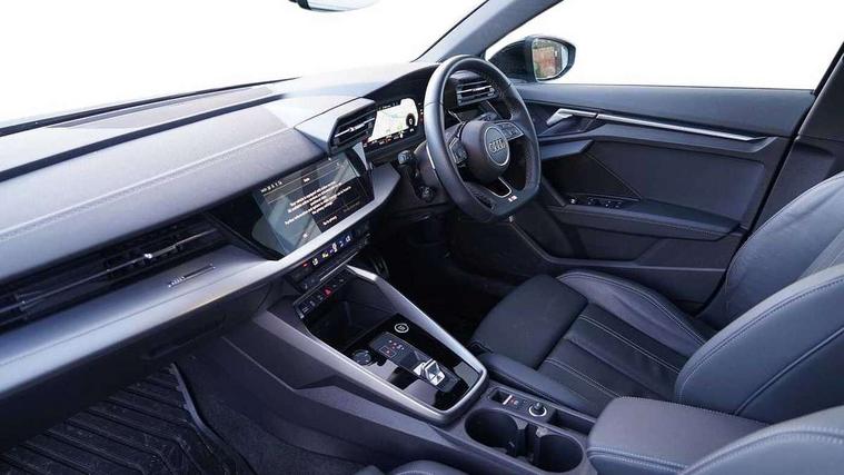 Audi drive select (Auto, Comfort, Dynamic, Efficiency and Individual), Audi smartphone interface, Audi Virtual Cockpit - 10.25" digital and colour instrument cluster, Automatic start/stop system with recuperation, Bluetooth interface, Camera based traffic sign recognition, Collision avoidance assistant, e-Call (emergency call), Electromechanical power speed sensitive steering, Lane departure warning system, MMI Navigation Plus with high resolution 10.1" colour touch screen display, Service indicator, Trip computer, Voice control system with natural language interaction, Sports suspension, 2xUSB-C connection with data and charging functions, 6 passive loudspeakers, CD player, DAB Digital radio, 3rd brake light, Acoustic glass windscreen, Audi beam uses LEDs to project the Audi logo onto the ground as you exit your A3, Auto dimming frameless rear view mirror, Electrically adjustable/heated/folding/auto dimming door mirrors with integrated LED indications + kerb view function for passenger side, Front electric windows, Illuminated door sills with aluminium inserts at the front with S logo, LED daytime running lights, LED headlights with LED rear lights and dynamic rear indicators, Light and rain sensors, Model and engine designation badges at rear, Privacy glass - dark tinted rear window, rear door and side windows, Rear boot, Rear electric windows, Rear side wing doors, S roof spoiler, 12V socket and storage compartment in front centre console, 3 seat bench in 2nd row, 3 spoke flat bottomed leather multifunction sport steering wheel with gear shift paddles, 4 way electrically adjustable lumbar support for driver and front passenger, 60/40 split folding rear seat bench, Black cloth headlining, Dual zone electronic climate control, Front and rear centre armrest in artificial leather, Front and rear headrests, Front/rear floor mats, Height and reach adjustable steering wheel, Interior lighting - glove compartment light and right hand side, Luggage compartment floor covering, Manual boot compartment lid, Single front passenger seat, Stainless steel pedals and front footrest in black, Twin leather upholstery with front sports seats S embossed logo, Aluminium interior elements pack - A3, Black styling pack - A3 Saloon/Black edition, LED interior lighting pack - A3 Saloon, 3x3 point rear seat belts, Driver and front passenger airbag with passenger airbag deactivation, Electronic Stabilisation Control (ESC) including ABS, ASR and EDL, First aid kit with warning triangle and 2 safety vests, Front side airbags with head airbags and interaction airbag, Pre-sense front with pedestrian and cyclist detection, Seatbelt monitoring, Tyre pressure loss indicator, Anti theft alarm, Anti-theft wheel bolts, Electronically operated child locks, Immobiliser, Remote control central locking, Aluminium air vent surrounds, Dark spectrum aluminium inlays, accent surfaces in the dashboard and centre console in platinum grey silk effect paint finish, 19" 5 arm trapezoid design alloy wheels in matt grey with diamond cut finish,