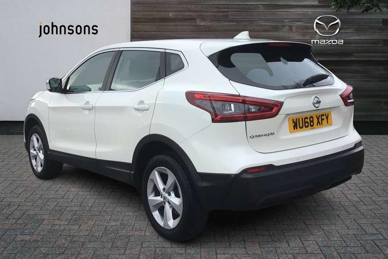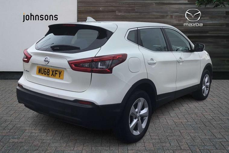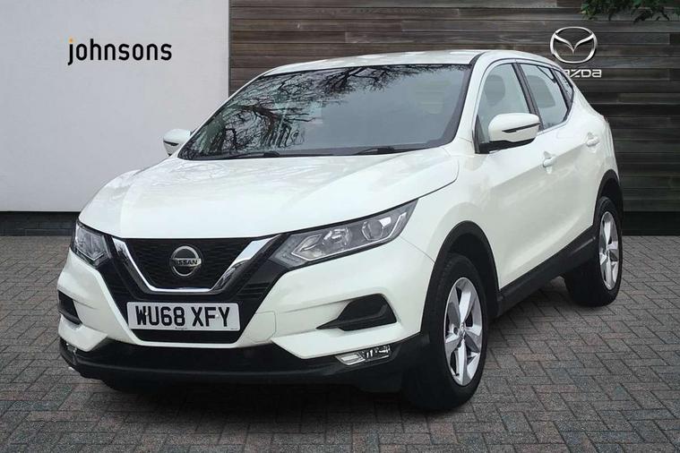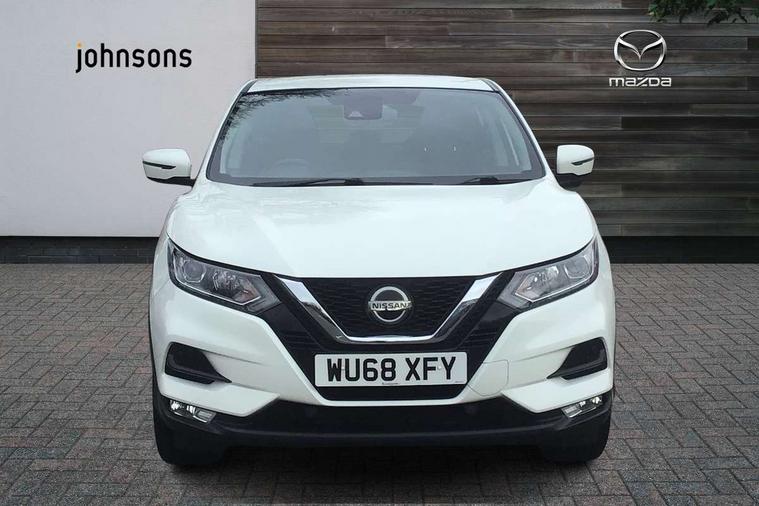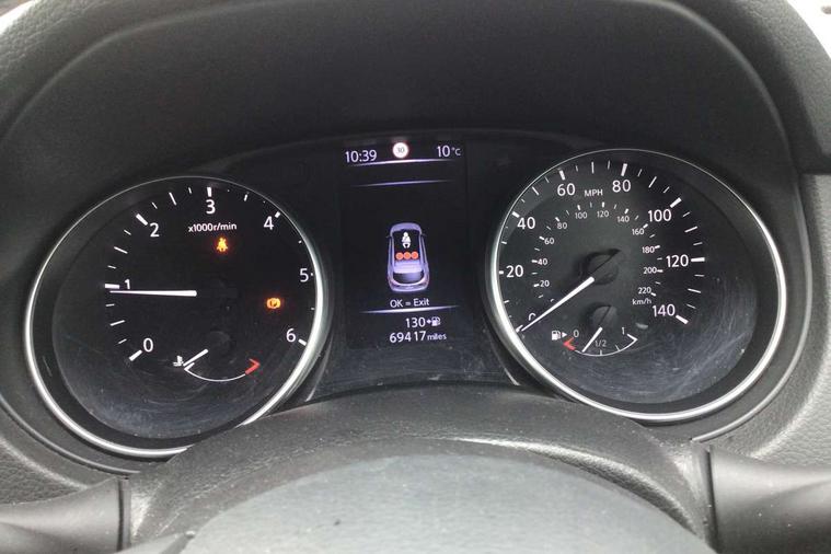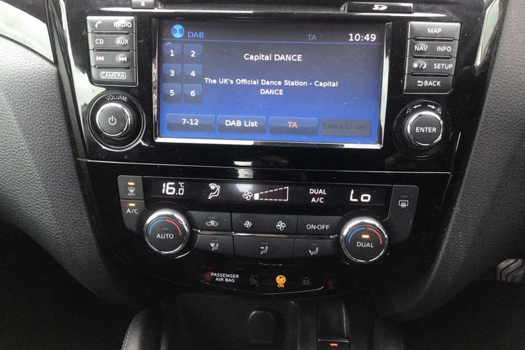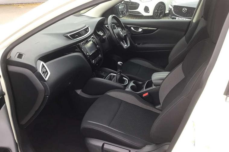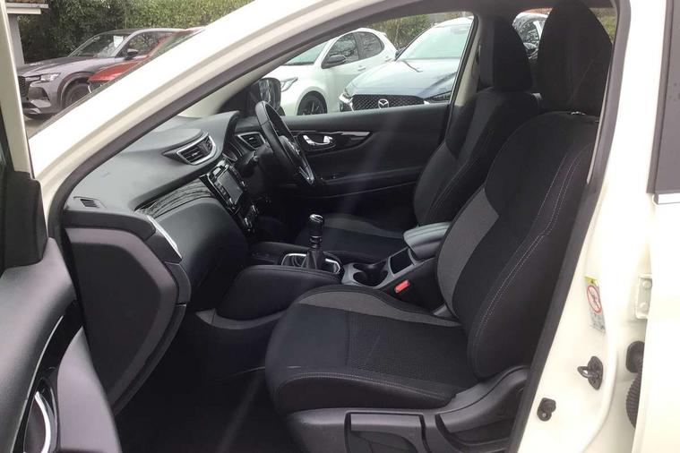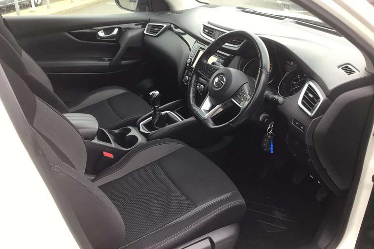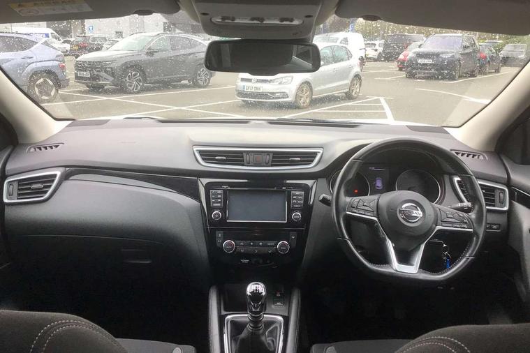 Advanced drive assist display 5'' TFT coloured screen, Bluetooth phone integration system, Cruise control + speed limiter, Electric speed sensitive power steering, Front parking sensors, Lane departure warning system, Nissan connect evo 7" touchscreen navigation and entertainment system, Outside temperature sensor, Rear parking sensors, Rear view camera, Selectable steering, Service interval indicator, Smartphone integration, Stop/start system, Traffic sign recognition, Trip computer, Diesel particulate filter, Nissan chassis control (intelligent ride control, intelligent trace control, intelligent engine brake), 6 speakers, Aux-in socket, DAB Digital radio, Radio/CD, Steering wheel mounted audio controls, USB port, Anti dazzle rear view mirror, Auto wipers, Body colour bumpers, Body colour door handles, Body colour door mirrors, Chrome window surround, Daytime running lights dip function when turn signal applied, Electric folding door mirrors, Electric front and rear windows with one touch illuminated window controls, Electric front/rear windows, Electrically adjustable door mirrors, Front fog lights, Halogen headlights, Heated door mirrors, High beam assist, Intelligent auto headlights, LED daytime running lights, LED indicators in door mirrors, Rear roof spoiler, Rear wiper, Shark fin antenna, Underbody vortex generators, 2 X front 12v power sockets, 3 height adjustable rear headrests, 60/40 split folding rear seat, Ambient interior lighting, Boot light, Centre console storage box/armrest, Chrome interior door handles, Cloth upholstery, Configurable luggage board system, Driver's seat manual height adjust, Dual zone climate control, Front and rear door pockets with bottle holders, Front and rear seat belt pre-tensioners with load limiters, Front headrests, Height adjustable front headrests, ISOFIX on outer rear seats, Leather D shaped steering wheel, Leather gear lever, Leather knee pad, Manual height adjustable front passenger seat, Manual lumbar support on driver seat, Manual lumbar support on passenger seat, Parcel shelf stow function under luggage board, Pollen filter, Rear armrest with 2 cupholders, Rear headrests, Tilt/telescopic adjustable steering wheel, 6 airbags - Driver, front passenger, curtain and side airbags, ABS, ESP, EBD and brake assist, Auto hold function, Child locks on rear doors, Electronic parking brake, Front and rear seat belt warning, Front passenger airbag deactivation, Height adjustable front seatbelts, Hill start assist, Intelligent emergency braking with pedestrian recognition, Three 3 point rear seatbelts, Tyre pressure monitoring system, Anti-theft immobiliser, Remote central locking, Thatcham Cat.1 alarm, Piano black interior trim, 17" alloy wheels, Tyre puncture repair kit,