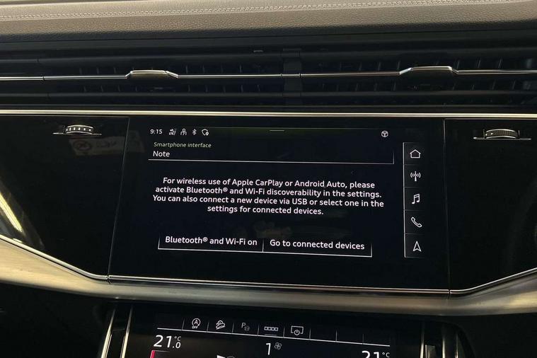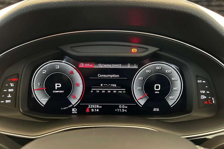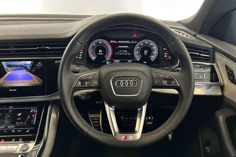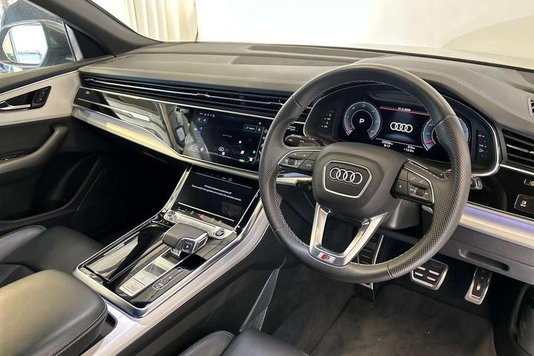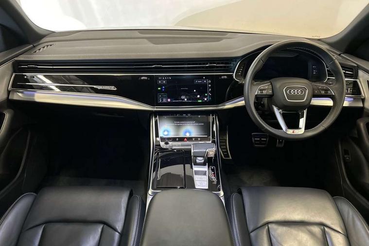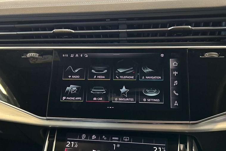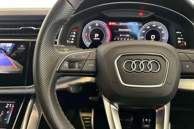 10.1" and 8.6" Dual colour touchscreens, Audi connect safety and service (e-call), Audi connect with Amazon Alexa Integration, Audi drive select, Audi parking system plus includes 360 degree display with front and rear sensors, Audi virtual cockpit - 12.3" high resolution LCD display with fully customisable instrument cluster, Automatic start/stop system, Electro-mechanical PAS, Low washer fluid indicator, MMI - Multi Media Interface control system, MMI navigation plus with MMI touch, Natural voice recognition, On board computer, Operating buttons in black, glass look with haptic feedback, Power operated tailgate, Rear view camera, Service interval indicator, Smartphone interface includes wireless Apple carplay/Android Auto, 48V Mild hybrid technology, Adaptive sport air suspension, Diesel particulate filter, Quattro all wheel drive with self locking centre differential, Audi music interface with 2 USB ports with charge and data functions, Audi sound system with 6 channel amplifier, 180 watt amplifying capacity and 10 loudspeakers including subwoofer, Aux-in socket, DAB Digital radio, 3rd brake light, Acoustic windscreen, Aluminium window trim, Audi HD Matrix LED headlights with dynamic front and rear indicators, Auto dimming frameless rear view mirror, Body colour door mirrors, Coming/leaving home lighting function, Electric front+rear windows, Electrically folding auto dimming/adjustable/heated door mirrors with memory function, LED side indicators and kerb view function for passenger side, Headlight washers, Heat insulating glass in windshield, Illuminated door sill trims with S line logo, LED signature daytime running lights, Platinum grey front spoiler lip and diffuser insert with honeycomb grille in black, Privacy glass - dark tinted rear and rear side windows from B-pillar backwards, Rain and light sensors, Rear side wing doors, Rear wiper, S line badges on front wings, S Line body styling, S line bumpers in full body colour paint finish, S line roof spoiler, S Line side skirts, S line side ventilation grille, 2 zone automatic climate control, 3 bench rear seats in 2nd row, 4-way lumbar support for front seats, 40:20:40 split folding rear bench seat, Black cloth headlining, Comfort front centre armrest, Driver seat memory function, Electrically adjustable front seats, Front head restraints, Front/rear floor mats, Heated front seats, ISOFIX child seat mounting for front passenger seat and 2 outer rear seats with top tether child seat mounting for all 3 rear seats, LED interior ambient lighting, Luggage compartment sill protection in stainless steel, Rear centre armrest with 2 cupholders, Rear headrests, Single front passenger seat, Stainless steel pedals, Sunvisors with illuminated vanity mirrors, 3 point seatbelts on all seats, Audi pre sense front, Child locks on rear doors, Driver and front passenger, front side and curtain airbags, Electromechanical parking brake, Electronic Stability Control (ESC) including ABS, ASR and EDL, Front passenger airbag deactivation, Hill descent control, Hill hold assist, Predictive pedestrian protection, Seatbelt monitoring, Traction control, Tyre pressure loss indicator, Warning triangle and first aid kit, Anti theft alarm with tow away protection, Anti-theft wheel bolts and wheel loosening detection, Immobiliser, Keyless go with remote central locking, Dark matt brushed aluminium inlay, Tool kit, Tyre repair kit,