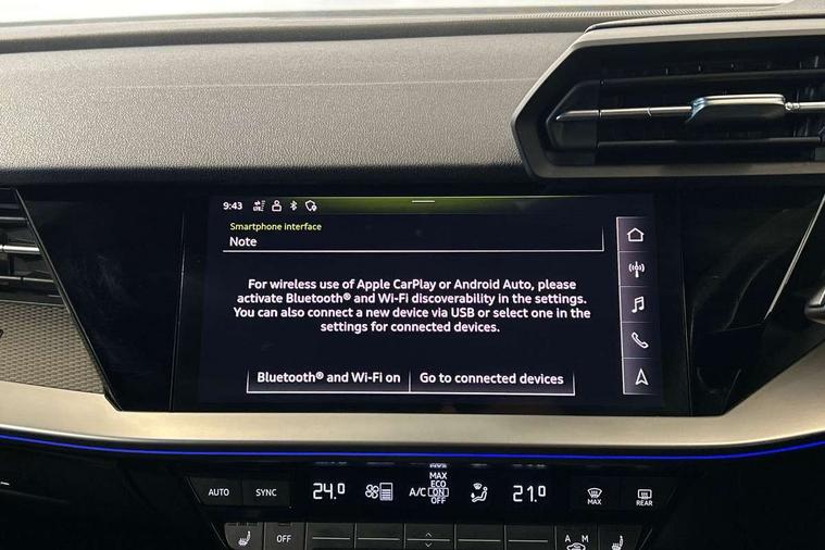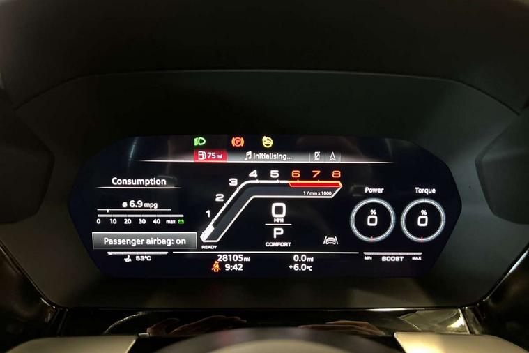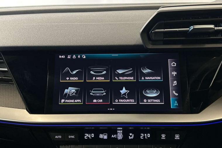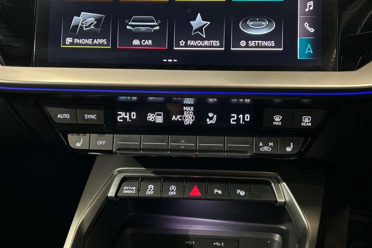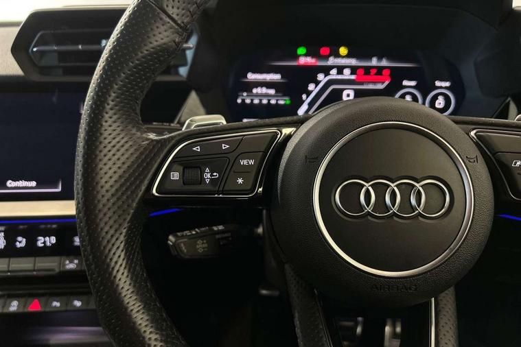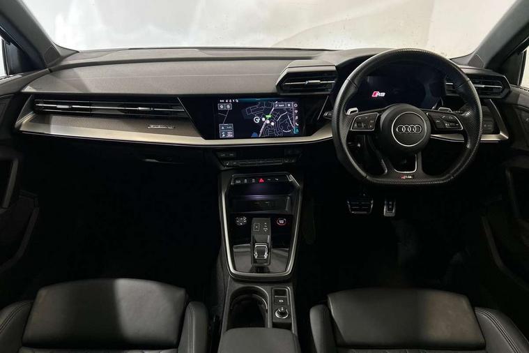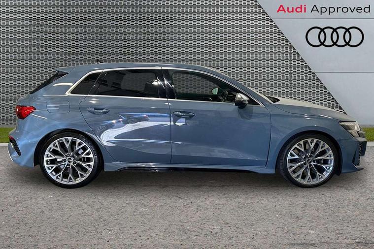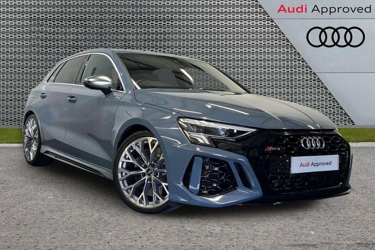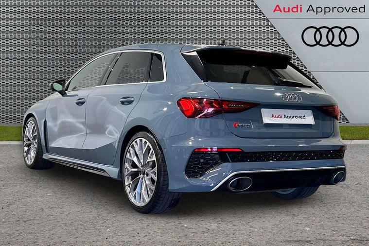 Audi smartphone interface, Audi virtual cockpit with RS specific display 12.3" full colour digital instrument cluster, Automatic start/stop system with recuperation, Bluetooth interface, Collision avoidance assistant, Emergency e-call, Lane departure warning system, Legal emergency call, Manual boot opening, Parking assist with parking system plus, Progressive power assisted steering, Quattro permanent four wheel drive, Rear suspension, Audi sound system impressive sound with 10 loudspeakers including centre speaker and subwoofer, 6-channel amplifier with a total output of 180 watts, DAB Digital radio, 3rd brake light, Acoustic glass windscreen, Audi beam uses LEDs to project the Audi sport logo onto the ground as you exit your RS 3, Auto dimming rear view mirror, Black side skirts, Body colour roof, Daytime running lights, Door mirrors - electrically adjustable, heated, folding and auto dimming on both sides, Headlight washers, LED headlights with LED rear lights + dynamic rear indicators, Light and rain sensors, Matt aluminium door mirrors, Matt aluminium window trims, Privacy glass - dark tinted rear and rear side windows from B-pillar backwards, Rear side wing doors, Rear window wiper and washer system, 3 seat bench in 2nd row, 40/20/40 split folding rear seat bench, Black cloth headlining, Dual zone electronic climate control, Front and rear headrests, Front centre armrest, Front sports seats RS embossed logo, Front/rear floor mats, Heated front seats, Honeycomb stitching and RS embossing, Illuminated door sill trims inlays in aluminium with RS 3 logo, Illuminated vanity mirror, Manually adjustable front seats, RS emblems, Single front passenger seat, Stainless steel pedals and front footrest in black, Aluminium interior elements pack - RS3, Ambient lighting pack - RS3, MMI navigation plus with MMI touch - RS3, RS bodystyling - RS3, Storage Pack - RS3, 3x3 point rear seat belts, ABS/EBD, ASR, Audi pre sense front, Driver/Front Passenger airbags, EDL, ESC - Electronic Stability Control + traction control, Front passenger airbag deactivation, Front side airbags with head airbags and interaction airbag, Hill hold assist, Seat belt reminder with passenger presence detection in rear, Tyre pressure loss indicator, Warning triangle and first aid kit, Anti theft alarm, Anti-theft wheel bolts, Electronically operated child lock, Remote control central locking, Carbon inlays, accent surfaces in the dashboard and centre console in platinum grey silk effect paint finish, 19" 10 Y spoke platinum grey, gloss turned finish alloy wheels, Tool kit, Tyre repair kit,