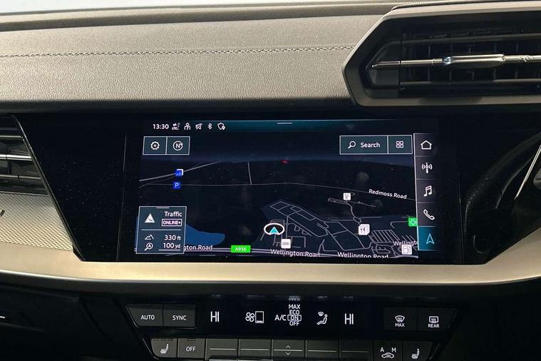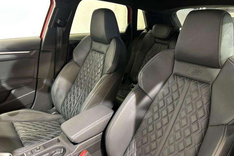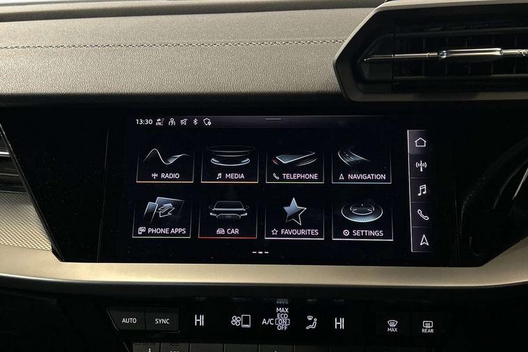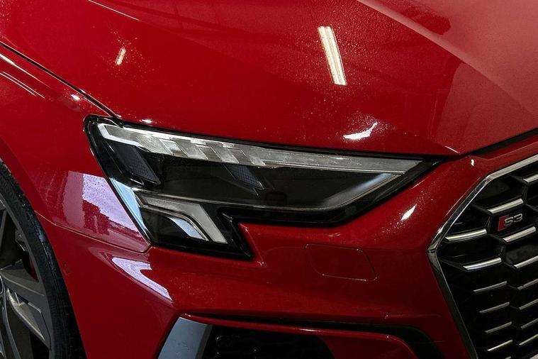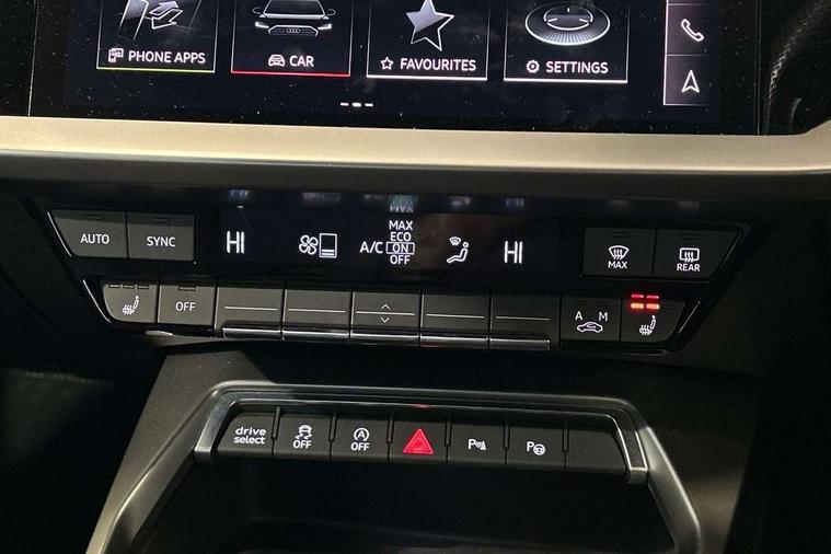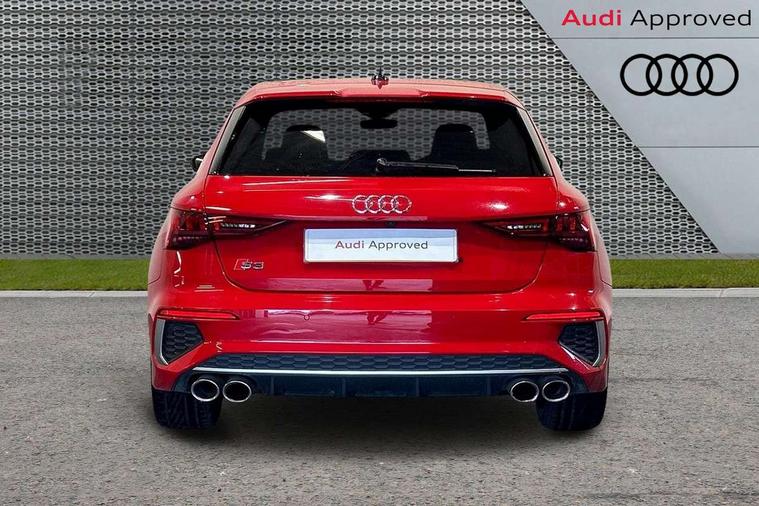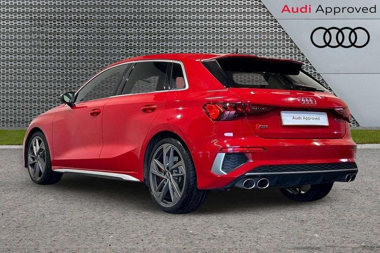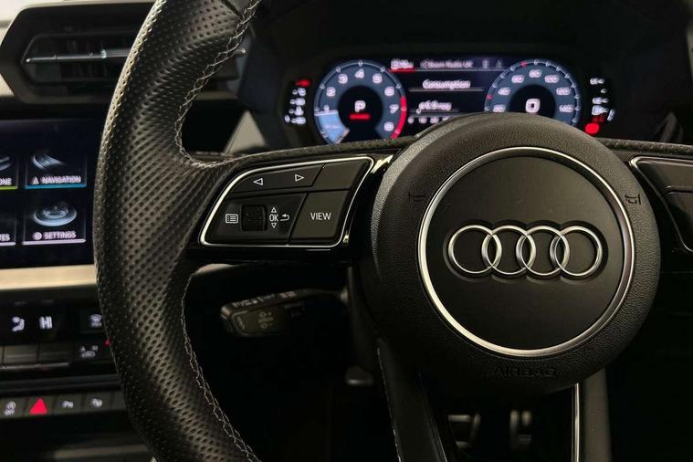 Audi connect emergency call and service, Audi drive select (Auto, Comfort, Dynamic, Efficiency and Individual), Audi smartphone interface, Audi Virtual Cockpit - 10.25" digital and colour instrument cluster, Automatic start/stop system with recuperation, Bluetooth interface, Collision avoidance assistant, Lane departure warning system, MMI Navigation Plus with high resolution 10.1" colour touch screen display, Progressive steering, Service indicator, Trip computer, Voice control system with natural language interaction, Quattro permanent all wheel drive, S sports suspension, 2xUSB-C connection with data and charging functions, 6 passive loudspeakers, DAB Digital radio, Acoustic glass windscreen, Aluminium window trim, Audi Beam uses LEDs to project the Audi S3 logo, Auto dimming frameless rear view mirror, Dual branch oval twin tailpipes in chrome plated finish, Electrically adjustable/heated/folding/auto dimming door mirrors with integrated LED indications + kerb view function for passenger side, Front electric windows, Headlight washers, Illuminated aluminium inserts front door sills with S logo, LED daytime running lights, LED headlights with LED rear lights and dynamic rear indicators, Light and rain sensors, Privacy glass - dark tinted rear window, rear door and side windows, Rear electric windows, Rear side air outlets in grained matt black, Rear wiper, 12V socket and storage compartment in front centre console, 40/20/40 split folding rear seat bench with cupholder, Black cloth headlining, Dual zone electronic climate control, Front and rear centre armrest in leather, Front and rear headrests, Front/rear floor mats, Heated front seats, Height and reach adjustable steering wheel, Interior lighting - glove compartment light and right hand side, Luggage compartment floor covering, Manually adjustable front seats, Seat side bolsters, Stainless steel pedals and front footrest, Aluminium interior elements pack - A3 Sportback, Design body styling - A3 Sportback, Storage pack - A3 Sportback, 3x3 point rear seat belts, Driver and front passenger airbag with passenger airbag deactivation, Electronic Stabilisation Control (ESC) including ABS, ASR and EDL, First aid kit with warning triangle and 2 safety vests, Front side airbags with head airbags and interaction airbag, Hill hold assist, Pre-sense front with pedestrian and cyclist detection, Seatbelt monitoring, Tyre pressure loss indicator, Anti theft alarm, Anti-theft wheel bolts, Electronically operated child lock, Immobiliser, Remote control central locking, Accent surfaces in the dashboard and centre console in platinum grey silk effect paint finish, Dark spectrum aluminium inlays,