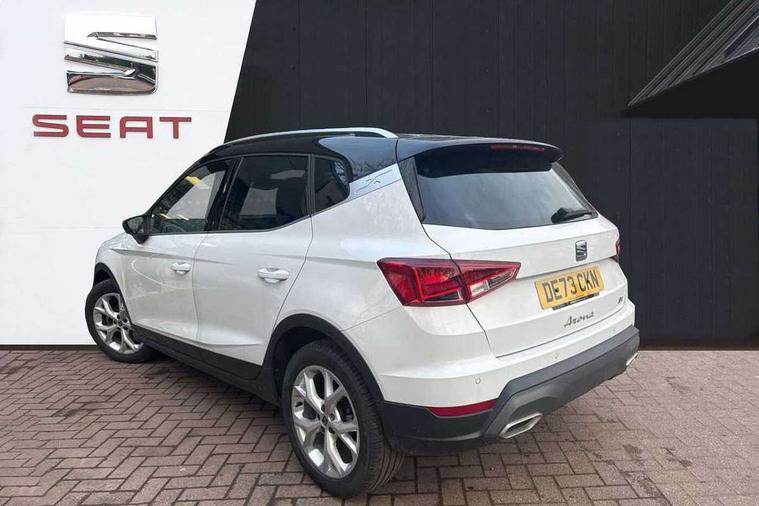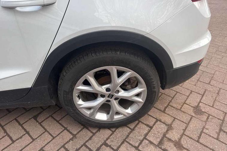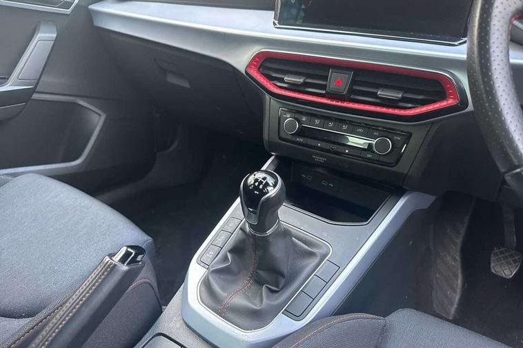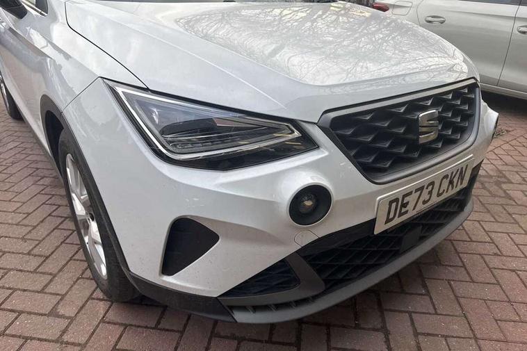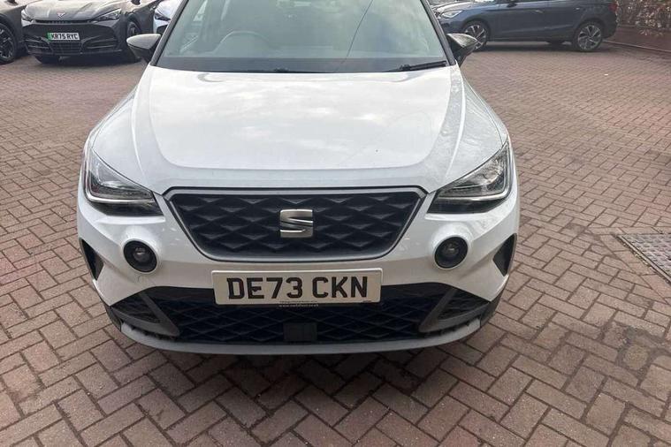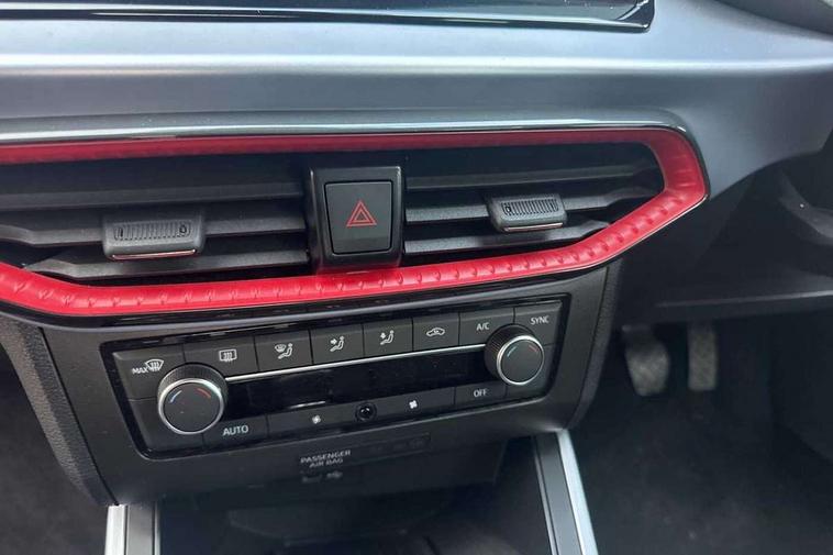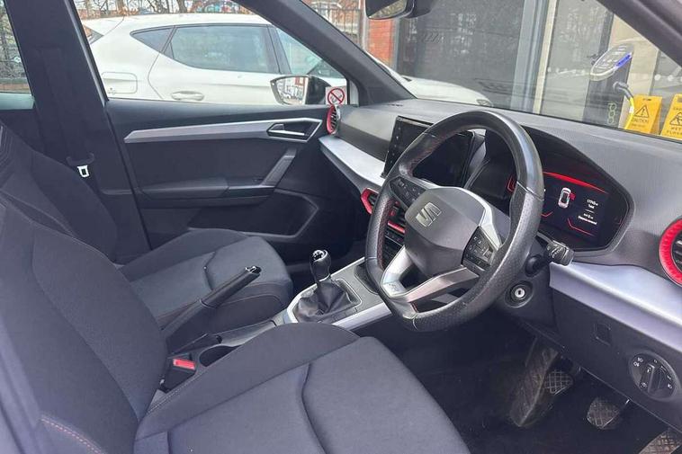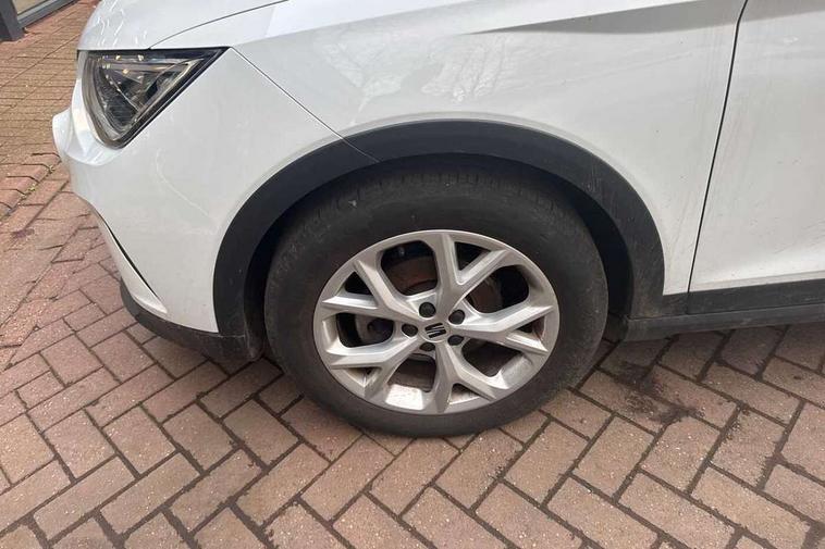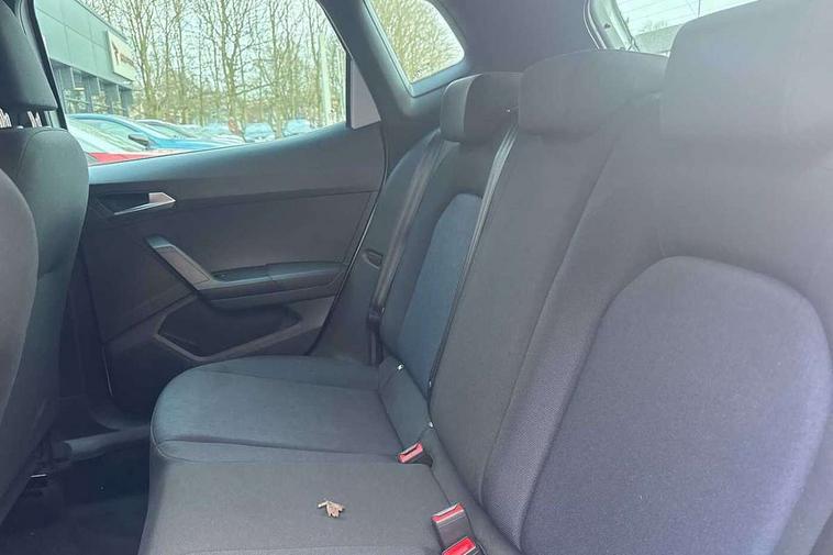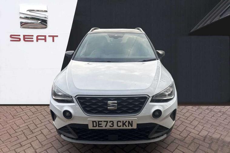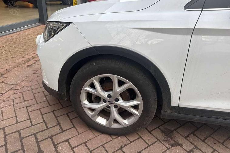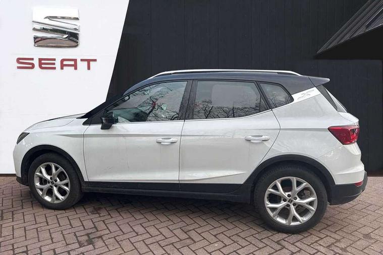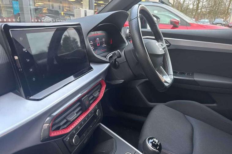 'Lights On' Reminder warning buzzer, 8" Digital cockpit, Digital clock, E-call, Electric speed sensitive power steering, Full Link Smartphone Integration with Mirror Link, Apple Car Play, Google Android Auto with USB Type C cable for Apple and Android compatibility, Lane keeping system, Low fuel warning light, Outside temperature display, Rear parking sensor, RPM counter, Seat connect with safety, service, remote and online, SEAT Drive profile - Four different models normal-sport-eco-individual, steering response, throttle response, Trip computer, Wireless phone charger, 9.2" colour touchscreen with navigation system, voice control and USB port (type c), Bluetooth interface for hands free and audio streaming, DAB digital radio and AM/FM radio, Steering wheel mounted audio controls, Anti theft roof antenna, Auto dimming interior rear view mirror, Automatic activation of hazard warning lights, Body coloured bumpers, Body coloured door handle inserts, Chrome roof rails and window surrounds, Dark tinted rear windows, Electric front/rear windows, Electrically adjustable, heated and folding door mirrors, Front fog lights with cornering function and rear fog light, FULL LED automatic headlights with dynamic headlight range control, coming and leaving home, LED daytime running lights, LED rear tail lights and licence plate lights, Protective side mouldings, Rain sensing wipers, Rear side wing doors, Rear spoiler, Rear window wash/wipe, Roof colour door mirrors, Third brake light, Twin exhaust pipe styling hidden exhaust pipe, Visible VIN plate, Windshield wiper with intermittent control and potentiometer, 2 cupholders, 3 seat bench in 2nd row, 60/40 split folding rear seat, Aircare filter, Black interior roof, Cloth upholstery, Double boot floor, Driver sunvisor with covered mirror + card holder, Dual zone climate control, Front courtesy light with front reading lights, Front sport seats, Gear shift indicator, Height adjustable front seats, Height/reach adjustable steering column, Illuminated boot, Instrument lighting with brightness control, Interior ambient lighting, Interior light in footwell, central console and door panel, ISOFIX points in outer rear seats with top tether anchorage points, Passenger sunvisor with vanity mirror, Perforated flat bottomed leather steering wheel/gear knob/handbrake with red stitching and FR logo, Single front passenger seat, Two front and three rear height adjustable headrests, Interior chrome pack - Arona, 3 point seatbelts on all rear seats, ABS, Active front headrests, Child locks on rear doors, Driver and front passenger airbags with front passenger airbag de activation, front side and curtain airbags, Electronic stability control, Emergency Brake Assist (EBA) and front assist, Front and rear seatbelt reminder, Hill hold control, Multi-Collision braking, Tiredness recognition system, Traction control, Tyre pressure monitoring system, Alarm with back-up horn, Electronic engine immobiliser, Locking wheel bolts, Remote central locking + deadlocks, Tow away protection, Titan black dashboard, 17" Dynamic alloy wheels,
