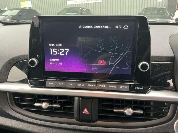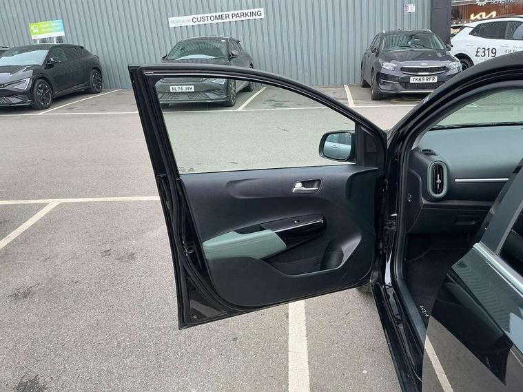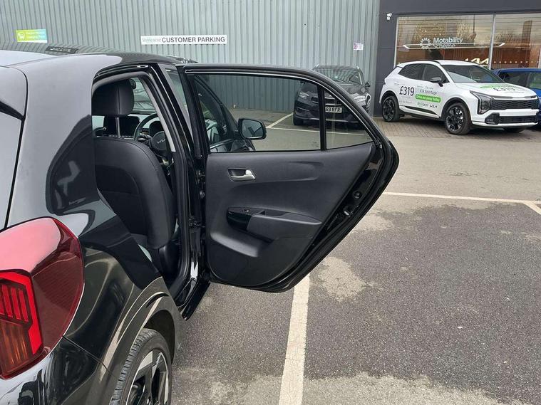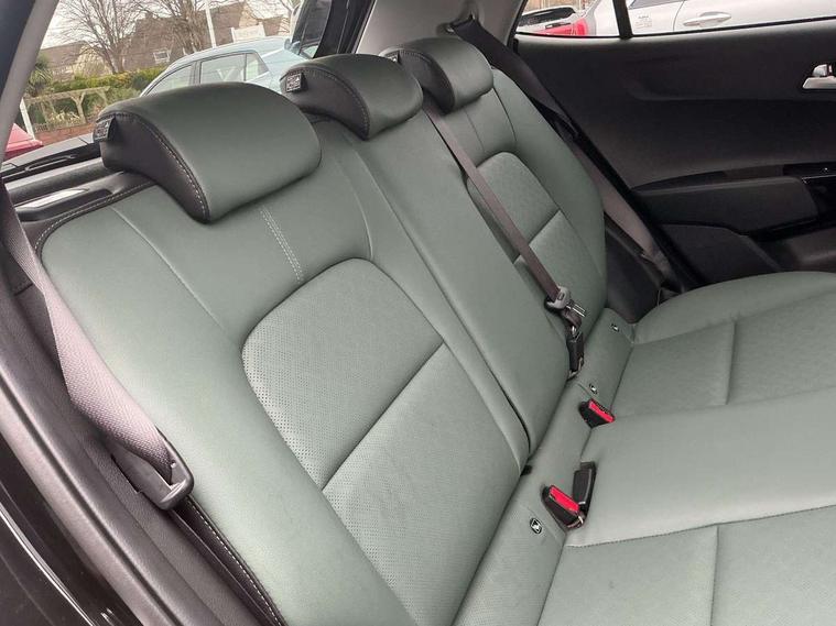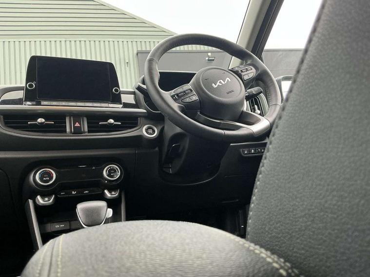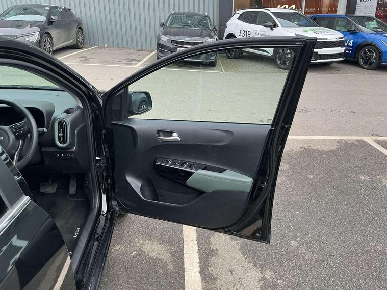 4.2" driver display screen, 8" touchscreen navigation, Apple car play/Android Auto with voice control, Cruise control + speed limiter, Emergency call service, Emergency stop signalling system, External temperature gauge, Forward Collision-Avoidance Assist (FCA) 1.0 - City/Pedestrian/Cyclist, Intelligent speed limit assist, Kia Connect (UVO), Lane Follow Assist 1.0, Lane keep assist, Motor driven power steering, Rear parking sensors, Reversing camera system, Tachometer, Trip computer, Wireless Smartphone charger, 4 speaker audio system, Bluetooth with music streaming, USB ports for connection of a media device, Automatic defog system, Automatic headlight control system, Body colour bumpers, Body colour side sill mouldings, Body coloured door mirrors, Body coloured wheel arches, Electric adjustable/heated/folding door mirrors with LED indicators lights, Electric front and rear windows, Electric front touch drivers front window, Headlamp levelling, Heated rear window, High mount brake light, LED daytime running lights, LED Headlights, LED rear lights, Premium paint, Privacy glass - Rear windows and tailgate, Rain sensing front wipers, Rear fog lights, Rear side wing doors, Rear wiper, Silver window surround, Tinted windshield glass, Visible VIN plate, 12V power point front, 3 seat bench in 2nd row, 60:40 Split folding rear seats, All round height adjustable headrests, Artificial leather steering wheel, Artificial leather upholstery, Automatic air conditioning, Centre console storage box, Driver and front passenger sunvisors with driver's side illuminated vanity mirrors, Front and rear door storage, Front cabin lights, Front passenger USB-C charging port, Glovebox, Grey headlining, Heated front seats, Heated steering wheel, ISOFIX Child seat top tethers and anchor fixings, Luggage area light, Luggage board, Luggage net + hook, Manual adjust steering wheel, Manual adjustable driver and front passenger seat, Rear cabin lights, Rear USB charging port, Single front passenger seat, All round 3-point seatbelts, Anti-lock braking system (ABS), Electronic stability control, Front airbags, Front passenger airbag cut-off switch, Front seatbelt height adjusters, Hill hold control, Hill start assist control (HAC), Rear airbags, Seatbelt reminder warning, Seatbelt warning, Side airbags, Side impact protection, Torque vectoring brake based and straight line stability (SLS), Traction control, Tyre pressure monitoring system, Vehicle stability management, Anti theft alarm, Engine immobiliser, Folding key, Locking wheel nuts, Manual child locks, Rear occupant alert, Remote central door locking, Smart key with engine start/stop button, Smart key with motion sensor, Thatcham category 2 security alarm and immobiliser, 16" alloy wheels, Tyre mobility kit,