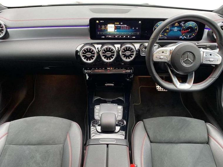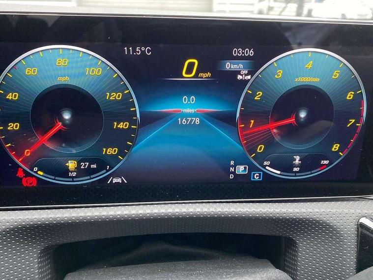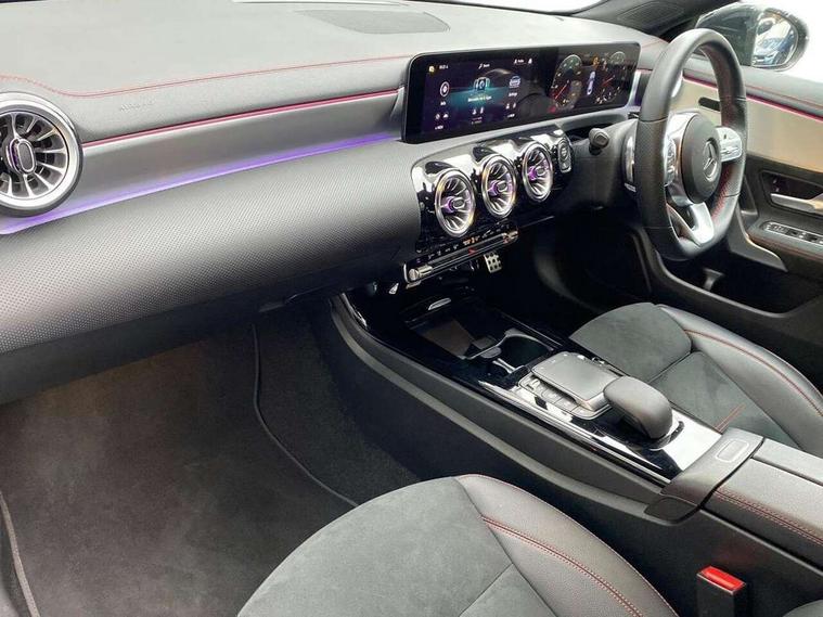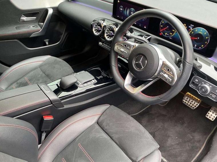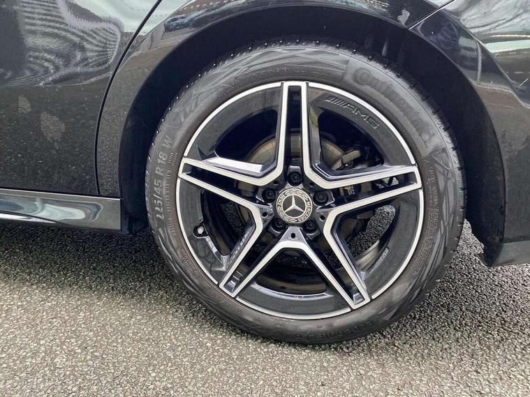 10.25 inch Instrument display with digital cockpit, 10.25 inch touchscreen central media display, Active lane keeping assist, Attention assist - Monitors steering behaviour and long journey fatigue, Bluetooth connection, Car wash mode, Cruise control with limiter, Direct steer system with speed sensitive power steering, DYNAMIC SELECT with a choice of driving modes (ECO, Comfort, Sport and Individual), ECO start/stop function, Fluid level warning indicator for fuel, oil, coolant and washer fluid, Hard-disk navigation, Hey Mercedes Voice activation, Lamp failure indicator, Mercedes me connect including emergency call system, accident recovery, breakdown and maintenance management, Mercedes me remote services, Outside temperature gauge, Owners manual and service booklet in English, Pre-installation of private car share, Preinstallation for Mercedes Benz link, Radio aerial integrated into front and rear windshields, Service indicator (ASSYST), Smartphone integration with Apple CarPlay and Android auto, Speed limit assist, Trip computer in multifunction display with current consumption indicator, Lowered comfort suspension, Rear axle multi-link, DAB digital radio tuner, MBUX multimedia system, Mercedes Benz sound system (100 W) with 6 speakers, USB (type C) ports (2) in stowage compartment and 1 in front of centre console, Adaptive brake lights, AMG body styling with AMG front apron and rear apron and visible exhaust tailpipe in chrome trim elements, AMG bodystyling side skirts, Body colour bumpers, Body colour door handles, Chrome beltline strips, Diamond radiator grille pins in chrome, Electric windows, Electrically adjustable and heated door mirrors with integrated LED indicators, Exhaust system with 2 Visible tailpipe trim elements and rear apron with trim in chrome, Headlamp assist automatic headlamp activation, Heated glass rear windscreen + timer control, High level LED third brake light, Interior mirror with black reading lamps and frameless, LED high performance headlamps with integrated LED daytime running lights, LED tail lamp, Privacy glass with dark tinting on rear side windows and rear window, Rain sensing windscreen wipers with two sensitivity settings, Rear boot, Rear fog lamp, Rear side wing doors, Variable front intermittent wipers, Window line trim strip in chrome, 3 seat bench in 2nd row, 3 spoke flattened bottom nappa leather multifunction steering wheel with perforated leather in grip area, 40:20:40 split folding rear seat backrests, Air conditioning - Two zone thermotronic luxury automatic climate control with display, Air vents with surround in silver chrome, Artico man-made leather upholstery, Automatic child seat recognition sensor, Black roof lining, Brushed stainless steel sports pedals with rubber studs, Floor mats with stitched AMG lettering, Front centre armrest with stowage, Front door sills with Mercedes Benz lettering, Galvanished gear shift paddles on steering wheel, Heated front seats, Illuminated glove compartment stowage, Interior lighting - 64 colour Ambient lighting, Luggage net on driver/front passenger seat backrest, Manually adjustable front seats, Manually height and reach adjustable steering column, Rear head restraints, Single front passenger seat, Sport seats with fixed head restraints, Stowage compartment in centre console with retractable cover, Sunvisors with illuminated vanity mirrors, Touchpad on center console, Twin front cupholders, Two outer rear seat isofix and top tether child seat fixing points, Light and sight pack - CLA, Mirror pack - CLA, Night package - CLA, Parking package - CLA, Seat comfort pack - CLA, Active bonnet pedestrain safety measure which detects an impact and raises bonnet by 65mm, Active brake assist includes forward collision warning system with autonomous braking, Adaptive brake assist with hold function and hill start assist, Anti lock braking system (ABS) with brake assist, Black seat belts, Bonnet with power domes, Brake pad wear warning indicator, Childproof locks manually operated for rear doors and electrically operated for rear power windows, Crash responsive emergency lighting, Driver and front passenger head and sidebags, Driver and front passenger windowbags, Drivers knee airbag, Dual stage driver and front passenger airbags, Electric parking brake, Electronic stability programme with acceleration skid control, ESP curve dynamic assist, Front and rear seatbelt reminder, Front passenger seat occupancy sensor, Three point rear seat belts, Tyre pressure monitoring system, Warning triangle and first aid kit, Guard 360 degree guard vehicle protection system with immobiliser and interior protection, Keyless Go starting function, Remote central locking and crash sensor with emergency opening function, Light aluminium with longitudinal grain interior trim, 18" AMG 5 twin spoke light alloy wheels painted in black with high sheen finish, Summer tyres, Tirefit tyre sealant kit,