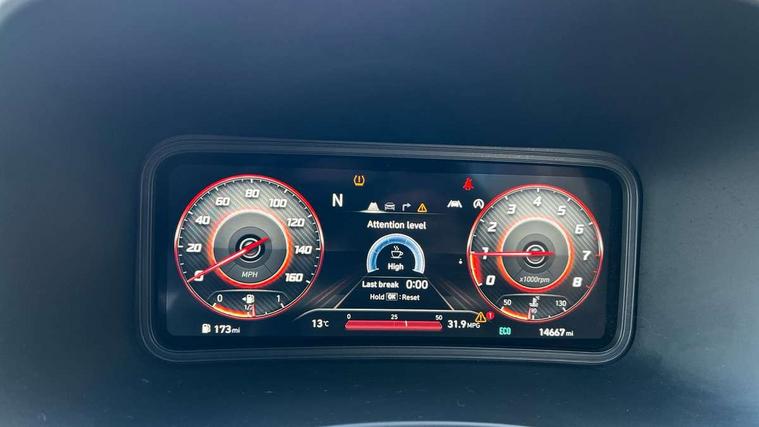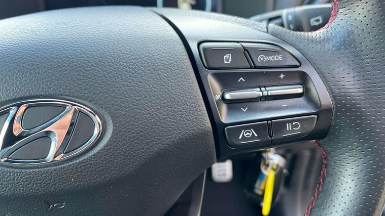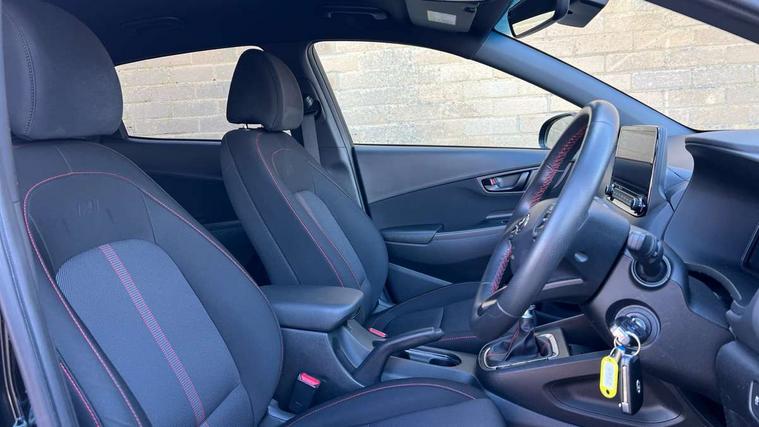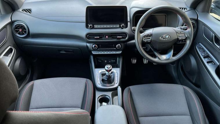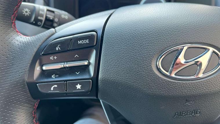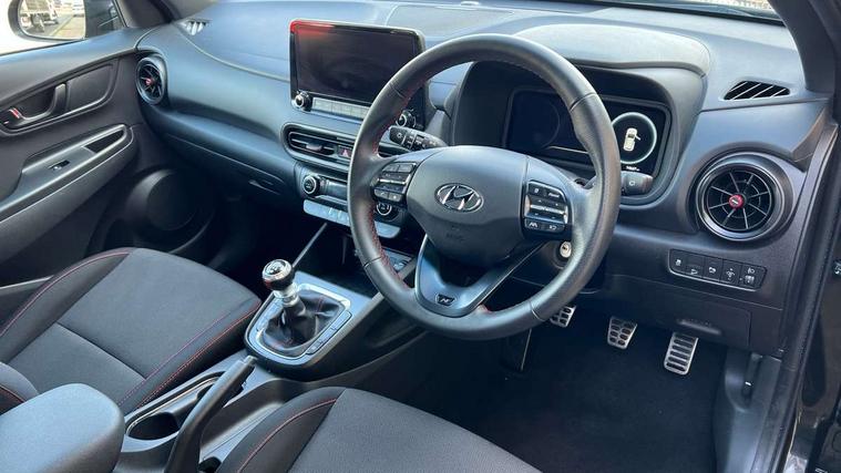 10.25" touchscreen centre console display satellite navigation with live services and mapcare, Bluetooth connectivity, Cruise control + speed limiter, Digital clock, Driver attention warning, Driver supervision instrument cluster with 10.25" LCD display, eCall emergency call system, Forward collision avoidance assist with pedestrian detection, Lane follow assist, Lane keep assist, Leading vehicle departure alert (LVDA), Parking system with rear camera and guidance system, PAS, Phone connection with apple carPlay and android auto, Rear parking sensor, Roadside assistance, Windscreen washer fluid sensor and warning indicator, Wireless phone charging pad, 6 speed intelligent manual transmission, Front and rear USB ports, Krell premium audio system with 8 speakers including external amplifier and subwoofer, RDS and Digital DAB, Steering wheel mounted audio/phone controls, Auto dimming rear view mirror, Automatic headlights with dusk sensor, Automatic windscreen wipers with rain sensor, Black radiator grille, Body colour bumpers, Body colour door mirrors and handles, Body colour side cladding, Body coloured garnish, Door mirror integrated indicators, Electric front/rear windows with drivers one touch/anti-trap, Electrically adjustable and heated door mirrors, Halogen headlights, LED daytime running lights, LED rear lights, Positioning Lights - LED, Power folding door mirrors, Privacy glass - Rear windows and tailgate, Rear roof spoiler with integrated LED brake light, Rear side wing doors, Rear skid plate - silver, Rear wiper, Roof rails, Solar glass with front door glass and windscreen shade band, Windscreen auto defog function, 12V power outlet in front console, 3 seat bench in 2nd row, 60/40 split folding rear seat, Adjustable head restraints, Air conditioning climate control, Ambient lighting, Centre interior light, Cloth upholstery, Door scuff plate, Driver and passenger front seat pockets, Driver's seat electric lumbar support, Driver's seat height adjustment, Driver/passenger sunvisors and illuminated vanity mirrors, Front interior light, Front passenger seat manual adjustments, Height/reach adjustable steering column, Isofix rear child seat fastenings, Leather wrapped steering wheel and gear knob, Luggage compartment lighting, Luggage hooks, Luggage net, Metal paint effect interior door handles, Metal pedals, N logo on the gear shift, Parcel shelf, Rear centre console with air vents, Single front passenger seat, Sunglasses holder, Vertical adjustment rear head restraints, Trailer wiring package - Kona, Airbags - front, front side and curtain airbags, Anti-lock brake system (ABS), Childproof rear door locks, Downhill brake control, EBD + Brake Assist, Electronic stability control, Fasten seatbelt reminder, Fixed 3 point for second row centre passenger seatbelt, Front seatbelt pretensioners, Height adjustable front seatbelts, Hill start assist control (HAC), Manual parking brake, Passenger airbag deactivate switch, Rear seat alert, Traction control, Tyre pressure monitoring system, Alarm/immobiliser, Deadlocks, Folding key, Locking wheel nuts, Remote central locking, 18" Alloy wheels,