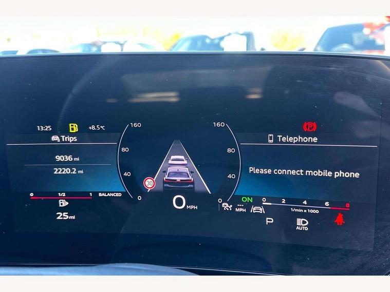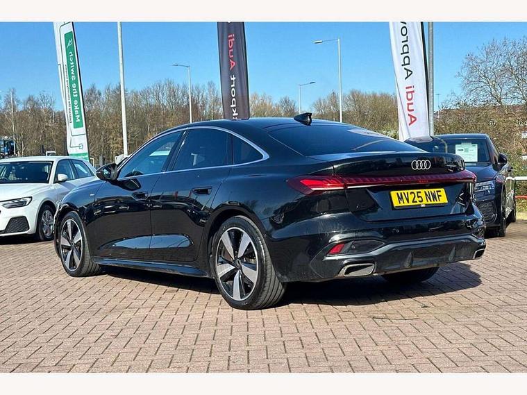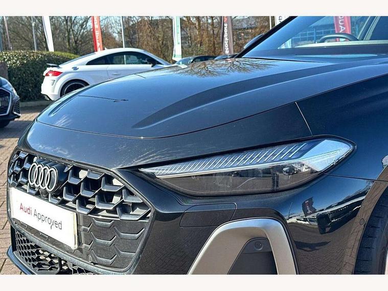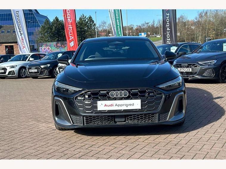 Adaptive cruise control, Advanced driver attention and fatigue montior, Audi application store, Audi assistant, Audi connect emergency call and service, Audi drive select, Audi smartphone interface, Audi virtual cockpit plus with 11.9" OLED colour display, Automatic start/stop system with coasting functionality, Camera based traffic sign recognition, Intersection assist, Lane departure warning, MMI navigation plus with high resolution 14.5" OLED touchscreen colour display, Park assist plus, Parking system plus with 360 display, Progressive steering with servotronic, Rear view camera, Swerve assist and turn assist, Traffic sign based speed limiter, Sports suspension lowered by 20mm, 2 USB-C ports in both the front and rear, Audi sound system impressive sound with 10 loudspeakers including centre speaker and subwoofer, 6-channel amplifier with a total output of 180 watts, DAB digital radio reception, Smartphone compartment with wireless charging, Aluminium window trims, Auto dimming rear view mirror, Body colour door mirrors, Door mirrors - electrically adjustable, heated, folding and auto dimming on both sides, Front and rear electric windows, Front door sill trims with aluminium inlays, illuminated with 'S' logo, High beam assist, LED headlights Plus incl. digital daytime running lights, turning light, all-weather light, motorway light, manouevring light and intersection light, LED rear lights pro incl. dynamic rear indicators and illuminated light strip with animated coming and leaving home function, LED third brake light, Privacy glass, Rear and side windows with heat insulating glass, Rear boot, Rear side wing doors, S Line badges on the front wings, S line bumpers, radiator grille and diffuser in phantom black and diffuser insert in matt anthracite, White rhombus logo projection light in exterior mirrors, Windscreen with acoustic glazing, 3 rear headrests, 3 seat rear bench, 3 spoke leather steering wheel with multi-function buttons with touch control, flattened on top and bottom, with S badging and contrast stitching, 3-zone automatic climate control, 40:20:40 split folding rear seat bench with centre armrest and cup holders, Comfort front centre armrest, Front and rear floor mats, Front seats with manual adjustment for position and 4-way electric lumbar support, Front sport seats with integrated headrest and S embossed logo, Headlining in black cloth, Heated front seats, i-Size child seat mounting on the front passenger side and outer rear seats, i-Size and top tether on the outer rear seats, Luggage compartment lid, electrically opening and closing, Manual steering column height and depth adjustment, Single front passenger seat, Stainless steel pedals and footrest, Steering wheel grips in perforated leather and shift paddles, Ambient lighting package plus - A5, 3x3 point rear seat belts, Driver airbag, Electric child safety locks, First aid kit with warning triangle and vests, Front emergency brake assist, Front passenger airbag, Front passenger airbag deactivation, Front side airbags with head airbag system and front interaction airbag, Hill hold assist, Seat belt monitoring with rear seat occupant reminder, Tyre pressure loss indicator, Anti theft alarm, Anti-theft wheel bolts, Keyless Go, Accent surfaces and control buttons in gloss black, Black dashboard with contrast stitching, Inlays in matt brushed aluminium with linear embossing, anthracite, Softwrap in leatherette with contrast stitching, Upper and lower interior elements in leatherette, Tyre repair kit,