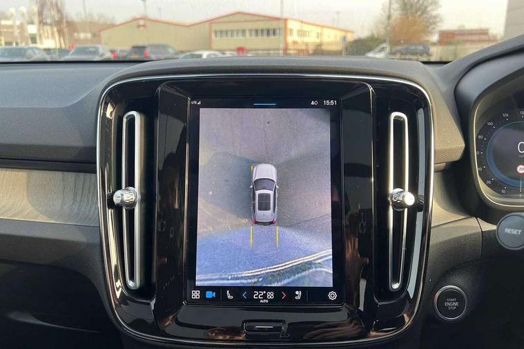 12.3" Progressive Driver Display, 360 degree surround view parking camera with side proximity sensors, 9" centre console portrait touch screen, Adjustable steering wheel force, Bluetooth hands free telephone kit, E-call, Front park assist, Google automatic services - Nav with google maps, apple carplay/android auto, voice recognition with google assistant, Hands free power tailgate, Lane keep assist with driver alert control, Oncoming Lane Mitigation, Rear park assist, Speed limiter, Speed sensitive steering, Wireless/Inductive Mobile Phone Charging, Dynamic chassis, DAB Digital radio, Premium Sound by Harman Kardon, Dolby Pro Logic II Surround Sound, Dirac Unison, 12 speakers/600W and subwoofer, Steering wheel mounted remote controls, Active bending pixel LED headlights with adaptive shadow technology, Active high beam incorporating daytime running lights, Adaptive brake lights with high level LED brake lights, Auto dimming interior mirror, Automatic headlamp levelling, Dark tinted windows for rear door side windows and cargo compartment, Front aluminium tread plates, Front and rear electric windows, Headlight cleaning system, High gloss black front and rear skid plate, High gloss black mesh front grille with high gloss black surround, High gloss black window trim, Home safe and approach lighting, Integrated roof rails in high gloss black, LED front fog lights, Power glass tilt and slide panoramic sunroof with sun curtain, Puddle lights, Rain sensor with automatic windscreen wiper activation, Rear side wing doors, Rear wiper, Roof antenna, Roof spoiler, Visible VIN plate, 12V socket in front tunnel console and luggage compartment, 2-Zone electronic climate control with CleanZone air quality system and pollen filter, 3 seat bench in 2nd row, 3 Spoke tailored steering wheel with chrome trim, 60/40 versatile split folding rear seat, A-pillar parking ticket holder, Ambient front door and instrumental panel lighting, Centre console cupholders and storage, Flexible load floor and grocery bag holder, Floor mats, Front door pocket and front cupholder illumination, Front footwell illumination, Front headrests, Front reading light and theatre lighting, Front seat cushion extensions, Front tunnel pocket, Glovebox bag hook, Heated front seats, Height adjustable passenger seat, Height/reach adjustable steering column, High gloss centre tunnel deco, Illuminated glovebox, Illuminated luggage compartment, Illuminated tailgate, Illuminated vanity mirrors, Integrated waste bin, Isofix attachments on outer rear seats, Load protection net, Multi directional lumbar support, Power driver seat with memory + exterior mirrors memory, Power folding rear headrests, Power passenger seat, Rear armrest / integral cup holders / storage tray, Rear reading and courtesy lights, Single front passenger seat, Underfloor cargo storage, Climate pack without heated front seats - XC40, Driver assist pack - XC40, 3x3 point rear seatbelts, City safety with steering support with Pedestrian + cyclist + front collision warning with full auto brake and rear auto brake, Drivers knee airbag, Dual stage driver/passenger airbags, Electronic parking brake with auto hold, First aid kit, Front and outer rear seatbelt reminder and pretensioners, Front seats SIPS airbags, Hill descent control, Hill start assist, Inflatable curtain, Passenger airbag cut-off device, Power child locks on rear doors, Road sign information display, Run off Road Mitigation, Run off Road Protection, SIPS (Side Impact Protection System), Slippery road and hazard light alert, Stability and Traction Control with Spin control, Engine Drag Control and Corner Traction Control, Tyre pressure monitoring system, Vehicle deceleration control with Anti-lock Brake System, Electronic Brake Distribution and Emergency Brake Assist, Warning triangle, WHIPS whiplash protection system - front, Anti-theft alarm including immobiliser/volume sensor + level sensor, Key integrated remote control central locking + fuel flap with deadlocking system and auto open/close power windows, Keyless drive includes keyless entry and keyless start, Locking wheel nuts,
