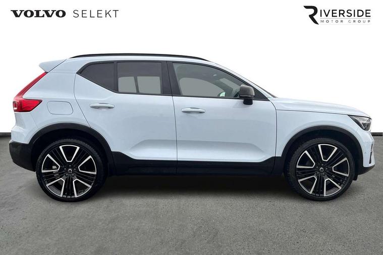 12.3" Progressive Driver Display, 360 degree surround view parking camera with side proximity sensors, 9" centre console portrait touch screen, Adjustable steering wheel force, Android auto (Wired), Apple carplay (wired), Bluetooth handsfree system, Driver alert control, Driver assistance (pilot assist and adaptive cruise control), Driver awareness - Blind spot information system with steer assist, cross traffic alert with autobrake and rear collision warning and mitigation, E-call, Front park assist, Google automotive services - Enabled entertainment apps, navigation with google maps, voice recognition with google assistant, Hands free power tailgate, Intelligent speed assistance, Lane keeping aid, Oncoming Lane Mitigation, Rear park assist, Speed sensitive steering, Volvo cars services with app - Driving journal, emergency and breakdown call, engine remote start, remote door locking/unlocking and vehicle dashboard, Wireless/Inductive Mobile Phone Charging, Automatic transmission with start/stop and manual change functions, Dynamic chassis, DAB Digital radio, Premium Sound by Harman Kardon, Dolby Pro Logic II Surround Sound, Dirac Unison, 12 speakers/600W and subwoofer, Steering wheel mounted remote controls, Active bending pixel LED headlights with adaptive shadow technology, Active high beam incorporating daytime running lights, Adaptive brake lights with high level LED brake lights, Auto dimming feature for exterior door mirrors, Auto dimming interior mirror, Automatic headlamp levelling, Dark tinted windows - rear side windows and rear screen, Front aluminium tread plates, Front and rear electric windows, Headlight cleaning system, High gloss black front and rear skid plate, High gloss black front bumper deco, High gloss black mesh front grille with high gloss black surround, High gloss black window trim, Home safe and approach lighting, Integrated roof rails in high gloss black, LED front fog lights with cornering function, Power glass tilt and slide panoramic sunroof with sun curtain, Puddle lights, Rain sensor with automatic windscreen wiper activation, Rear side wing doors, Rear wiper, Roof antenna, Roof spoiler, Visible VIN plate, 12V socket in front tunnel console and luggage compartment, 2-Zone electronic climate control with CleanZone air quality system and pollen filter, 3 seat bench in 2nd row, 3 Spoke tailored steering wheel with chrome trim, 60/40 versatile split folding rear seat, Centre console cupholders and storage, Flexible load floor and grocery bag holder, Floor mats, Front cabin courtesy lights, Front door pocket, front cupholder, ambient front door, rear reading, rear courtesy, instrument panel and tailgate lighting, Front footwell illumination, Front headrests, Front reading lights, Front seat cushion extensions, Front side step illumination (under door), Glovebox bag hook, Heated front seats, Height/reach adjustable steering column, High gloss centre tunnel deco, Illuminated glovebox, Illuminated luggage compartment, Illuminated vanity mirrors + ticket holder, Integrated waste bin, Isofix attachments on outer rear seats, Load cover, Load protection net, Multi directional lumbar support for driver and passenger seat, Power driver seat with memory + exterior mirrors memory, Power folding rear headrests, Power passenger seat, Rear armrest with cupholders, Single front passenger seat, Underfloor cargo storage, Climate pack without heated front seats - XC40, 3x3 point rear seatbelts, City safety with steering support with Pedestrian + cyclist + front collision warning with full auto brake and rear auto brake, Driver and passenger airbags, Drivers knee airbag, Electronic parking brake with auto hold, First aid kit, Front and outer rear seatbelt reminder and pretensioners, Front seats SIPS airbags, Hill descent control, Hill start assist, Inflatable curtain, Passenger airbag cut-off device, Power child locks on rear doors, Road sign information display, Run off Road Protection, SIPS (Side Impact Protection System), Slippery road and hazard light alert, Stability and Traction Control with Spin control, Engine Drag Control and Corner Traction Control, Tyre pressure monitoring system, Vehicle deceleration control with Anti-lock Brake System, Electronic Brake Distribution and Emergency Brake Assist, Warning triangle, WHIPS whiplash protection system - front, 2 x Key integrated remote control central locking including with deadlocking system and auto open/close windows and sunroof, Anti-theft alarm including immobiliser/volume sensor + level sensor, Keyless drive includes keyless entry and keyless start, Locking wheel nuts,