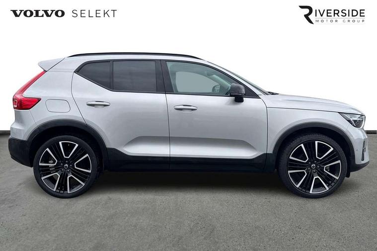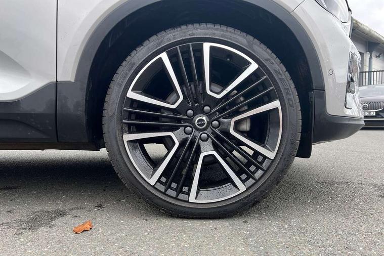 12.3" Progressive Driver Display, 360 degree surround view parking camera with side proximity sensors, 9" centre console portrait touch screen, Adjustable steering wheel force, Android auto (Wired), Apple carplay (wired), Bluetooth handsfree system, Driver alert control, Driver assistance (pilot assist and adaptive cruise control), Driver awareness - Blind spot information system with steer assist, cross traffic alert with autobrake and rear collision warning and mitigation, E-call, Front park assist, Google automotive services - Enabled entertainment apps, navigation with google maps, voice recognition with google assistant, Hands free power tailgate, Intelligent speed assistance, Lane keeping aid, Oncoming Lane Mitigation, Rear park assist, Speed sensitive steering, Volvo cars services with app - Driving journal, emergency and breakdown call, engine remote start, remote door locking/unlocking and vehicle dashboard, Wireless/Inductive Mobile Phone Charging, Automatic transmission with start/stop and manual change functions, Dynamic chassis, DAB Digital radio, Premium Sound by Harman Kardon, Dolby Pro Logic II Surround Sound, Dirac Unison, 12 speakers/600W and subwoofer, Steering wheel mounted remote controls, Active bending pixel LED headlights with adaptive shadow technology, Active high beam incorporating daytime running lights, Adaptive brake lights with high level LED brake lights, Auto dimming feature for exterior door mirrors, Auto dimming interior mirror, Automatic headlamp levelling, Dark tinted windows - rear side windows and rear screen, Front aluminium tread plates, Front and rear electric windows, Headlight cleaning system, High gloss black front and rear skid plate, High gloss black front bumper deco, High gloss black mesh front grille with high gloss black surround, High gloss black window trim, Home safe and approach lighting, Integrated roof rails in high gloss black, LED front fog lights with cornering function, Power glass tilt and slide panoramic sunroof with sun curtain, Puddle lights, Rain sensor with automatic windscreen wiper activation, Rear side wing doors, Rear wiper, Roof antenna, Roof spoiler, Visible VIN plate, 12V socket in front tunnel console and luggage compartment, 2-Zone electronic climate control with CleanZone air quality system and pollen filter, 3 seat bench in 2nd row, 3 Spoke tailored steering wheel with chrome trim, 60/40 versatile split folding rear seat, Centre console cupholders and storage, Flexible load floor and grocery bag holder, Floor mats, Front cabin courtesy lights, Front door pocket, front cupholder, ambient front door, rear reading, rear courtesy, instrument panel and tailgate lighting, Front footwell illumination, Front headrests, Front reading lights, Front seat cushion extensions, Front side step illumination (under door), Glovebox bag hook, Heated front seats, Height/reach adjustable steering column, High gloss centre tunnel deco, Illuminated glovebox, Illuminated luggage compartment, Illuminated vanity mirrors + ticket holder, Integrated waste bin, Isofix attachments on outer rear seats, Load cover, Load protection net, Multi directional lumbar support for driver and passenger seat, Power driver seat with memory + exterior mirrors memory, Power folding rear headrests, Power passenger seat, Rear armrest with cupholders, Single front passenger seat, Underfloor cargo storage, Climate pack without heated front seats - XC40, 3x3 point rear seatbelts, City safety with steering support with Pedestrian + cyclist + front collision warning with full auto brake and rear auto brake, Driver and passenger airbags, Drivers knee airbag, Electronic parking brake with auto hold, First aid kit, Front and outer rear seatbelt reminder and pretensioners, Front seats SIPS airbags, Hill descent control, Hill start assist, Inflatable curtain, Passenger airbag cut-off device, Power child locks on rear doors, Road sign information display, Run off Road Protection, SIPS (Side Impact Protection System), Slippery road and hazard light alert, Stability and Traction Control with Spin control, Engine Drag Control and Corner Traction Control, Tyre pressure monitoring system, Vehicle deceleration control with Anti-lock Brake System, Electronic Brake Distribution and Emergency Brake Assist, Warning triangle, WHIPS whiplash protection system - front, 2 x Key integrated remote control central locking including with deadlocking system and auto open/close windows and sunroof, Anti-theft alarm including immobiliser/volume sensor + level sensor, Keyless drive includes keyless entry and keyless start, Locking wheel nuts,