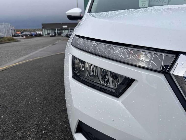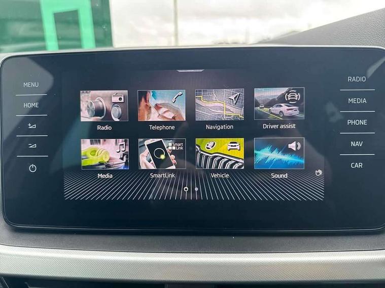 Amundsen satellite navigation with 9.2" glass colour touchscreen display, web radio, voice control and traffic sign recognition, Bluetooth system, E-call, Front assist system, Gesture control, PAS, Service indicator, Speed limiter, Wireless SmartLink for apple car play, android auto and mirrorlink, 8 Speakers, Auxiliary input socket, DAB Digital radio, Body colour bumpers, Body colour door mirrors and handles, Chrome grille surround, Dimming rear view mirror with black surround, Electrically adjustable and heated door mirrors, Front and rear electric windows, Headlight range control, Heated rear window, LED rear lights - low functionality, Light sensors, Privacy glass, Rear fog lights, Rear side wing doors, Rear wiper, 12V Accessory socket in centre console, 3 seat bench in 2nd row, Chrome inner door handles, Cloth upholstery, Front head restraints, Glove compartment with illumination, Height adjustable driver and front passenger seats - manual, Ice scraper, Isofix child seat fittings on outer rear seats, ISOFIX on front passenger seat, Manual lumbar support for front seats, Rake/reach adjustable steering wheel, Reading lights, Single front passenger seat, Sun visors with illumination on front passenger, Textile floor mats, Third rear headrest, Top tether for front passenger seat, Umbrella in driver's door, 3x3 point rear seatbelts, Airbags - driver and front passenger, ESP, Front passenger airbag deactivation switch, Front side airbags with curtain airbags, Hill hold control, Manual parking brake, Manual rear child locks, One tone horn, Rear disc brakes, Seatbelt reminder for driver an co-driver, Traction control, Tyre pressure monitor, Anti-theft alarm system with interior monitoring, backup horn, towing protection and remote central locking with SAFE system, Anti-theft wheel bolts, Electronic engine immobilizer, Silver haptic decorative insert on the dashboard with hot stamping in glossy black,