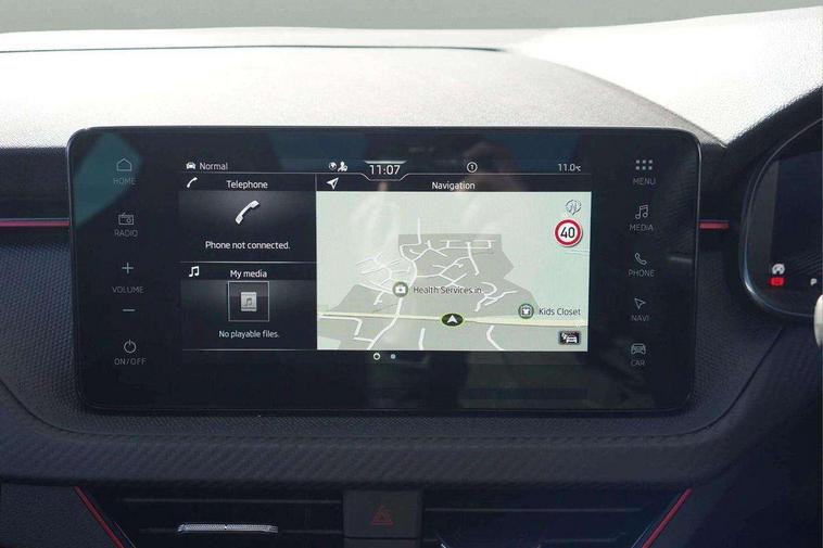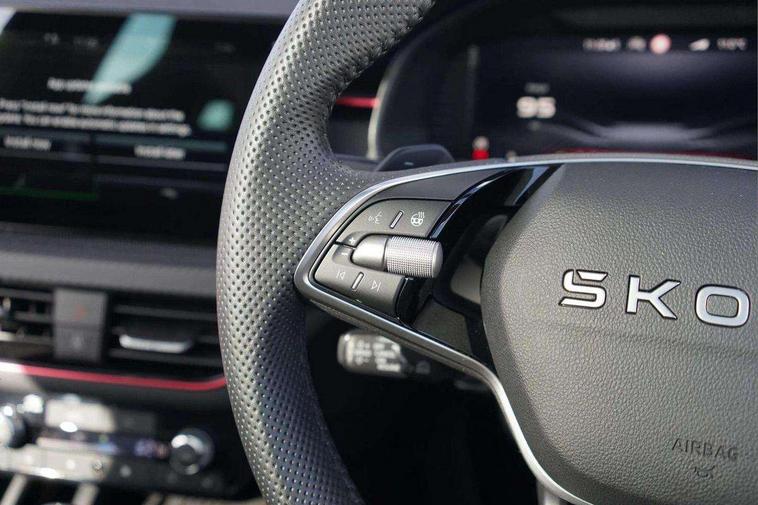 Advanced driver attention and drowsiness monitor, Bluetooth system, E-call, Front assist system, PAS, Rear parking sensors, Rear view camera, Service indicator, Speed limiter, Traffic sign recognition, Virtual cockpit with 10.25" display, Voice control system, Wireless smartlink, 4 USB C ports, 8 Speakers, 9.2" Skoda navigation display, DAB Digital radio, Auto dimming rear view mirror, Automatic headlight control with coming home and leaving home feature, Black door mirrors, Black radiator grille, Black rear diffuser, Black roof spoiler, Body colour bumpers, Body colour door handles, Boot lettering in black, Extended tailgate glass, Fixed panoramic sunroof with black roof rails, Front and rear electric windows, Heated rear window, LED daytime running lights, LED high beam, LED low beam, LED third brake light, Light sensors, Monte carlo plaque, Privacy glass, Rear side wing doors, Rear wiper, Ticket holder inside windscreen, 12V socket in luggage compartment, 3 seat bench in 2nd row, Aluminium pedals, Ambient lighting in white/red, Art leather carbon decor inserts, Art leather carbon door inserts, Black roof lining, Cargo elements, Chrome inner door handles, Driver and passenger sun visors with vanity mirror, Dual zone climate control, Front and rear roof lights, Front centre armrest, Front head restraints, Glove compartment with illumination, Height adjustable driver seat, Height adjustable front passenger seat, Ice scraper, Inner circulation control with pollen filter, ISOFIX on front passenger seat, Isofix preparation for back seats, Leather gearknob and handbrake lever, Manual lumbar support for front seats, Monte Carlo cloth upholstery, Net package and top tether hooks in boot space, Net under rear shelf, Pocket on the back of both front seats include mobile phone pockets, Rake/reach adjustable steering wheel, Reading lights, Rear centre armrests, Red hotstamping, Single front passenger seat, Sports seats, Textile floor mats, Third rear headrest, Top tether for front passenger seat, Umbrella in driver's door, Light and view plus package - Kamiq, 3x3 point rear seatbelts, Airbags - driver and front passenger, Disc brakes, ESP, Extended and predictive pedestrian/cyclist protection, Front passenger airbag deactivation switch, Front side airbags with curtain airbags, Hill hold control, Manual leather parking brake, Manual rear child locks, One tone horn, Seatbelt reminder for driver an co-driver, Traction control, Tyre pressure monitor, Anti-theft alarm system with interior monitoring, backup horn, towing protection and remote central locking with SAFE system, Anti-theft wheel bolts, Electronic engine immobilizer, 18" Ursa black diamond cut alloy wheels,
