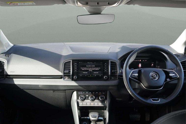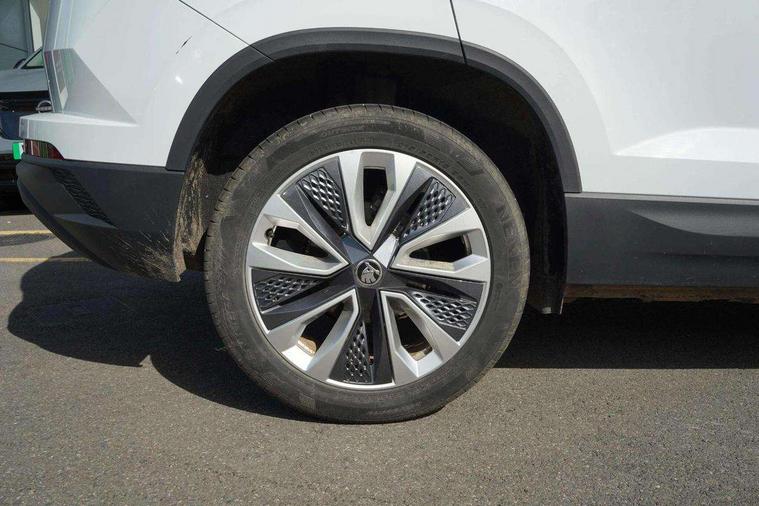 8" Digital display, Advanced driver attention and drowsiness monitor, Emergency services call system, Outside temperature gauge, Sensor for driver assistance systems, Service interval indicator, SmartLink wireless for Apple and wired for Android, Start/stop system with regenerative braking, USB C Port x 2 in front centre console, Virtual Cockpit - 10.25" digital display, Wireless smartphone charging, DAB radio with Bluetooth, USB connection, Acoustic glass, Aero front windscreen wipers with intermittent function, Auto dimming rear view mirror with light and rain sensors, Black electric window control buttons, Body colour door mirrors and handles, Electric front and rear windows with child proof lock, Heated rear windscreen, LED daytime running lights, LED rear lights with high functionality welcome effect and dynamic indicators, Light assistant (coming/leaving home/tunnel light), Plastic scuff plates in door apertures, Privacy glass, Rear side wing doors, Rear spoiler, Rear window wiper with washer system and intermittent control, Safety reflectors on front doors, Third brake light, 1.5 litre bottle holders in driver and front passenger door panels, 12V socket in boot, 12v socket in front centre armrest with storage compartment and rear air vents, 2 spoke leather heated multifunction steering wheel with DSG paddles, 2 x Tablet holder, 3 rear height adjustable headrests, 3 seat bench in 2nd row, 4 foldable roof handles with rear coat hooks, Black floor carpet, Chrome inner door handles, Foldable hooks in the boot, Front head restraints, Height adjustable front three point seats belts with tensioners, Height/reach adjust steering wheel, Ice scraper, Illuminated glovebox, Illuminated luggage compartment, Interior noise suppression, Isofix child seat preparation for front passenger seat, Isofix child seat preparation outer rear, Manual lumbar support for front seats, Pearl grey interior ceiling, Pen holder, Pollen filter, Rear boot cover, Rear reading lights, Rubbish bin door, Safety vest holder, Single front passenger seat, Storage box in upper central dashboard closed, Sunvisors with illuminated vanity mirrors, Textile floor mats, Ticket holder, Design Pack - Karoq, Non Smokers pack, Parking pack - Karoq, Automatic door unlocking in case of crash, Automatic fuel cut off in case of crash, Driver airbag, Electronic parking brake with auto hold function, Emergency rear braking signal, ESC (incl. ABS+MSR+ASR+EDS+HBA+DSR+RBS+MKB), Front side airbags, Head airbags, Hill hold control, Knee airbags, Passenger airbag with switch-off function, Pedestrian monitor, Seatbelt reminder signalisation and pretensioner for all seats, Three point seatbelts rear, Two tone horn, Tyre pressure monitor, Alarm with interior monitoring, back up horn and tilt sensor with safe function, Electronic engine immobiliser, Keyless entry and start/stop, Remote central locking with 2 remote folding keys, Black centre console, Chrome framed air vents, Satin black dashboard, Anti-theft wheel bolts protection, Breakdown and tool kit,