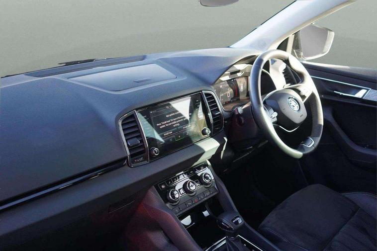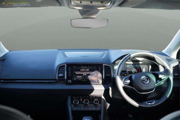 8" Digital display, Advanced driver attention and drowsiness monitor, Emergency services call system, Outside temperature gauge, Sensor for driver assistance systems, Service interval indicator, SmartLink wireless for Apple and wired for Android, Start/stop system with regenerative braking, USB C Port x 2 in front centre console, Virtual Cockpit - 10.25" digital display, Wireless smartphone charging, DAB radio with Bluetooth, USB connection, Acoustic glass, Aero front windscreen wipers with intermittent function, Auto dimming rear view mirror with light and rain sensors, Black electric window control buttons, Body colour door mirrors and handles, Electric front and rear windows with child proof lock, Heated rear windscreen, LED daytime running lights, LED rear lights with high functionality welcome effect and dynamic indicators, Light assistant (coming/leaving home/tunnel light), Plastic scuff plates in door apertures, Privacy glass, Rear side wing doors, Rear spoiler, Rear window wiper with washer system and intermittent control, Safety reflectors on front doors, Third brake light, 1.5 litre bottle holders in driver and front passenger door panels, 12V socket in boot, 12v socket in front centre armrest with storage compartment and rear air vents, 2 spoke leather heated multifunction steering wheel with DSG paddles, 2 x Tablet holder, 3 rear height adjustable headrests, 3 seat bench in 2nd row, 4 foldable roof handles with rear coat hooks, Black floor carpet, Chrome inner door handles, Foldable hooks in the boot, Front head restraints, Height adjustable front three point seats belts with tensioners, Height/reach adjust steering wheel, Ice scraper, Illuminated glovebox, Illuminated luggage compartment, Interior noise suppression, Isofix child seat preparation for front passenger seat, Isofix child seat preparation outer rear, Manual lumbar support for front seats, Pearl grey interior ceiling, Pen holder, Pollen filter, Rear boot cover, Rear reading lights, Rubbish bin door, Safety vest holder, Single front passenger seat, Storage box in upper central dashboard closed, Sunvisors with illuminated vanity mirrors, Textile floor mats, Ticket holder, Design Pack - Karoq, Non Smokers pack, Parking pack - Karoq, Automatic door unlocking in case of crash, Automatic fuel cut off in case of crash, Driver airbag, Electronic parking brake with auto hold function, Emergency rear braking signal, ESC (incl. ABS+MSR+ASR+EDS+HBA+DSR+RBS+MKB), Front side airbags, Head airbags, Hill hold control, Knee airbags, Passenger airbag with switch-off function, Pedestrian monitor, Seatbelt reminder signalisation and pretensioner for all seats, Three point seatbelts rear, Two tone horn, Tyre pressure monitor, Alarm with interior monitoring, back up horn and tilt sensor with safe function, Electronic engine immobiliser, Keyless entry and start/stop, Remote central locking with 2 remote folding keys, Black centre console, Chrome framed air vents, Satin black dashboard, Anti-theft wheel bolts protection, Breakdown and tool kit,