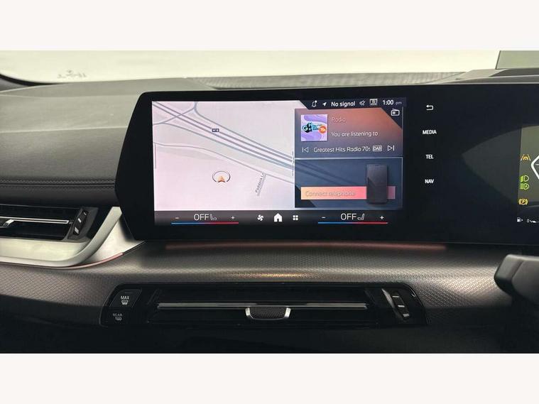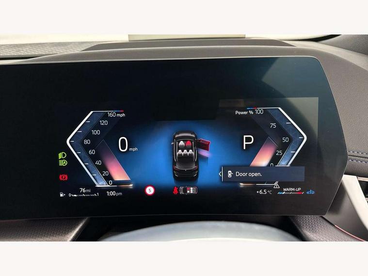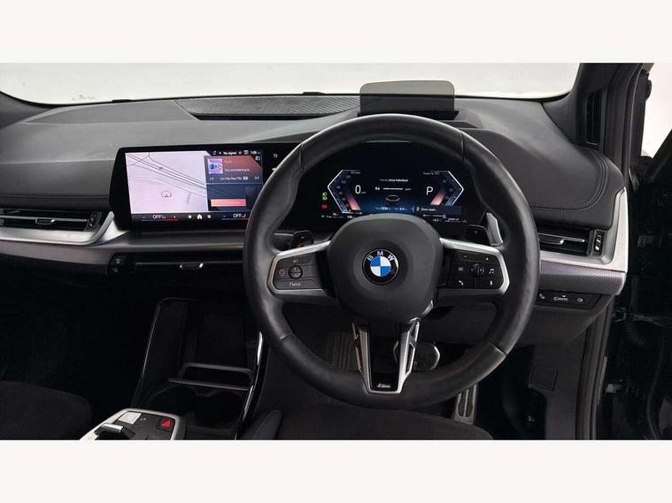 Active Guard, Attentiveness assist, Automatic powered tailgate, Automatic start/stop function, BMW Online services, BMW Operating system 9 with BMW Maps, real-time traffic information, in-car experiences, remote services and smartphone integration, BMW Teleservices, Brake pad wear indicator in front and rear, Condition based service, ConnectedDrive Services, Drive off assistant, Flat air vents on instrument panel in high gloss black, adjustable slats with elements in pearl chrome, iDrive controller, Instrument cluster with speedometer with miles per hour read out, tachometer and fuel gauge, Language version English, On board computer - average speed+fuel consumption, service interval, clock/date, odometer/trip meter, outside temperature display and ice warning, Parking assistant with active park distance control, reversing assistant, lateral parking aid and rear view camera, Servotronic variable electric power steering (EPS), Widescreen display, Wireless charging, 54 litre fuel tank, Drive performance control with ECO PRO comfort + sport mode, Gear selector switch with toggle operation, M Adaptive suspension, Performance Control, Petrol Particulate Filter, Steptronic sport transmission with double clutch and gear shift paddles, 2x USB Type C ports in front centre console for charging and data transfer, 2x USB Type C ports in rear centre console for charging, DAB Digital radio, Personal eSim, Welcome sound upon opening of the front driver or passenger door, Air inlet middle part on front apron in lines specific design with trim strip in satinised aluminium, Automatic headlights, Black rear bumper trim strip, BMW emblem, engine compartment lid and tailgate, Body colour roof mouldings, Body coloured door mirror caps, Contoured rear roof spoiler in vehicle colour with side aeroblades in black high-gloss, Driver side exterior mirror lighting with BMW logo projection, Dynamic brake lights, Electric adjustable heated door mirrors, Electric windows - front and rear, with open/close fingertip control, anti-trap facility and comfort closing, Folding door handles integrated flush with surface, Front and rear windscreen wipers with heated front washer nozzles, Front bumper cover with independent design in body colour with inserts in black high gloss, Front bumper design elements in satinised aluminium, Front door exit lights, Front door sill finishers aluminium inserts with M inscription, Front entry sills with aluminium inserts + BMW inscription, Front oramental grille with radiator grille bars in satinised aluminium, Heated rear window, Hidden exhaust pipe, High gloss shadow line, High gloss shadowline roof rails, Home light, Key with M identification, LED Daytime running lights and parking lights with turn indicators, LED number plate light, LED third brake light in rear spoiler, M identification on sides, Manual headlight range control, Model inscription on right tailgate, Rain sensor, Rear bumper cover with independent design in body colour with inserts in black high gloss, Rear side wing doors, Shark fin antenna, Side sill covers with independent design in Body colour, Trailer stabilisation logic, Trims on front and rear bumper covers colour-coordinated with side window graphic, Visible VIN plate, Welcome lighting, Window washer nozzle for rear view camera, 12V socket in right side trim panel, 2 bag hooks in luggage compartment, 2 front reading lights, 2 open cup holders in front centre console, 2 x USB Type C ports for charging in front centre console + 2 x USB Type C ports for charging in rear centre console, 2x 12V power socket in luggage compartment and front centre console, 3 seat bench in 2nd row, Ambient lighting front and rear, Automatic two zone climate control air conditioning, Bottle trays in all doors, Child seat ISOFIX attachment for two outer rear seats and front passenger seat with anchorage points, Driver and front passenger sports seats, Embellishers on steering wheel spokes in pearl chrome, Four grab handles integrated in roof lining, Front and rear door pockets, Front and rear footwell lighting, Front and rear side armrest integrated into door trim, Front centre console storage compartment, Front head restraints, Glovebox with light, Heated front seats, Height adjustable 3 rear head restraints, Illuminated wireless charging tray, Interior door handle recess light on all doors, Luggage compartment lighting, M Anthracite headlining, M specific floor mats, M sport leather steering wheel, Manual adjustment of seat height, fore/aft position, seat depth, backrest tilt and head restraint height, Map pockets, Mechanical rear seats with fore/aft adjustment, Middle centre console storage compartment, Multi-function controls for steering wheel, One piece parcel shelf opens together with tailgate and removable, Rear cloth hooks, Single front passenger seat, Stainless steel pedals, Steering wheel column manual adjustment, Storage compartment lighting in centre console and storage tray in centre stack, Storage compartment net in left side trim panel, Storage compartment with folding cover under centre console armrest cushion, Sunvisors with illuminated vanity mirrors, 3 point seatbelts on all seats, front pyrotechnic belt tensioners, stopper and belt force limiters, rear coded belt buckles, Airbag - Front driver and passenger, front and rear head, front side, curtain head protection, manual deactivation of front passenger airbag possible, Anti lock braking system (ABS) with brake assist, Automatic hold function, BMW emergency call, Brake drying, Braking readiness, Child proof locking system in rear door, Cornering brake control, Crash Sensor - activates hazard/interior lighting + unlocks doors, DSC - Dynamic Stability Control, Dynamic brake control, Dynamic Traction Control - DTC, Electromechanical parking brake, Energy recovery system, Front disc brakes, Integrated braking system, PC iBrake PostCrash approach control warning with light braking function, Rear disc brakes, Tyre pressure mo