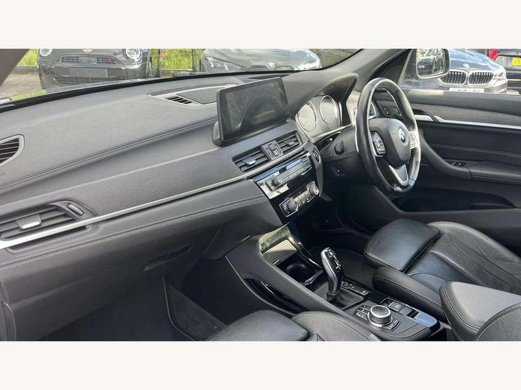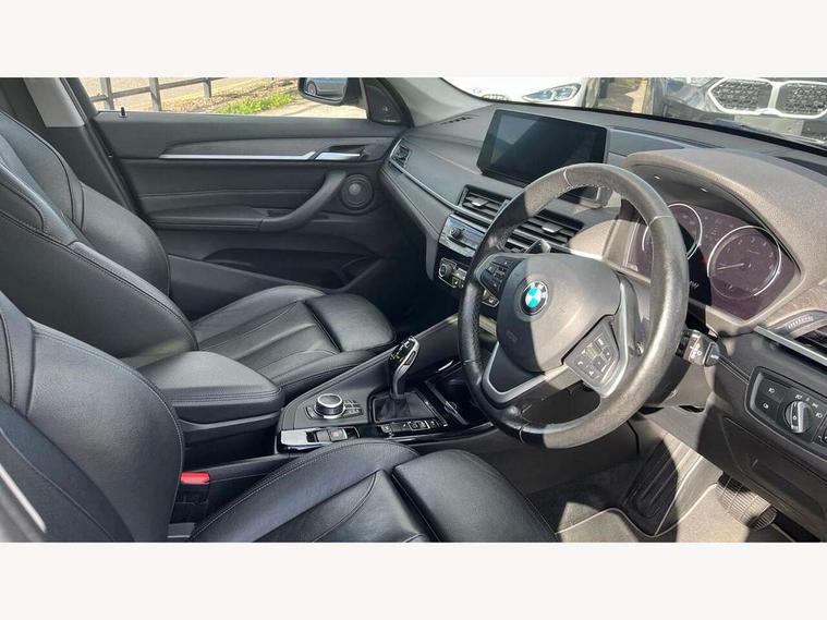 Ambient temperature display, Attentiveness assist, Automatic tailgate opening, BMW Online services, BMW remote services, BMW Teleservices, Brake pad wear indicator in front and rear, Front/rear park distance control (PDC), Instrument cluster with speedometer with miles per hour read out, tachometer and fuel gauge, Lights on warning by audio warning signal when ignition is switched off, On board computer, Optimum shift indicator, Outside temperature gauge, Park assist system, Personal Profile - automatic lock when driving away selectable, Real time traffic information, Service interval indicator, Servotronic PAS, Stop/start button, Tyre puncture warning system, 12V compressor with integrated sealant injection bottle and hose, Anti-roll bars, Balancer shaft, Drive performance control with ECO PRO comfort + sport mode, Electronic differential lock, High precision injection, Larger fuel tank capacity (61 litres), Performance Control, Twin tube gas filled shock absorbers with degressive characteristic curve, 2 USB Power socket for rear seat, DAB Digital radio, USB connection located in centre console, USB/audio interface, Adjustable headlights, Aero curtain, Automatically dimming rear view mirror, Body colour bumpers, Body colour door handles, Body colour door mirrors, Clear lenses direction indicator lights, Direction indicator side lights integrated exterior mirrors, Dynamic brake lights, Electrically adjustable door mirrors with aspheric on driver side, convex on passenger side with integrated indicators, Exclusive front door sill finishers with BMW designation, Exterior mirrors - electrically folding with anti-dazzle, Fingertip control / anti-trap function on electric window, Follow me home headlights, Front air guide finished in black silver, Front air inlets in matt black with silver finisher matt, Front and rear bumper system, Front and rear electric windows, Front bumper underbody protection in silver matt, Green tinted heat protection glazing glass, Headlight beam throw control, Heated door mirrors, Heated windscreen washer jets, High level third brake light, Kidney grille with 14 chrome matt aluminium fronted with black matt sides vertical bars, LED daytime running lights, LED front fog lights, Lightweight engineering, Model designation, Rain sensor including auto headlights activation, Rear fog lights, Rear window aerial, Rear window wash/wipe, Reversing light in rear light cluster, Roof mouldings in matt black, Satin matt aluminium exterior trim, Shark fin antenna, Sill cover matt black with matt silver insert, Twin chrome exhaust tailpipes x2, Visible VIN plate, Welcome lighting, 12v power point in centre console, 3 rear headrests, 3 spoke sport leather steering wheel, 4 grab handles, 40:20:40 split folding rear bench seat, Automatic light activation, Black door sill finishers with BMW designation, Boot light, Child seat ISOFIX attachment for two outer rear seats and front passenger seat with anchorage points, Dakota leather upholstery with perforation and contrast stitching, Driver and front passenger heated seats, Driver/front passenger seat backrest back with luggage net, Driver/passenger sunvisors with ticket holders, Dual zone automatic air conditioning, Extended storage, Front and rear door armrests, Front centre armrest/sliding cover, Front/rear adjustable head restraints, Illuminated glovebox, Leather gearknob/gaiter/handbrake grip, LED ambient lighting in door trim, Luggage area underfloor compartment, Luggage compartment access via recessed handle below tailgate, Luggage compartment lighting, Luggage compartment loading edge with stainless steel insert, Manually adjustment steering wheel column, Multifunction steering wheel, Rear coded belt buckles, Steering wheel gearshift paddles, Velour floor carpets, Extended lights pack - X1, Extended storage package - X1, 3 rear 3 point seatbelts, ABS/EBD, Audio/visual collision warning system, Automatic Stability Control (ASC), Battery safety cut-off, BMW emergency call, Brake drying, Brake energy regeneration, Braking readiness, Cornering brake control (CBC), Crash Sensor - activates hazard/interior lighting + unlocks doors, Driver/Front Passenger airbags, Driver/front passenger side airbags, Dynamic brake control, Dynamic stability control + (DSC+), Dynamic Traction Control - DTC, Electronic parking brake, Front and rear head airbags, Front passenger airbag deactivation, Front seatbelt force limiters, Front ventilated disc brakes, Hill start assist, Pyrotechnically pre-tensioned front seatbelts, Rear disc brakes, Rear door child safety locks, Seatbelt security check for driver and front passenger, Side impact protection, Twin horns, Tyre pressure monitor, Warning triangle and first aid kit, Auto door lock when driving, Central locking switch for all doors, fuel filler cap and luggage compartment, Check control system for monitoring of lights and door/luggage compartment open warning, Engine immobiliser, Locking wheel nuts, Remote control Thatcham category 1 alarm, Remote control with integrated two key, Contrast stitching on instrument panel, High gloss black centre console, Low rolling resistance tyres,