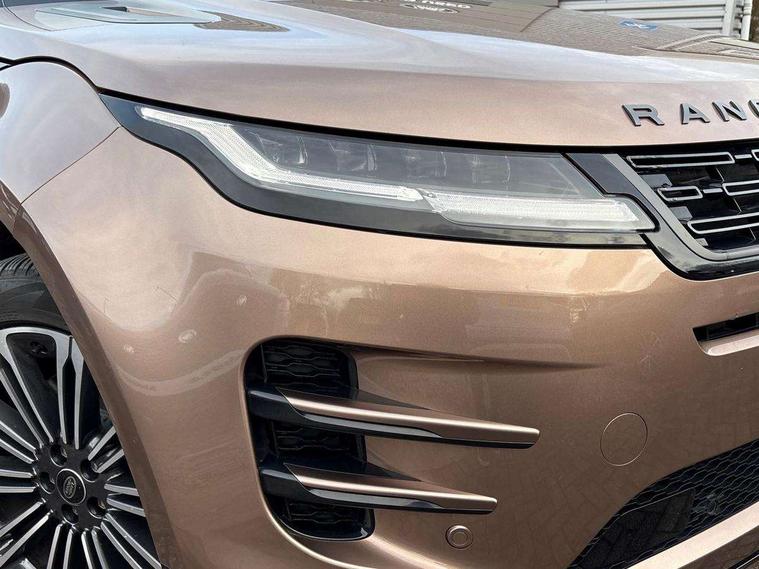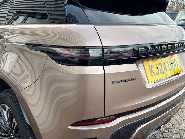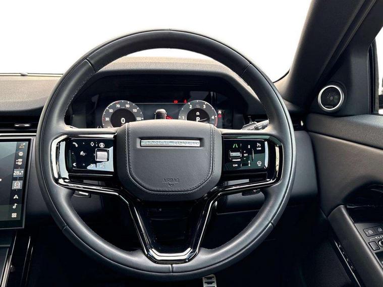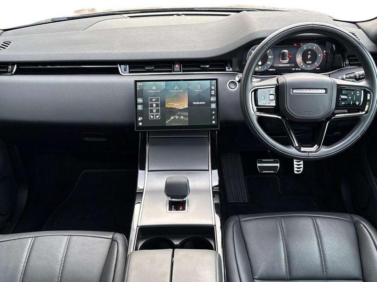 11.4" touch screen, Adaptive cruise control, Android Auto, Apple car play, Blind spot assist, Bluetooth connectivity, Brake pad wear indicator warning light, Driver condition monitor, eCall emergency system, Eco mode, Electronic power assisted steering (EPAS), Front and rear parking aid, InControl remote, Interactive driver display, Land Rover InControl apps, Lane keep assist, Pivi pro connected includes diamond pivi variant, smart settings, connected navigation pro, nuance speech licence, Powered tailgate/boot lid, Rear collision monitor, Rear traffic monitor, Traffic sign recognition with adaptive speed limiter, Voice control system, Wireless device charging, All terrain progress control, Diesel exhaust fluid (DEF) large tank, Efficient Driveline, Large fuel tank, Passive suspension, Terrain Response 2, Digital Audio Broadcast radio-DAB, Steering wheel mounted controls, Acoustic laminated windscreen, Auto headlights, Automatic headlight levelling, Electric windows with one touch open/close and anti trap, Flush deployable exterior door handles, Front and rear recovery eyes, Heated rear window with timer, Heated washer jets, Heated windscreen, Pixel LED headlights with signature DRL and LED tail Lights, Power fold, auto-dimming, heated door mirrors with approach lights and auto dimming driver side, Rain sensing windscreen wipers, Rear animated directional indicators, Rear fog lights, Rear side wing doors, Rear wiper, Side repeater indicators in mirror, Tailgate spoiler, Third brake light, Winter wiper park position, 14 way driver memory electric front seats with 2 way manual headrests + 4 way lumbar support, bolsters, 40:20:40 split folding rear seats with centre headrest and armrest, Ambient interior lighting, Bright metal pedals, Carpet mats, Chrome tread plates with range rover branding Includes stainless steel loadspace scuff plate with etched graphic, Customer configurable single point entry, Electrically adjustable steering column with memory function and easy entry/exit, Front and rear cupholders, Heated steering wheel, Isofix system on outer rear seats, Overhead lighting console, Overhead stowage for sunglasses, Passive front head restraints, Rear air vents, Rear head restraints, Satin chrome gearshift paddles, Single passenger seat, Sunvisors with illuminated vanity mirrors, Twin sliding front centre armrest, Online pack with data plan - Evoque, Power socket pack 2 - Evoque, 3 rear 3 point seatbelts, Anti-lock braking system (ABS), Brake hold function, Customer configurable autolock, DSC - Dynamic Stability Control, Electronic brake force distribution, Electronic parking brake, Electronic traction control, Emergency braking, Front and rear seatbelt reminder, Hill descent control, Hill launch assist, Low traction launch, Occupant protection assist, Passenger seat occupant detector, Power operated child locks, Roll stability control, Six airbags - Driver and passenger airbags/driver knee airbag/front side airbag and curtain airbags, Torque vectoring brake, Tyre pressure monitoring system, Alarm, Immobiliser, Intrusion sensor, Keyless entry, Locking wheel nuts,