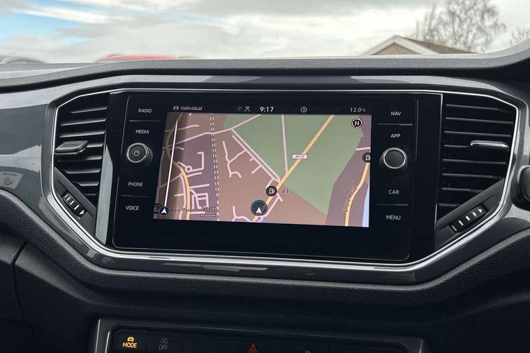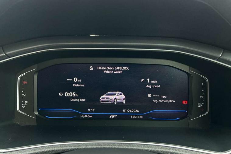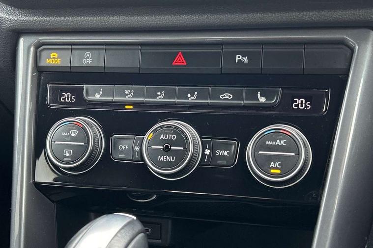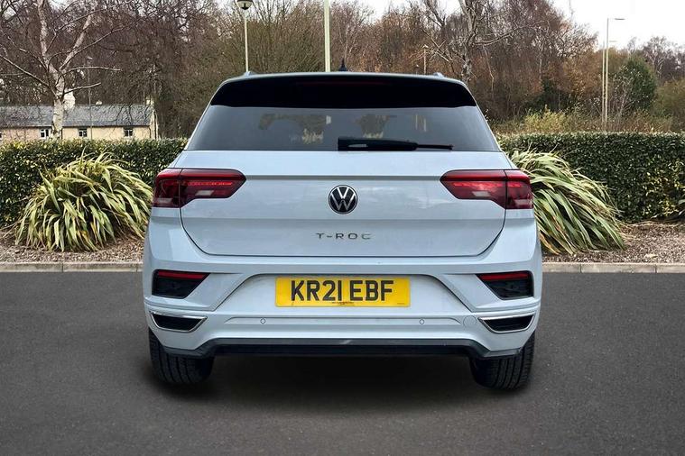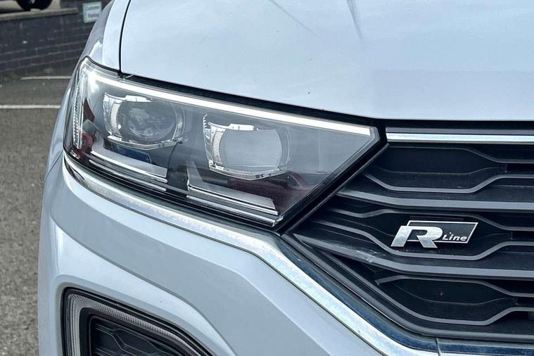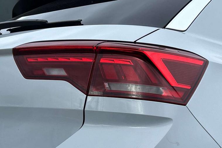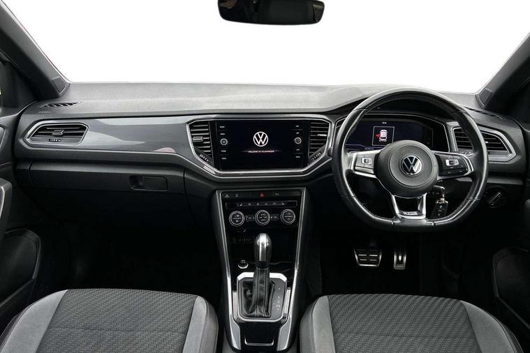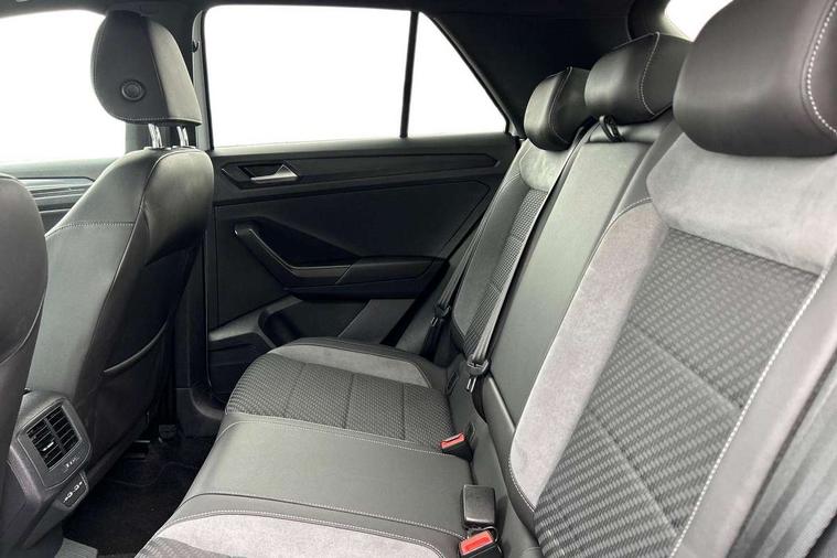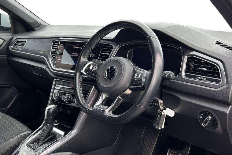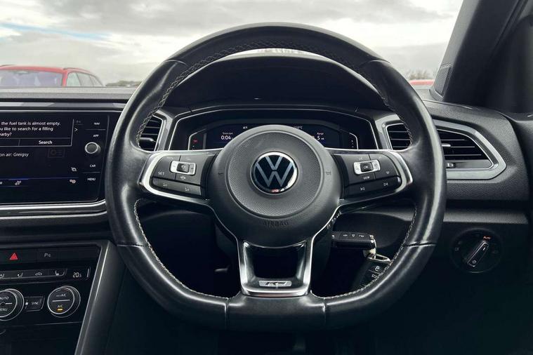 'Lights On' Reminder warning buzzer, Adaptive cruise control with front assist, radar sensor controlled distance monitoring, city emergency braking, Automatic start/stop system, Bluetooth telephone and audio connection for compatible devices, Car information display, Digital Cockpit Pro - Active info display, Discover navigation including 8" touch screen display, streaming and internet, Driver alert system with audible and visual fatigue detection system, Driver tips and journey analysis, Lane assist with warning text instrument cluster, Modified key software - reduce switch off time for key status change to Long no motion, Multifunction computer with visual gear change recommendation for fuel consumption, Service interval indicator, Think blue trainer driver tips and journey analysis, Voice activation, Wireless app connect for apple carPlay, Battery regeneration during braking, Misfuel prevention device for diesel engine, Centre arm rest including USB type C interface and USB charging socket, DAB Digital radio, Diversity antenna for FM reception, Front USB type C Interface 2X and USB charging socket, Music playback - MP3, WMA and AAC files, Premium USB cable in choice of either Apple or Android smartphone compatibility, SD card slot, Simultaneous pairing of 2 compatible mobile devices, SMS functionality - read, compose and send SMS messages using touch-screen display, Storage compartment with longitudinal and height adjustable in armrest and two rear air vents, Three route options - Fast, Short, Eco, Title and cover art display, Auto dimming interior rear view mirror, Automatic hazard lights activation under emergency braking, Black grained lower door protectors, Body colour door handles, Body colour rear roof spoiler, Chrome effect left and right trapezoid exhaust tailpipe fascia surround, Chrome trim on upper and lower radiator grille, Dusk sensor, Electrically foldable, adjustable and heated door mirrors with puddle lights and reverse activated kerb-view adjustment on passenger's door mirror, Front and rear electric windows, Front fog lights with static cornering function, Front windscreen wiper with intermittent wipe and 4 position delay, Fully galvanised body, Heated rear window, High level 3rd brake light, LED darkened rear light clusters, LED dipped and main beam headlights with automatic range adjustment including signature LED daytime running lights, LED rear number plate lights, Manual coming/automatic leaving home lighting function, Rain sensor, Rear tinted glass from B-pillar backwards approx 65% tinted, Rear wash/wipe with intermittent wipe setting, Volkswagen roundel, 2 Front and rear reading lights incorporating LED technology, 3 rear head restraints, 4 load lashing points in luggage compartment, Aluminium pedals, Ambient lighting in front footwell and light strips below trim in front doors, Black roof lining and sun visors, Branded points of interest, Carbon flag cloth upholstery, Climate control - 2 zone electronic air conditioning with automatic air recirculation and allergy filter, Drawer under drivers seat, Front + rear carpet mats, Front cupholders x 2, Front seat back storage pockets, Front sports seats with R-Line logo on seat backrest, Glovebox, Height adjustable front seats, Height/reach adjust steering wheel, Illuminated vanity mirrors, Instrument lighting, white adjustable panel illumination, Interior light delay, Isofix easy fit child seat preparation for 2 outer rear seats, Load through provision with single cup holder when folded down, Luggage compartment cover, removable, Luggage compartment lighting, R Line badge, Split folding rear seat backrests with centre armrest, Storage compartment in left and right luggage area, Storage compartment in rear doors, Storage compartments in driver and front passenger doors, Three spoke multi function leather trimmed steering wheel and gear knob including paddle shift, Unique R Line door sill protectors, R line styling pack - T-Roc, Winter pack - T-Roc, 3 rear three point seatbelts, ABS, Curtain airbags, Driver and front passenger safety-optimised head restraints, Drivers and front passengers airbags with passengers deactivation switch, Drivers seatbelt reminder, Electronic parking brake with auto hold, Electronic stability control (ESC) includes ASR, EDL, EDTC and trailer stabilisation function, Front seat side impact airbags, Predictive pedestrian protection, Rigid safety cell with front and rear crumple zones, Three point height adjust front seatbelts + pretensioners, Tyre pressure loss indicator, Ventilated front and rear disc brakes, Volkswagen roadside assistance, Alarm with remote central locking and interior protection, Electronic engine immobiliser, Remote central locking with 2 remote folding keys, Shadow grey decorative inserts in dash and door panel, 19" Suzuka alloy wheels with low rolling resistance tyres and anti wheel bolts,