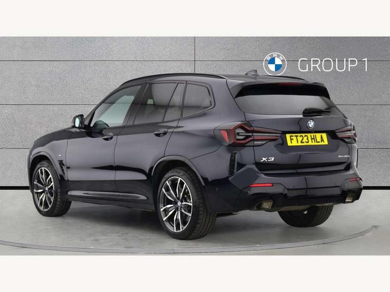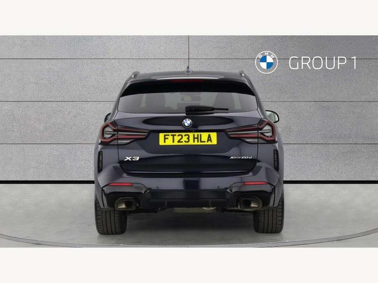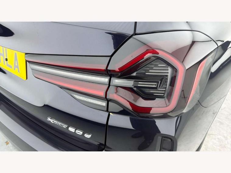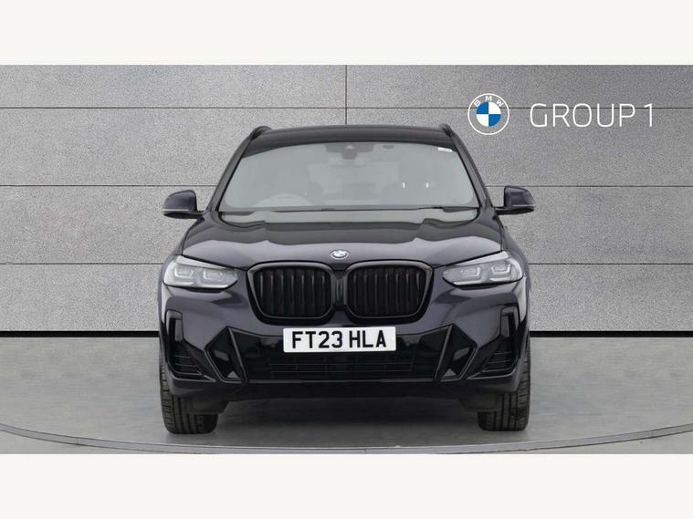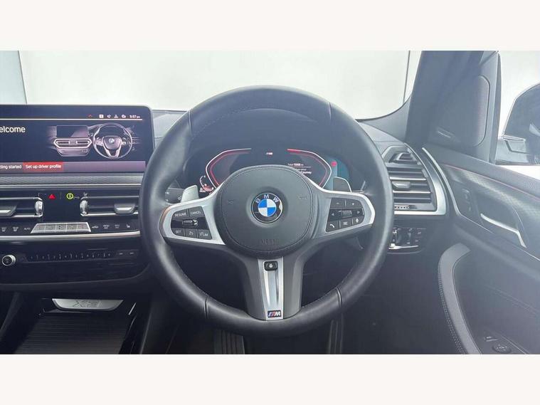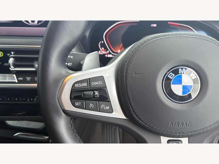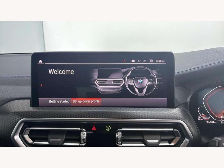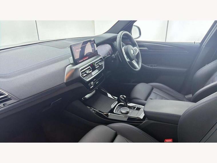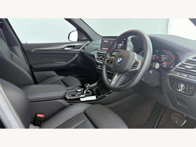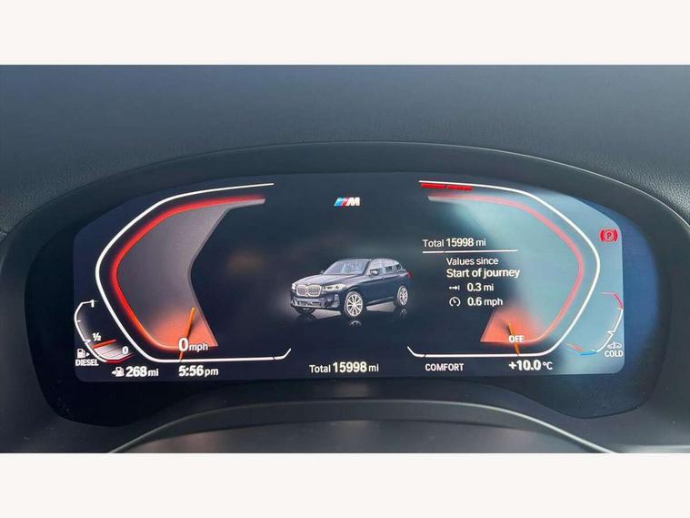 Active Guard, Attentiveness assist, BMW Live Cockpit Professional nav system including 12.3" instrument display + 12.3 high resolution control display, BMW Online services, BMW Teleservices, Brake pad wear indicator in front and rear, Check Control warning system for monitoring of lights and door/luggage compartment open warning, Condition based service - BMW service history, electronic service booklet, integrated owner's handbook, Connected drive services, Electric boot lid, Front/rear Parking distance control, iDrive touch controller with 8 favourite buttons, Instrument cluster with speedometer with mph readout, tachometer, fuel gauge and oil temperature gauge, Lights on warning by audio warning signal when ignition is switched off, Oil sensor for level and grade, warning by check control system, On board computer - average speed+fuel consumption, service interval, clock/date, odometer/trip meter, outside temperature display and ice warning, Optimum shift indicator, Personal Profile - automatic lock when driving away selectable, Run flat indicator, Stop/start system, Variable sports power steering with drive performance control Sport+ mode, Automatic transmission with gearshift paddles, Diesel particulate filter, Incorrect fuelling protection, Larger capacity fuel tank, M sport suspension, Multi-link rear suspension, BMW professional radio/CD/MP3, DAB tuner, Acoustic glazing, Automatic windscreen wipers and automatic headlight, Black finish on B pillars, Body colour door handles, Body colour electric adjust heated aspherical door mirrors, Body colour roof mouldings, Body coloured bumpers, Direction indicator, side repeaters, integrated in exterior mirrors, Dynamic brake lights, Exhaust tailpipes - dual, round, split left and right with chrome finisher, Fingertip control / anti-trap function on electric window, Folding wing mirrors with auto dimming, Follow me home headlights, Front and rear bumper system with replaceable deformation elements, Front and rear electric windows, Gloss chrome tailpipes finishers, Green tinted heat insulating glass, Heated windscreen washer jets, High beam assistant, High gloss black shadow line roof rails, High gloss shadowline exterior trim in decorative moulding side frame/recess cover/guide rail/B, C pillars/mirror frame and triangle with mirror base, High level 3rd brake light incorporating LED Technology, Interior rear view electrochromatic mirror with automatic anti dazzle function, LED tail lights, Lightweight engineering, M aerodynamic bodystyling, M Sport entry door sill strips, Model designation, Rain sensor, Rear side wing doors, Rear wing door, Rear wiper, Shark fin antenna, Side exterior M designation badges, Visible VIN plate, Welcome lighting, Windscreen wipers with adjustable interval, 12V power point in luggage area, 12V power socket in front centre console, 2 x USB Type C ports for charging and data transmission (front centre console) and 2 x USB Type C ports for charging (rear centre console), 3 rear headrests, 3 seat bench in 2nd row, 3 zone automatic air conditioning, 4 lashing points to secure luggage, 40:20:40 split folding rear seat with loading system, Ambient lighting, Anthracite headlining, Automatic interior light when door is opened/ignition switched off or via remote key, Floor mats in velour, Foldable storage floor with compartment, Four grab handles integrated in roof lining, Front and rear bottle holders integrated into door trim storage compartments, Front and rear side armrests integrated into door trim, Front centre armrest with storage compartment, Front footwell lights, Front head restraints, Front passenger seat, Front sports seats, Front/rear courtesy lights with soft on/off dimming, Front/rear reading lights, Heated front seats, Isofix rear child seat preparation, Leather gear knob, Lockable glove compartment, Luggage area underfloor compartment, Luggage compartment lighting, M sport leather steering wheel, Multifunction steering wheel, Parcel shelf removeable and storable under boot floor, Reach and rake adjustable steering column, Rear centre armrest with 2 cupholders, Removable / retractable luggage cover, Slope adjustable rear seats, Storage compartment in rear centre console and front/rear door trims, Sun visors with vanity mirrors and ticket pocket, Toolkit located in luggage compartment, Two front cupholders with removable oddments tray/lid, Connected pro pack - X3, ADB - Automatic Differential Brake, Anti-lock braking system (ABS) with brake assist, Automatic Stability Control (ASC), Battery safety cut-off, BMW emergency call, Brake drying, Brake energy regeneration, Braking pre-tensioning, Child locks on rear doors, Cornering brake control (CBC), Crash Sensor - activation of central locking release, hazard warning light and interior lighting, Deactivation of fuel pump in the event of a crash, Driver and front passenger front and side airbags with passenger deactivation and ITS front and rear head airbags, Driver and front passenger knee airbag, DSC+, Dynamic brake control, Dynamic Traction Control - DTC, Electromechanical parking brake, Hill descent control, Hill start assist, Seatbelt security check for front seats, Side impact protection, Three point seatbelts to all seats with front and outer rear pyrotechnic belt tensioners and seat belt force limiters, Two tone horn, Tyre pressure sensor, Ventilated front and rear disc brakes, Warning triangle and first aid kit, Central locking switch for all doors, fuel filler cap and luggage compartment, Electronic engine immobiliser, Locking wheel nuts, Remote control including two integrated key - one button for open/close all lockable content, windows and separate button for open luggage compartment, Remote control Thatcham category 1 alarm, Start/stop button with Comfort Go keyless engine start and auto Start/stop deactivation button, Low rolling resistance tyres,