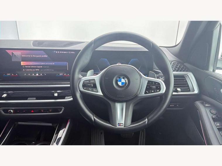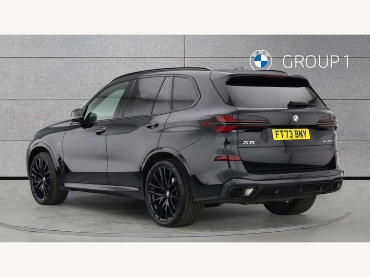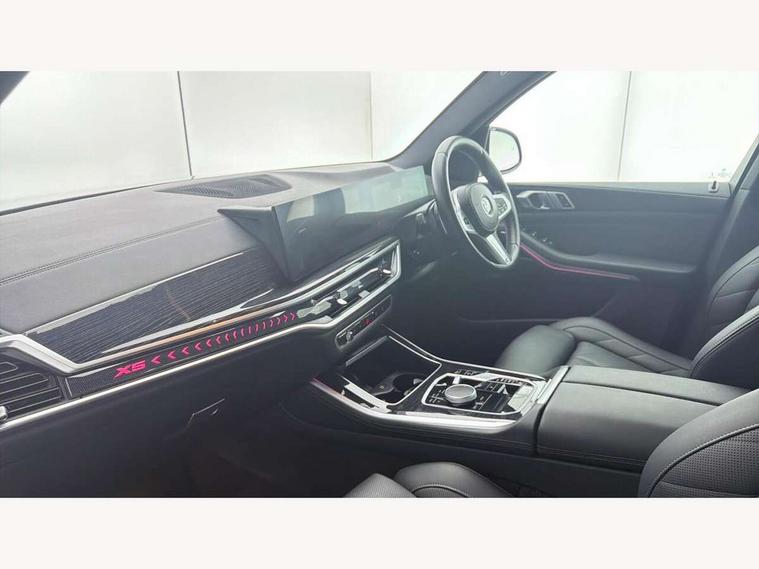 Attentiveness assist, Automatic tailgate operation, BMW ConnectedDrive online services, BMW live cockpit + with curved 12.3 instrument cluster/14.9 central display, nav/Tuner with diversity reception, RDS/4GLTE/remote software upgrade, BMW Recovery system, BMW Teleservices, Condition based service, Cruise control with brake assist, eCall emergency call system, Enhanced bluetooth with wireless charging, Integrated owner's handbook, PAS, Speed limiter, Wi-Fi hotspot, Drive performance control with ECO PRO comfort + sport mode, Eight speed steptronic sport automatic transmission and gearshift paddles on the steering wheel, Hi-Fi loudspeaker system, Adaptive LED Headlights, Front and rear electric windows, High beam assistant, High gloss black shadow line roof rails, LED daytime running lights, Rear side wing doors, Third brake light in rear spoiler, Variable intermittent rear wash/wipe, 12V - Power sockets with 2x centre console and 1x luggage compartment, 3 seat bench in 2nd row, Foldable rear centre armrest with 2 cupholders and storage compartment, Front and rear side armrest integrated into door trim, Headrests for all seats, Luggage compartment separating net, Single front passenger seat, Three spoke sport M leather steering wheel, Velour floormats, Ambient light interior pack - X5, Driving assistant pack with radar based driver assistance system - X5, Expanded exterior mirror pack - X5/X5 M, M aerodynamics pack - X5, 3 rear seatbelts, Active protection, Airbags - driver/front passenger, rear and side, first and second row seats head airbags, front passenger seat airbag deactivation + knee airbag, Anti-lock braking system (ABS), Automatic Stability Control (ASC), Brake energy regeneration, Cornering brake control (CBC), Crash sensor activating central locking release, hazard warning lights, fuel cut off, interior lighting + activation of safety battery terminal clamp, DSC - Dynamic Stability Control, Dynamic Traction Control - DTC, Electromechanical parking brake with automatic drive away release and auto hold function, Electronic brake force distribution, Hill start assistant, M Sport blue painted brake calipers with 'M' designation, Mechanical child proof lock on rear doors, Tyre pressure monitoring system, Tyre pressure sensors, Ventilated front and rear disc brakes, Warning triangle and first aid kit, Closing system with central locking, Comfort access system, Locking wheel bolts, Sensatec instrument panel,