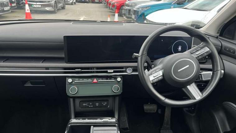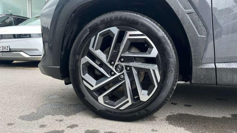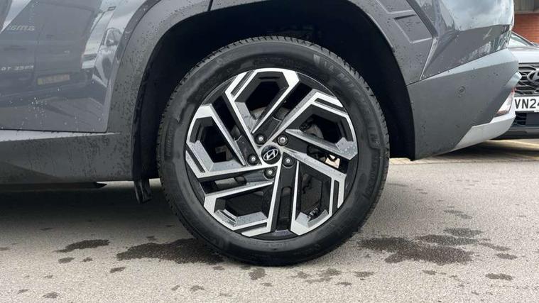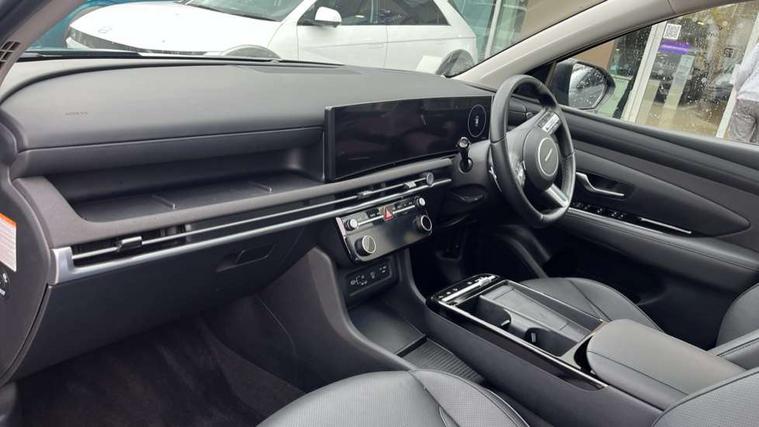 12.3" LCD display with driver's supervision instrument cluster, 12.3" widescreen navigation with bluelink and mapcare, Blind spot view monitor, Bluetooth system, Cruise control - smart adaptive speed control with stop and go function, Digital clock, Drive mode selector, Driver attention warning, E-call, Emergency stop signalling system, Forward Collision Avoidance Assist (FCA) - Car, Pedestrian and Cycle, Forward Collision Avoidance Assist Junction Turning (FCAJX), Front and rear parking sensors, Front, rear and side parking distance warning, Highway Driving Assist (HDA), Hyundai road side assistance, Intelligent speed limit assist, Lane follow assist, Lane keep assist, Over the air updates(OTA), Parking collision avoidance assist (PCA), PAS, Rear camera and guidance parking system, Rev counter, Smart power tailgate, Surround view monitor, Tailgate open warning light, Trip computer, Trip odometer, Voice recognition, Water temperature gauge, Windscreen washer fluid sensor and warning indicator, Wireless Apple CarPlay/Android Auto, Wireless phone charging pad, 2 front and 2 rear USB-C ports, DAB Digital radio, Krell premium audio system with 8 speakers and subwoofer, Steering wheel mounted audio/phone controls, Adjustable intermittent front windscreen wipers with aero wiper blade, Auto dimming rear view mirror, Automatic defog system, Automatic headlights with dusk sensor, Automatic windscreen wipers with rain sensor, Black wheel arches, Body colour bumpers, Body colour door mirrors with integrated indicators, Body colour exterior door handles, Electric tilt/slide panoramic sunroof, Electrically adjustable, heated and power folding door mirrors, Follow me home headlights, Front and rear electric windows with anti-trap mechanism and one touch control, Front fog lights, LED 3rd brake light, LED daytime running lights, LED rear lights, Matrix LED headlights, Positioning Lights - LED, Privacy glass - Rear windows and tailgate, Rear side wing doors, Rear wash/wipe with intermittent wipe setting, Roof rails, Tinted glass with windscreen shade band, Trailer stability assist, 12V power outlets in front console and luggage compartment, 3 seat bench in 2nd row, 40/20/40 split folding rear seat, 64 colours interior ambient lighting, Adjustable head restraints (Up and down), Cupholders in rear armrest, Door courtesy lights, Driver and passenger sunvisors with illuminated LED vanity mirrors, Driver's seat electric adjustments, Driver's seat memory, Front and rear door pockets, Front armrest with storage box, Front centre console and door bottle holders, Front passenger's seat electric adjustments, Heated front seats, Heated rear seats, Heated steering wheel, Height/reach adjustable steering column, Illuminated/air conditioned glove compartment, ISOFIX child seat anchorage points attached on outer rear seats, Leather upholstery, Leather wrapped steering wheel and gear knob, Luggage compartment lighting, Luggage cover, Luggage hooks, Luggage net, Map and reading lights, Rear seat remote folding function, Rear side window sunblind, Reclining rear seats, Retractable load cover, Single front passenger seat, Sunglasses holder, Three zone climate control, Touch sensitive climate controls with temperature dials, TUCSON branded metal door scuff plate, Underfloor boot compartment, Ventilated front seats, Trailer wiring package - Tucson, 3x3 point rear seatbelts, Active bonnet, Airbag - Front, front side, curtain and centre front airbags, Anti-lock brake system (ABS), Brake assist function, Childproof rear door locks, Curtain airbag roll over sensor, Downhill brake control, Electric parking brake, Electronic stability control, Front and rear seatbelt reminder, Front passenger airbag deactivation switch, Front seatbelt pretensioners, Hill start assist control (HAC), Multi-Collision braking, Outer rear seatbelt height adjustment, Seatbelt height adjustment for front seats, Traction control, Tyre pressure monitoring system with individual tyre pressure display - TPMS, Vehicle stability management, Deadlocks, Immobiliser, Locking wheel nuts, Remote control central locking, Smart key with keyless entry and engine start/stop button, Speed sensitive auto door locking, Thatcham category 1 alarm, 19" Alloy wheels, Tyre repair kit,