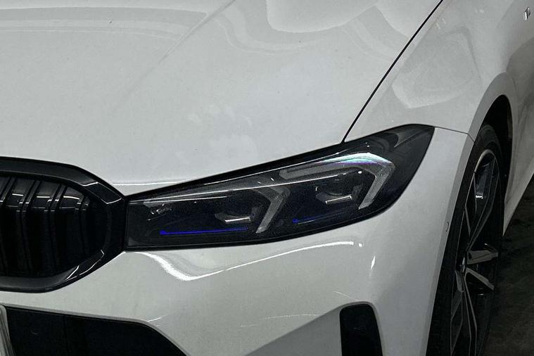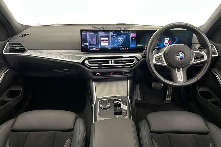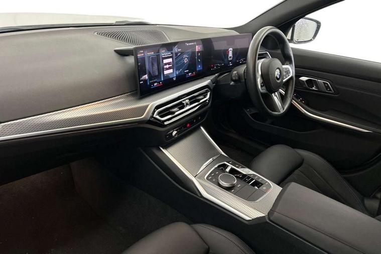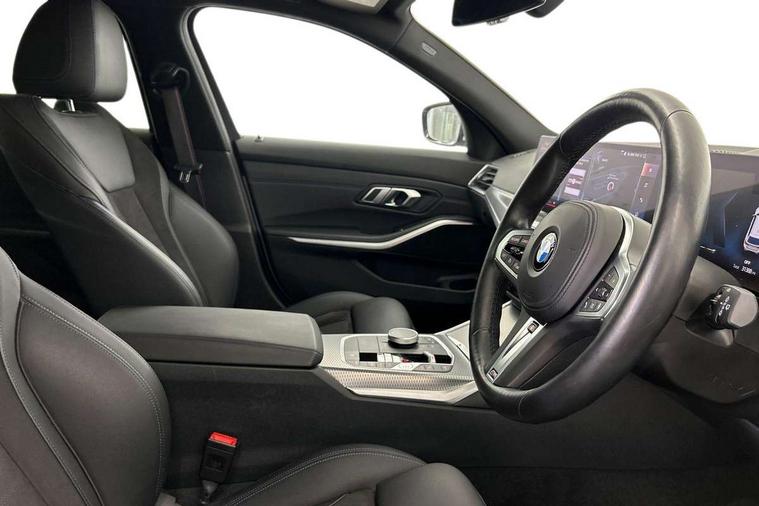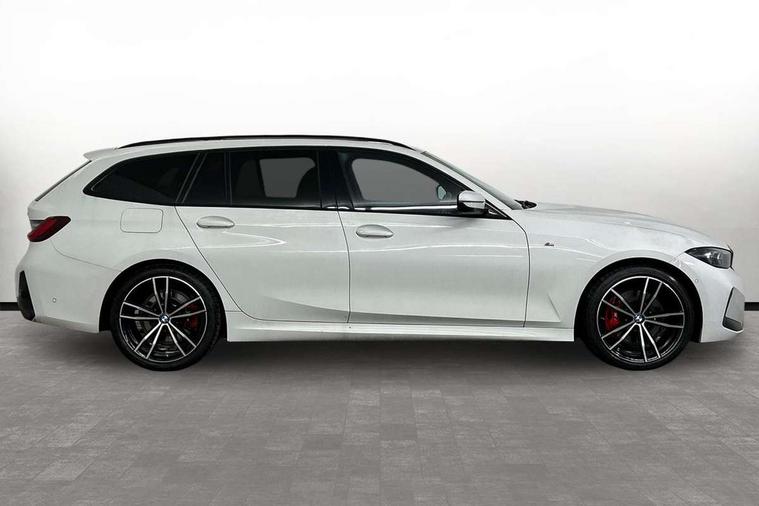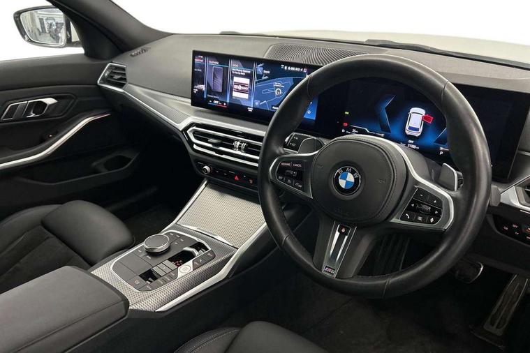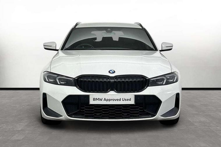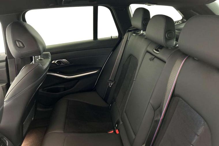 Active guard plus, Attentiveness assist, Automatic Start/stop button, BMW iDrive, BMW Teleservices, Condition based service, ConnectedDrive Services, Cruise control with brake function + speed limiter, Driving experience switch, Live cockpit plus with Navigation + 12.3" instrument display + 14.9" display, Intelligent voice assist, 2 USB, 4G LTE connect, Oil sensor for level and grade, Preparation for driver assistance, Shifting point display, Smartphone integration, Variable sport steering, Double joint spring strut front axle, Electronic differential lock control (EDLC), Fuel tank breather system, M sport suspension, Sport automatic transmission with steering-wheel mounted gearshift paddles and launch control, DAB tuner, 3rd brake light, Acoustic glazing, Automatic headlight beam throw control with load dependent regulating reaction, dynamic compensation of braking dive and acceleration squat, BMW emblem, engine compartment lid and tailgate, Body colour roof fin, Door sill strips, Electric windows - front and rear, with open/close fingertip control, anti-trap facility and comfort closing, Follow me home headlight function, Front and rear bumper system with replaceable deformation elements, Front apron plastic in body colour, Fuel filler flap - right rear in body colour, Heated washer jets, Illuminated bow type door handles in body colour drivers side with door lock, Interior rear view electrochromatic mirror with automatic anti dazzle function, LED headlights with LED daytime running lights and LED turn indicator, LED rear lights, Licence plate panel integrated into front bumper and tailgate, Matt black B-pillar finsher, Matt black window recess cover, Model designation on right side of tailgate, One piece front bumper cover including towing eye cover in body colour, Rain sensor with automatic headlight activation, Rear side wing doors, Rear wiper, Reversing lights, Side frame decorative moulding black matt, Visible exhaust tailpipe finisher, Welcome lights in interior and door handle area, 12V power socket in front storage compartment, 2 front cupholder in centre console with clamping elements and matt black inlay, 3 seat bench in 2nd row, 3 zone automatic air conditioning, 40:20:40 split folding rear seat with loading system, Anthracite headlining, Armrest integrated in front and rear door trim + front centre console armrest, BMW ID, Driver backrest width adjustment, Folding rear centre armrest with 2 cupholders, Front and rear door exit lighting (left / right), Front and rear footwell lighting, Front and rear headrests, Front and rear reading lights, Front and rear velour floor mats, Front sport seats, Heated front seats, Height adjustable mechanically and infinitely variable steering column, Illuminated armrest storage compartment, Illuminated glove compartment, Illuminated luggage compartment, Lashing eyelets in luggage compartment, LED ambient lighting with welcome carpet light, M Sport multifunction leather steering wheel, Make-up mirror lights, Single front passenger seat, Standard seat for driver and passenger with manual adjustment, Sunvisors with vanity mirrors and ticket pocket, Toolkit located in luggage compartment, Connected pack professional - 3 Series Saloon/Touring, Interior and exterior mirror pack - 3 Series Touring/Saloon, M Aerodynamics package - 3 Series Saloon/Touring, M sport exterior styling pack - 3 Series Saloon/Touring, Parking assistant pack - 3 Series, Storage compartment pack - 3 Series Saloon/Touring, 3x3 point rear seatbelts, BMW emergency call, Child locks on rear doors, Crash sensor activating of airbags, Unlocking doors, hazard warning lights, interior light, safety battery terminal, Driver and front passenger with seat occupancy detection for driver's and passenger side, Driver and passenger side airbags, body protection at side and airbags deploy from seat backrests, Dynamic brake control, Dynamic stability control + (DSC+) - Anti-lock Braking System (ABS) with brake assist and cornering brake control + Automatic Stability Control (ASC), Dynamic Traction Control - DTC, Electric parking brake including automatic hold function and automatic release of the parking brake when driving off, Head airbags in 1st and 2nd row, head protection at side, curtain airbags open from headliner above 1st and 2nd row, Plastic fuel tank, Side impact protection, Tyre pressure monitoring with three level warning strategy, Ventilated front and rear disc brakes, Warning triangle and first aid kit, Alarm system, Centre lock switch, Closing system with central locking, Electronic vehicle immobiliser,