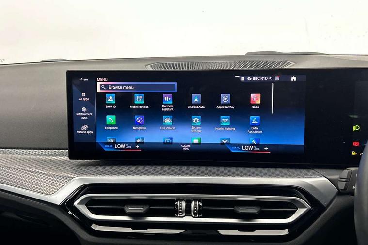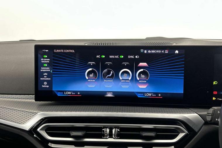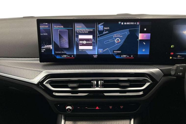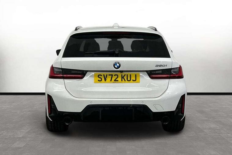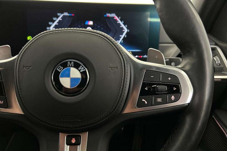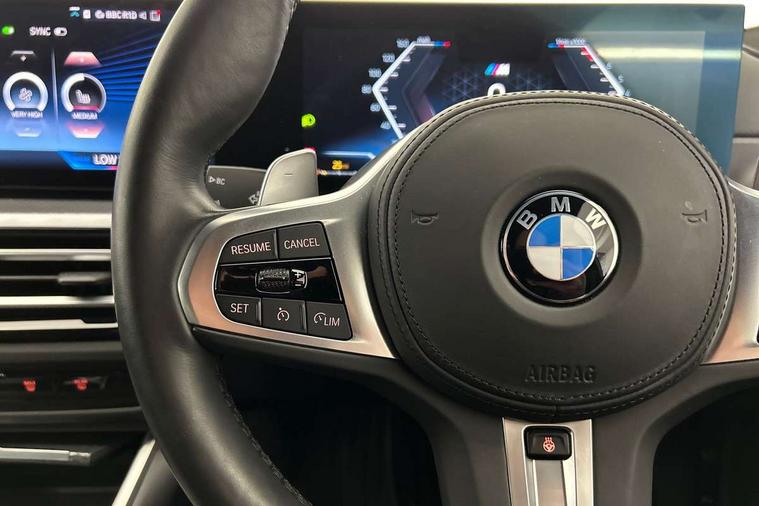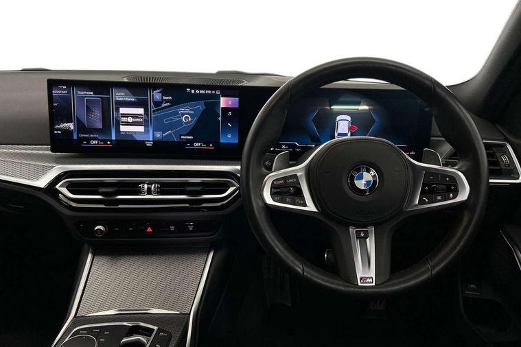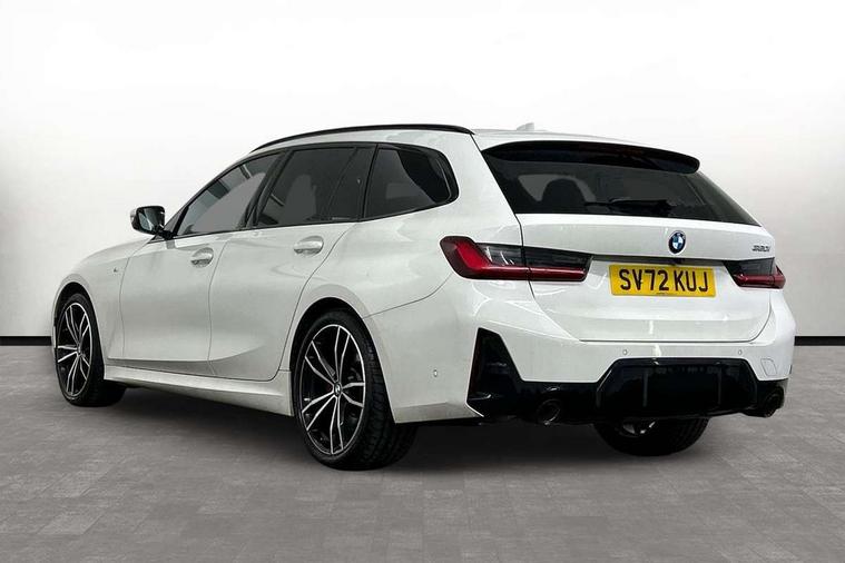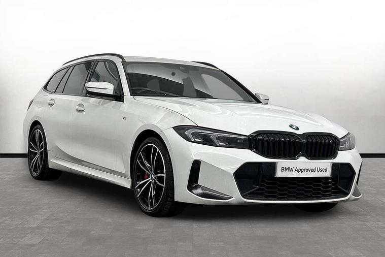 Active guard plus, Attentiveness assist, Automatic Start/stop button, BMW iDrive, BMW Teleservices, Condition based service, ConnectedDrive Services, Cruise control with brake function + speed limiter, Driving experience switch, Live cockpit plus with Navigation + 12.3" instrument display + 14.9" display, Intelligent voice assist, 2 USB, 4G LTE connect, Oil sensor for level and grade, Preparation for driver assistance, Shifting point display, Smartphone integration, Variable sport steering, Double joint spring strut front axle, Electronic differential lock control (EDLC), Fuel tank breather system, M sport suspension, Sport automatic transmission with steering-wheel mounted gearshift paddles and launch control, DAB tuner, 3rd brake light, Acoustic glazing, Automatic headlight beam throw control with load dependent regulating reaction, dynamic compensation of braking dive and acceleration squat, BMW emblem, engine compartment lid and tailgate, Body colour roof fin, Door sill strips, Electric windows - front and rear, with open/close fingertip control, anti-trap facility and comfort closing, Follow me home headlight function, Front and rear bumper system with replaceable deformation elements, Front apron plastic in body colour, Fuel filler flap - right rear in body colour, Heated washer jets, Illuminated bow type door handles in body colour drivers side with door lock, Interior rear view electrochromatic mirror with automatic anti dazzle function, LED headlights with LED daytime running lights and LED turn indicator, LED rear lights, Licence plate panel integrated into front bumper and tailgate, Matt black B-pillar finsher, Matt black window recess cover, Model designation on right side of tailgate, One piece front bumper cover including towing eye cover in body colour, Rain sensor with automatic headlight activation, Rear side wing doors, Rear wiper, Reversing lights, Side frame decorative moulding black matt, Visible exhaust tailpipe finisher, Welcome lights in interior and door handle area, 12V power socket in front storage compartment, 2 front cupholder in centre console with clamping elements and matt black inlay, 3 seat bench in 2nd row, 3 zone automatic air conditioning, 40:20:40 split folding rear seat with loading system, Anthracite headlining, Armrest integrated in front and rear door trim + front centre console armrest, BMW ID, Driver backrest width adjustment, Folding rear centre armrest with 2 cupholders, Front and rear door exit lighting (left / right), Front and rear footwell lighting, Front and rear headrests, Front and rear reading lights, Front and rear velour floor mats, Front sport seats, Heated front seats, Height adjustable mechanically and infinitely variable steering column, Illuminated armrest storage compartment, Illuminated glove compartment, Illuminated luggage compartment, Lashing eyelets in luggage compartment, LED ambient lighting with welcome carpet light, M Sport multifunction leather steering wheel, Make-up mirror lights, Single front passenger seat, Standard seat for driver and passenger with manual adjustment, Sunvisors with vanity mirrors and ticket pocket, Toolkit located in luggage compartment, Connected pack professional - 3 Series Saloon/Touring, Interior and exterior mirror pack - 3 Series Touring/Saloon, M Aerodynamics package - 3 Series Saloon/Touring, M sport exterior styling pack - 3 Series Saloon/Touring, Parking assistant pack - 3 Series, Storage compartment pack - 3 Series Saloon/Touring, 3x3 point rear seatbelts, BMW emergency call, Child locks on rear doors, Crash sensor activating of airbags, Unlocking doors, hazard warning lights, interior light, safety battery terminal, Driver and front passenger with seat occupancy detection for driver's and passenger side, Driver and passenger side airbags, body protection at side and airbags deploy from seat backrests, Dynamic brake control, Dynamic stability control + (DSC+) - Anti-lock Braking System (ABS) with brake assist and cornering brake control + Automatic Stability Control (ASC), Dynamic Traction Control - DTC, Electric parking brake including automatic hold function and automatic release of the parking brake when driving off, Head airbags in 1st and 2nd row, head protection at side, curtain airbags open from headliner above 1st and 2nd row, Plastic fuel tank, Side impact protection, Tyre pressure monitoring with three level warning strategy, Ventilated front and rear disc brakes, Warning triangle and first aid kit, Alarm system, Centre lock switch, Closing system with central locking, Electronic vehicle immobiliser,