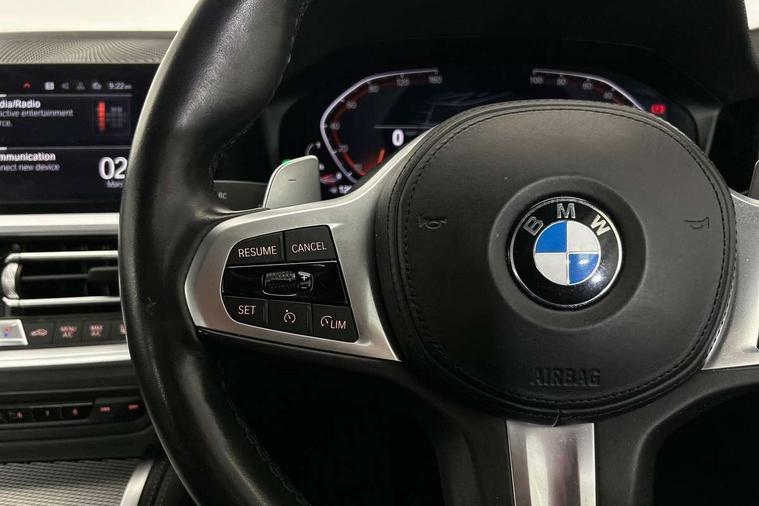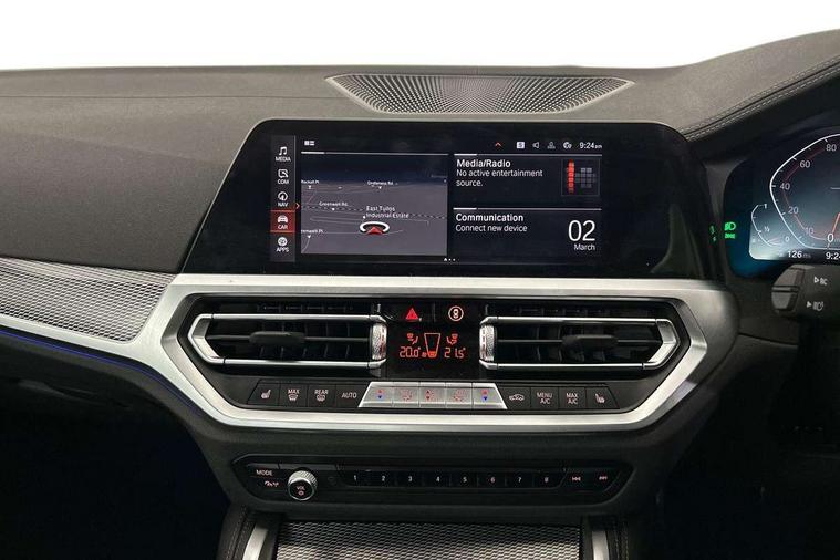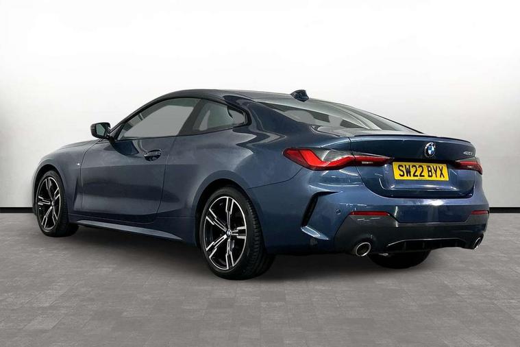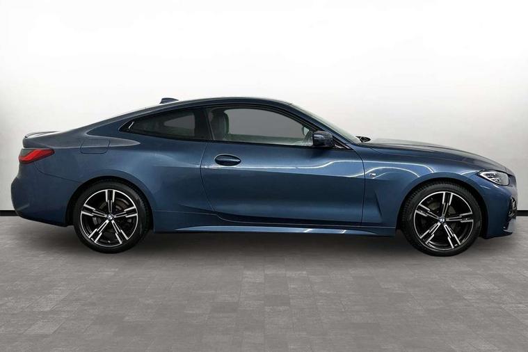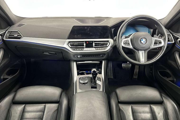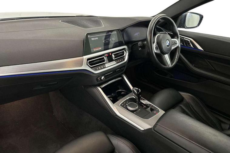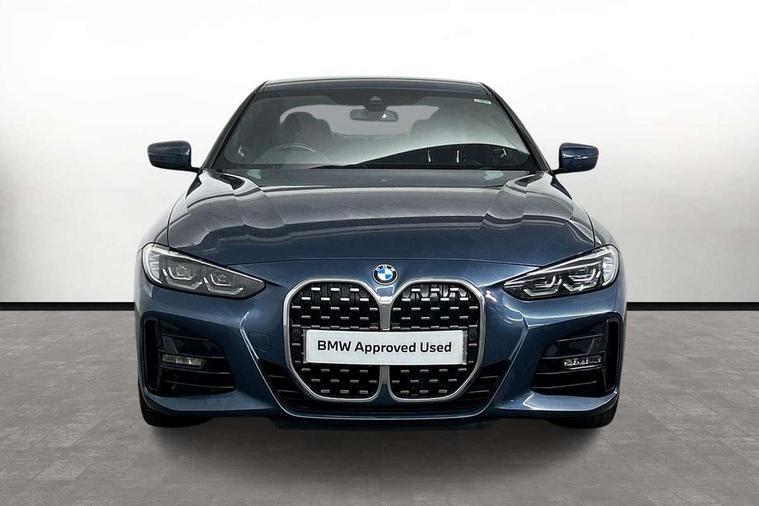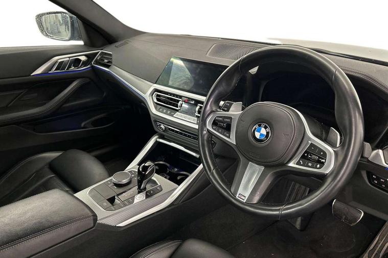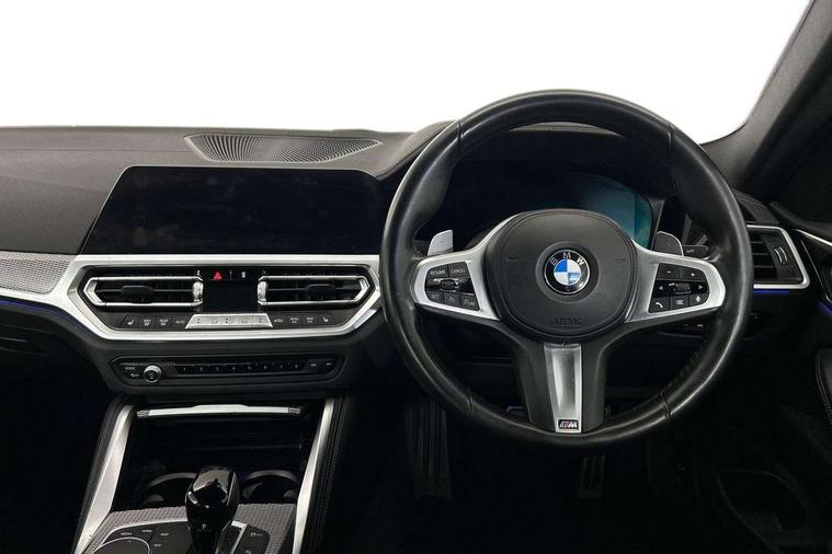 Active guard plus, Attentiveness assist, Auto start-stop, BMW ConnectedDrive online services, BMW iDrive controller on centre console, BMW Live Cockpit Professional Nav with 12.3" instrument display + 10.25" display, Intelligent Voice Assist, BMW OS 7, HDD, 2USB, 4G LTE connect, BMW service history, BMW Teleservices, Brake pad wear indicator in front and rear, Check Control warning system for monitoring of lights and door/luggage compartment open warning, Condition based service, Cruise control with brake assist, Electric power steering with Servotronic steering optimised at all speed ranges, Gearshift time display in manual mode, Instrument cluster with speedometer with mph readout, tachometer, fuel gauge and oil temperature gauge, Integrated owners handbook, Oil sensor for level and grade, warning by check control system, On board computer - average speed, fuel consumption, outside temp display with acoustic warning, clock/date, service interval, odometer/trip meter, Optimum shift indicator, Touch control functionality for BMW Live Cockpit Professional Nav, Variable sport steering, 8 speed automatic steptronic transmission with gearshift paddles, Balanced 50/50 weight distribution, Double VANOS, Drive performance control - ECO PRO, comfort and sport modes, Electronic differential lock control (EDLC), High precision injection, Low centre of gravity, M sport suspension, Petrol Particulate Filter, Stroke dependent dampers, VALVETRONIC engine management, DAB tuner, Electronic service booklet, Acoustic glazing, Automatic headlight beam throw control with load dependent regulating reaction, dynamic compensation of braking dive and acceleration squat, Automatic windscreen wipers and automatic headlight, Automatically dimming electrochromatic rear view mirror, BMW emblem on engine compartment lid and tailgate, BMW kidney grille with mesh grille front side of the nuggets in matt aluminium and frame in chrome high gloss, Body colour fuel filler flap, Body colour M sport rear spoiler, Body colour roof fin, Brushed aluminium inserts in the front door sill finishers with BMW designation, Dynamic brake lights, Electric windows - front and rear, with open/close fingertip control, anti trap facility and comfort closing function all round, Exhaust tailpipe - split left and right, Exterior mirrors - electrically folding with anti-dazzle, Fading support, Follow me home headlights, Front and rear bumper system, Front apron plastic in body colour, Green tinted heat protection glazing, High gloss shadow line exterior trim, Illuminated bow type door handles in body colour drivers side with door lock, Interior rear view electrochromatic mirror with automatic anti dazzle function, LED daytime running lights, LED front fog lights, Licence plate panel integrated into front bumper and tailgate, Lightweight engineering, M designation on front side panels, left and right, M rear boot spoiler, Model designation on right side of tailgate, One piece front bumper cover including towing eye cover in body colour, Preparation for high beam assistant, Rear boot, Reversing light, Side frame decorative moulding black matt, Two part LED tailights in L-shape with components in smoked glass, brake light, LED turn indicator and rear fog light, Visible VIN plate, Welcome lights in interior and door handle area, Widened track and increased camber values for max transverse dynamics, agility and steering precision, Window recess cover black high gloss, Windscreen wipers with integrated heated washing jets, 12V power socket in front centre console, 2 front cupholder in centre console with clamping elements and matt black inlay, 2 Rear seat headrests, 2 seat bench in second row, 3 spoke M sport leather multifunction steering wheel, 3 zone automatic air conditioning, 4 pieces lashing eyelets in luggage compartment, 40:20:40 split folding rear seat and rear centre armrest with two cupholders, Ambient lighting with welcome carpet light, Anthracite headlining, Armrest integrated in front and rear door trim + front centre console armrest, Driver seat backrest width adjustment, Four grab handles integrated in roof lining, Front and rear door pockets, Front and rear footwell lights, Front and rear reading lights, Front headrests, Front passenger seat, Front sport seats, Heated driver and front passenger seats, Height adjustable mechanically and infinitely variable steering column, Illuminated armrest storage compartment, Illuminated glove compartment with separate small compartment, Luggage compartment light, Make-up mirror lights, Storage compartment in rear centre console, Sunvisors with vanity mirrors and ticket pocket, Toolkit located in luggage compartment, USB type - C cable charging function in the rear centre console, Velour front floor mats, Vernasca leather upholstery, Connected professional package - 4 Series, M sport exterior styling pack - 4 Series, Park assist pack - 4 Series, 2 x 3-point rear seatbelts, Battery safety cut-off, BMW emergency call, Brake energy regeneration, Braking pre-tensioning, Child seat ISOFIX attachment for the two outer rear seats, Coasting in idle in ECO PRO mode, Cornering brake control (CBC), Crash sensor activating of airbags, Unlocking doors, hazard warning lights, interior light, safety battery terminal, Driver and front passenger side airbags, integrated in the door side seat backrest bolsters for all seat variants, Driver/Front Passenger airbags, Dry braking, Dynamic brake control, Dynamic stability control + (DSC+) - Anti-lock Braking System (ABS) with brake assist and cornering brake control + Automatic Stability Control (ASC), Dynamic Traction Control - DTC, Electric parking brake including automatic hold function and automatic release of the parking brake when driving off, Front and rear ventilated brake disc, Front passenger manual airbag deactivation, Head airbags for all 4 outer seats, Hill start assistant, Seat belt security check for driver and front passenger, Seat belt with belt stoppe