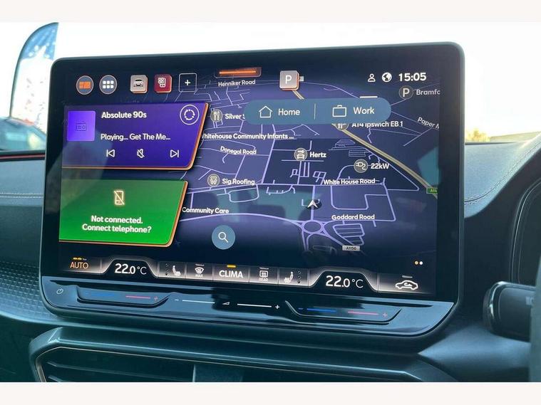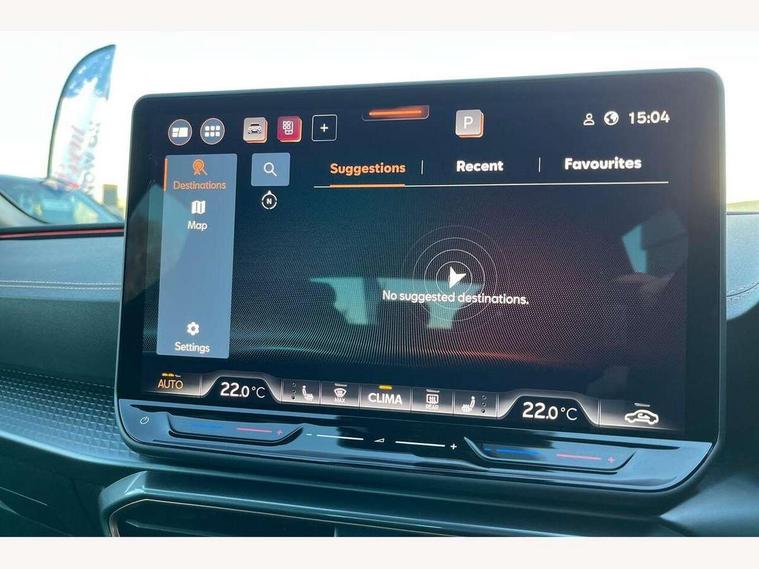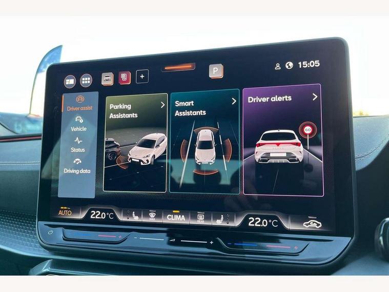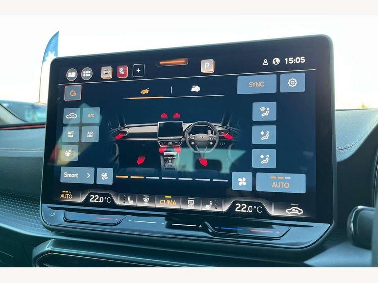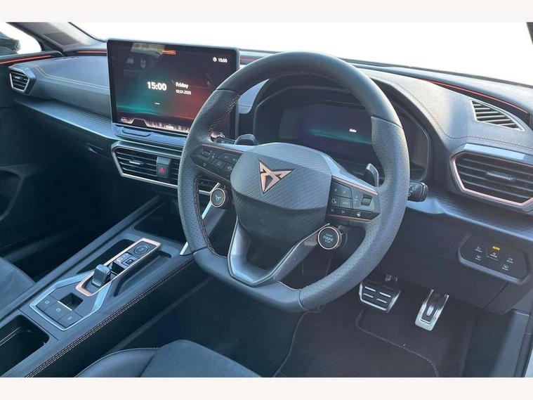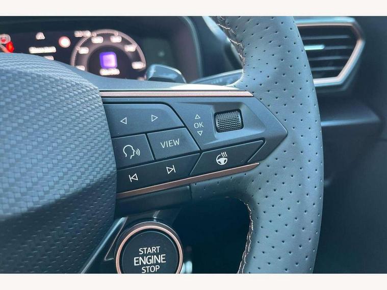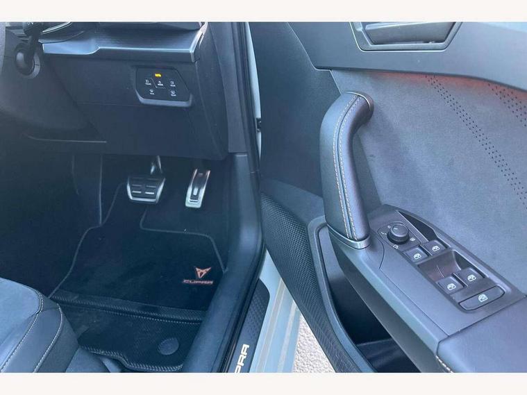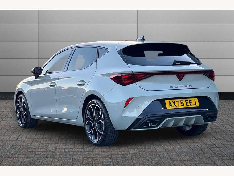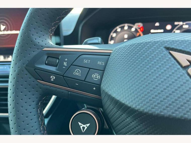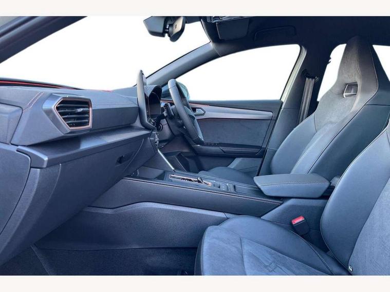 Adaptive cruise control with follow-to-stop and speed limiter, CUPRA drive profile selection with (Comfort/Sport/Individual), throttle response and gearshift mode, Digital cockpit, Dynamic road sign display, E-call, Front and rear parking sensors, Front assist with forward collision warning braking reaction to vehicles, pedestrians and cyclists, Full link smartphone integration with Mirror Link, wireless Apple CarPlay and wired Google Android Auto, Lane assist, Lockable tailgate, Rear view camera, RPM, trip computer, outside temp gauge, instrument light brightness, low fuel warning light, lights on reminder, gearshift indicator, Service interval indicator, Start/stop system with regenerative braking, Wireless phone charger, Auxiliary input socket, Auto dimming rear view mirror, Body colour door handles, Body coloured bumpers, Cupra sports bumpers, Dark tinted rear windows, Electric front/rear windows, Electrically adjustable, heated and folding door mirrors, High beam assist, LED front fog lamps with cornering function, LED headlights with dynamic turn signals, tail lights, rear fog lights with rear coast to coast lighting, LED rear fog lamp, Rain sensing wipers, Rear side wing doors, Rear wash/wipe, Separate daytime running light with automatic headlight control and coming home feature, Third brake light, Welcome light with logo projector in door mirrors, 12v power supply in centre console, 3 seat bench in 2nd row, 5 headrests, 60/40 split rear bench seat with armrest, Ambient lighting (glovebox, footwell, ambient lighting multicoloured), Black headlining, Cupra sports pedals, CUPRA Supersports, heated steering wheel with satellite buttons, Dinamica cloth upholstery, Electrically adjustable driver seat and lumbar support with memory function + manually adjustable passenger seat, Folding boot cover, Four x USB Type C ports (2 in front and 2 in rear), Front and rear reading lights X 4, Front centre armrest, Heated front seats, Height/reach adjust steering wheel, Illuminated interior front door sills, Interior wraparound lighting, ISOFIX points in outer rear seats with top tether anchorage points, Single front passenger seat, Storage pockets on rear of front seats, Sunvisors with illuminated mirror, Three zone climate control, Dynamic and comfort pack - Leon Cupra, Media system plus with 12.9" display + navigation pack - Leon Cupra, 3 point seatbelts on all rear seats, ABS, Brake control system - ESC and brake booster, Child proof door locks, Cupra black brake calipers, Driver and front passenger airbags with front passenger airbag de-activation, front side and curtain airbags, Electronic parking brake, Hill hold control, Rear disc brakes, Seat belt reminder for front and rear seats, Tiredness recognition system, Tyre pressure monitoring system, Anti theft alarm system with interior monitoring in cab, backup horn and towing protection, KESSY Advanced - Keyless start, keyless entry, Locking wheel bolts, Chrome and copper interior detailing, 19" Polar machined sport black and silver alloy wheel with 91Y tyres, Tool kit,