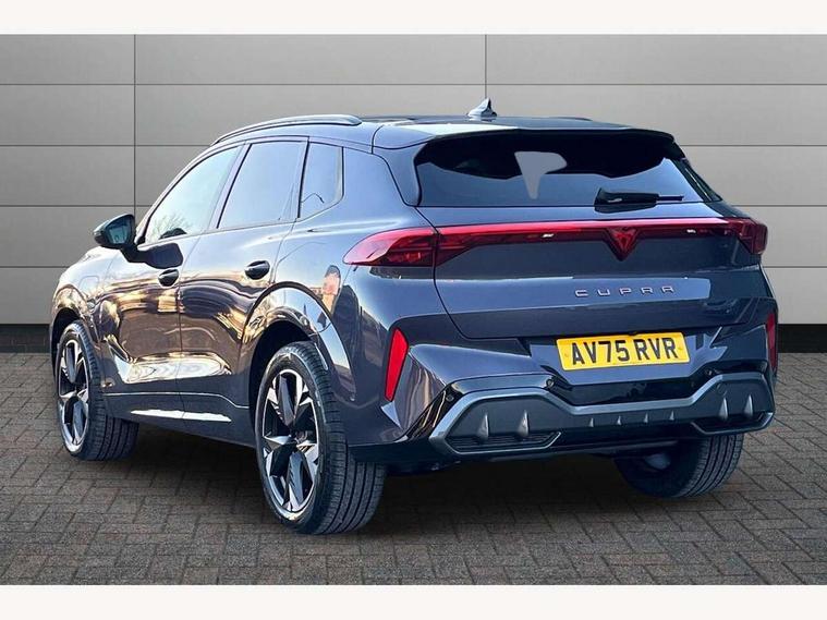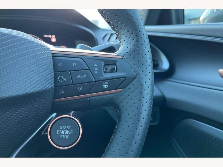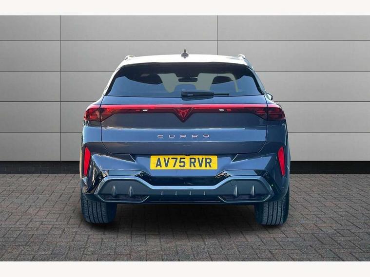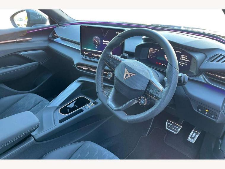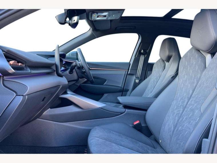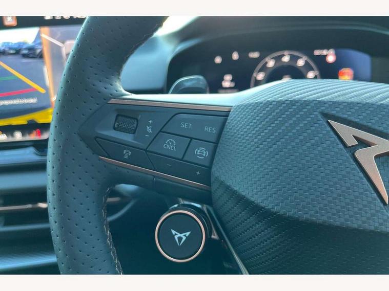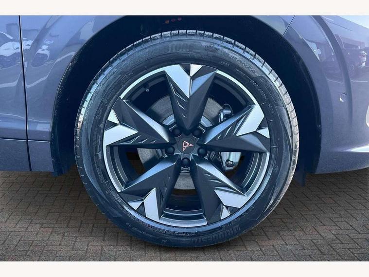 10.25" digital cockpit and configurable dashboard, Adaptive cruise control with follow-to-stop and speed limiter, Advanced driver alert system, Advanced lane assist with semi-automatic vehicle control in a medical emergency and traffic jam assist, Driving profile selection and conventional shock absorber, Dynamic road sign display, E-call, Electric tailgate with virtual pedal, Emergency steering support with turn assist, Front and rear parking sensors, Front assist (Forward collision warning with automatic braking) with multifunction camera and front cross traffic assist, Head up Display, Intelligent park assist, Media system with Nav - 12.9" touch display, voice control, full link phone (wired/wireless), DAB and Steering wheel mounted controls, Rear traffic assist, Side and exit assist, Speed sensitive power steering, Start/stop system with regenerative braking, Top view camera (front camera, rear camera, 2 side cameras), Wireless phone charger, 10 amp mode 2 charging cable, 16 amp mode 3 charging cable, Auto dimming rear view mirror, Black roof rails, CUPRA 3D rear lights with ceremony & swiping indicator and illuminated logo, Dark tinted rear windows, Daytime running lights with automatic headlight control and Coming and Leaving home function, Door mirrors with memory function and lowing function on passenger mirror, Dynamic headlight range control, Electric front/rear windows, Electrically adjustable, heated and folding door mirrors, Front fog lamps with cornering function, Heat reflecting windscreen, High beam assist, LED headlamps with signature "CUPRA LED", Rain sensing wipers, Rear fog light on one side, back up light on both sides, Rear side wing doors, Rear wash/wipe, Third brake light, Welcome lights (within exterior mirror housing), 3 seat bench in 2nd row, Black roof lining, Cupra sports pedals, Dinamica cloth upholstery, Driver seat memory function, Electrically adjustable front seats including lumbar support, Four x USB Type C ports (2 in front and 2 in rear), Front and rear head restraints, Front and rear reading lights X 4, Front centre armrest, Heated front seats, Heated leather wrapped multi function sports steering wheel with tiptronic, Illuminated interior front door sills, Isofix, Operating voltage 12V, Single front passenger seat, Smart wraparound interior lighting, Sunvisors with illuminated mirror, Three zone climate control with control panel in rear, Unsplit rear seat bench, split folding backrest, with centre armrest, Variable luggage/load compartment floor, 3 point seatbelts in front with pretensioner and electric height adjustment, 3 point seatbelts on all rear seats, Brake control system - ESC and brake booster, Child proof door locks, Driver and front passenger airbags, Electronic parking brake, Front and rear disc brakes, Front interaction airbag, Front passenger airbag deactivation switch, Front side airbags with curtain airbags, Pre-crash front and rear seat belt tensioner, window closure and hazard lights, Tyre pressure monitoring system, Visual and acoustic seat belt reminder, electric contact in front and rear, Anti theft alarm, Keyless locking and starting system with keyless access, Locking wheel bolts, Black decorative trims, Chrome interior detailing, 19" Spectrum exclusive machine alloy wheels, Breakdown kit, Tool kit,