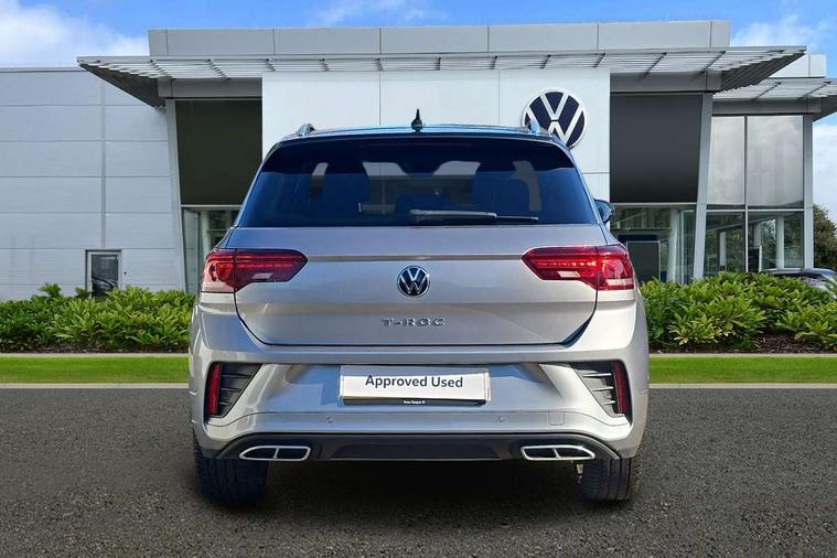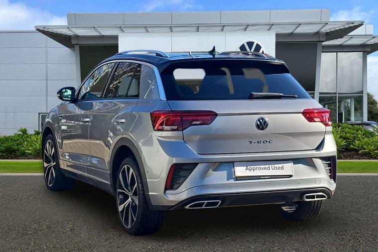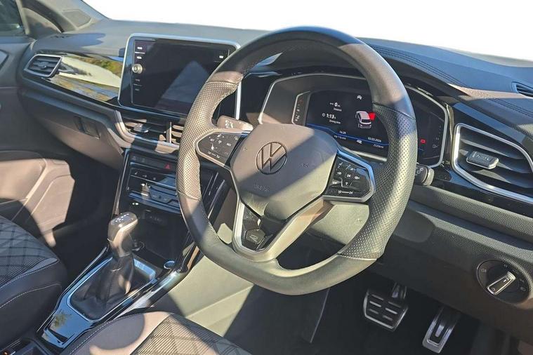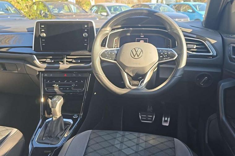 10.25" Digital cockpit pro, Bluetooth mobile phone interface, Driver alert system with fatigue detection, Driver tips and journey analysis, Emergency call service, Lane keeping system Lane Assist, Modified key software - reduce switch off time for key status change to Long no motion, Online services, Park assist including front and rear parking sensors, Service interval indicator, Tailgate/trunk lid release from outside, Think blue trainer driver tips and journey analysis, Warning sound and light for front seatbelts unfastened, Wireless app connect, Battery regeneration during braking, Start/stop function with battery regeneration, Diversity antenna for FM reception, Front and rear 6 speakers, Music playback - MP3, WMA and AAC files, Premium USB cable in choice of either Apple or Android smartphone compatibility, SD card slot, Simultaneous pairing of 2 compatible mobile devices, Title and cover art display, We Connect and We Connect Plus functionality, 3rd brake light, Auto dimming interior rear view mirror, Automatic hazard lights activation under emergency braking, Automatic headlight control with LED separate daytime running lights with coming/leaving home function, Extended roof spoiler, Exterior mirrors aspherical on driver side, convex on front passenger side, External USB type C socket and charging sockets, Front windscreen wiper with intermittent wipe and 4 position delay, Heated rear window, LED Plus headlamps, LED rear combination lamps, LED rear number plate lights, LED tail lamp rear comination lamps, Power windows with comfort operation and circuit breaker, R-Line design body coloured bumpers, Rain sensor, Rear exhaust tailpipe, Rear fog light on one side and reversing lights on both sides, Rear side wing doors, Rear wash/wipe with intermittent wipe setting, Remote electrically foldable door mirrors, puddle lights and reverse activated passenger's door mirror, 12V power socket in centre console, 3 rear head restraints, 3 seat bench in 2nd row, 4 load lashing points in luggage compartment, Air care climatronic air conditoning system with active combination filter and 2-zone temperature control, Black roof lining, Chrome plated radiator grille inserts, air vent surrounds and light switch surrounds, Door and side trim panel with leatherette insert, Drawer under drivers seat, Front + rear carpet mats, Front centre armrest, Front cupholders x 2, Front footwell illumination, Front reading light, Front scuff plates with R logo, Instrument lighting, white adjustable panel illumination, Interior ambient lighting and surround lighting, Interior light delay, Isofix child seat preparation, Leather gearshift handle, Load-through provision with cup holder when folded down ('Unsplit rear seat bench, split folding backrest, with centre armrest), Luggage compartment lighting, Single front passenger seat, Stainless steel pedals, Storage compartment in left and right luggage area, Storage compartment in rear doors, Storage compartments in driver and front passenger doors, Sunvisors with illuminated vanity mirrors, Variable boot floor, height adjustable and removable, Driver assistance pack without proactive passenger protection - T-Roc, 3 point height adj front seatbelts + pretensioners, 3 point seatbelts in outer rear with ECE label, ABS, Child locks on rear doors, Driver and front passenger airbag with front passenger airbag deactivation, Driver and front passenger safety-optimised head restraints, Drivers seatbelt reminder, Electronic parking brake, Electronic Stability Control (ESC) inc EDL (Electronic Differential Lock) and ASR (Traction Control), Front and rear passengers curtain airbag system including front side airbags, Front assist with city emergency braking and pedestrian monitoring, Front seat side impact airbags, Hill start assist, Predictive pedestrian protection, Rear disc brakes, Single tone horn, Tyre pressure loss indicator, Volkswagen roadside assistance, Alarm with interior protection, Anti-theft alarm system with interior monitoring, backup horn, and towing protection, Remote central locking with SAFELOCK, radio remote control with 2 remote control folding keys, Trims for alloy wheels,