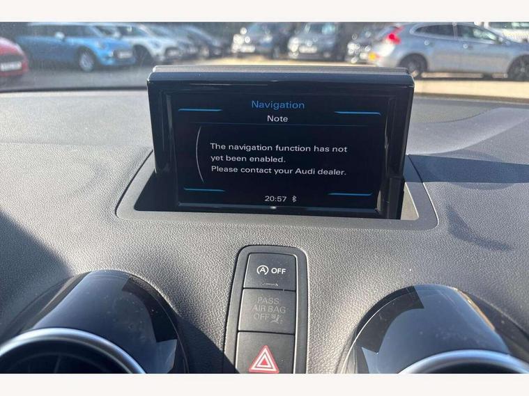 Electro-mechanical PAS, Low washer fluid indicator, Service interval indicator, Voice control system, Additional SD card reader, Audi music interface, Bluetooth audio streaming, DAB Digital radio, Adaptive brake lights, Electric adjustable door mirrors, Electric front windows, Electric rear windows, Front fog lights, Heat insulating glass, Heated door mirrors, Heated rear windscreen, Rear wiper, 12V Accessory socket in centre console, 3 spoke leather multi-function sport steering wheel including paddle shift, Adjustable rear head restraints, Cupholders in centre console, Door sills trims with aluminium inlays, Front floor mats, Front head restraints, Front sports seats, Height adjustable front seats, Illuminated glovebox, Isofix attachments on outer rear seats, Jack and tool kit, Leather gear knob, Leather handbrake, Lumbar adjustment for front seats, Rake/reach adjustable steering wheel, Split folding rear seats, Connectivity pack - A1, ABS/EBD, Brake assist function, Driver and passenger side airbags, Driver/Front Passenger airbags, EDL, ESP with ASR, First aid kit, Front and rear seatbelt reminder, Front passenger airbag deactivation, Head airbags, Height adjustable front seatbelts, Hill hold assist, Tyre pressure monitor, Warning triangle, Locking wheel bolts, Remote control central locking, Thatcham category 1 alarm + immobiliser, Tyre repair kit,