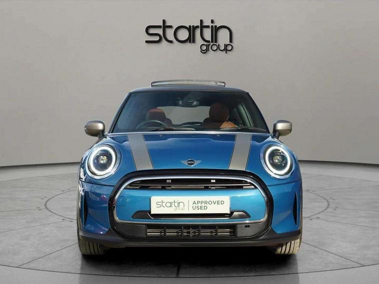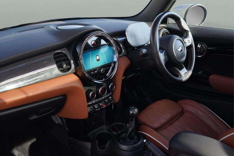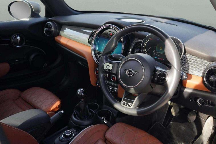 Automatic start/stop function with brake energy recuperation, Compatible mobile phone bluetooth with audio streaming, Cruise control with brake assist, Electro-mechanical speed dependant steering assistance, Flexible car sharing preparation, Instrument cluster, MINI Driving Modes - centre toggle switch to control driving setting (sport, mid and green), Mini E-call, MINI TeleServices, On board computer, Rear park distance control, Service interval indicator, 6 Speed manual transmission including gear change indicator display, Double Vanos system, Fully variable valve control, High precision injection, Performance Control, 4 speakers in front door trims and underneath front seats, 8.8" touchscreen with LED ring, FM tuner and DAB digital radio, Automatic headlight activation switch, Body colour fuel filler cap, Chrome line exterior - radiator grille bars, tailgate handle, lower front grille grating and rear central fog-light, Dynamic brake lights, Electric front windows, Heated rear window, Heated windscreen washer jets, LED headlight with closed ring and daytime driving lights, Metal door sill strips with MINI imprint, Model logo Cooper on right of tailgate, Rain sensor window wipers, Rear fog lights, Rear LED lights with union jack design, Rear window wiper, Side scuttle panel with integrated indicator, Sun/heat protection glass, White indicator lenses, 12V Accessory socket in centre console, 4 lashing eyes in luggage compartment, 60/40 split folding rear seat, Carbon black colour line - Knee roll and door armrest, Chrome interior highlights, Chrome line interior - air vents, gear lever base, door handles and speakers in doors, Cupholders, Front and rear head restraints, Front and rear isofix with front passenger airbag deactivation, Glove compartment, Height and length steering column adjustment, Interior lighting with 12 different colours across the dashboard, underneath door bezel with illuminated laser-engraved design on central display, Leatherette gearshift lever and handbrake gaiters, LED reading lights, vanity mirror lights, front foot well light and spotlight on front seats, Manual air conditioning, Mechanical seat adjustment - forward/back & backrest for front seats and driver seat height adjust, MINI yours badge on exterior pillar, Multifunction steering wheel, Passenger seat height adjuster, Satellite grey headlining including grab handles and clothes hooks, Storage compartments in doors, Sunvisors with vanity mirrors, Velour floor mats, Walknappa leather steering wheel with grey seam and MINI Yours badge on Piano Black lower steering wheel spoke, 3 point seatbelts on all four seats, 6 Airbags - front, side, head and seat belt tensioners, Anti-lock braking system (ABS), DSC - Dynamic Stability Control, Front and rear disc brakes, Single tone fanfare horn, Tyre pressure monitoring system, Alarm system with tilt sensor, monitoring doors, bonnet interior and tailgate, Electronic vehicle immobiliser, Start/stop toggle with keyless go, Tool kit,