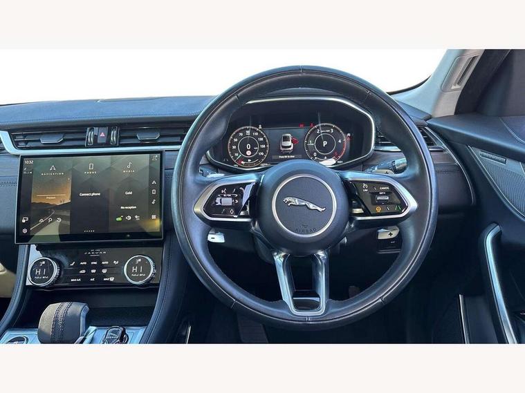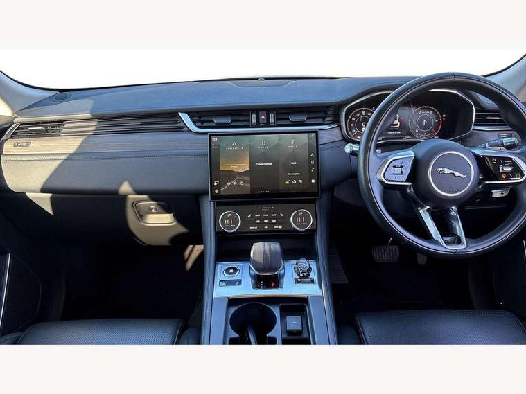 11.4" touchscreen, 3D surround camera, Android Auto, Apple car play, Blind spot assist, Bluetooth connectivity, Clear exit monitor, Driver alert system, Driver condition monitor, Eco driving style assistant, Electric power assisted steering, InControl remote, Interactive Driver display instrument cluster, Jaguar Toggle shift selector, Lane departure warning system, Lane keep assist, Outside temperature gauge, Personalisation profile management, Pivi pro connected navigation system with app interface and media storage, Pro services and wifi hotspot, Push button starter, Rear traffic monitor, Service interval indicator, Speed proportional steering, Start up sequence with movement in dials and lighting, Traffic sign recognition with adaptive speed limiter, Trip computer, Voice control system, 8 speed automatic transmission, All terrain progress control, All Wheel Drive (AWD), Open differential with torque vectoring by braking, AM/FM radio, Bluetooth streaming, DAB Radio (Digital Audio Broadcasting), Dynamic volume control, InControl apps, InControl protect, iPod integration, 3 flash lane change indicators, Animated directional indicators, Approach Illumination, Auto dimming rear view mirror, Automatic headlights, Body colour door mirrors, Electric heated/power fold memory door mirrors with approach lights and auto dimming driver side, Electric windows with one touch open/close and anti trap, F-Pace badge, Green tinted glass, Heated front windscreen + heated washer jets, Heated rear window with timer, Illuminated metal tread plates with Jaguar script, Jaguar script and leaper, LED tail lights, Non acoustic front windscreen, Rain sensor windscreen wipers, Rear fog lights, Rear metal tread plates, Rear wiper, Trailer stability assist, Variable front intermittent wipers, 12V power point front, 3 rear headrests, Air distribution speed, Cabin lighting, Centre armrest console, Centre console with side storage, Door sill tread plates, Electrically adjustable steering column, Fold flat front seats, Front centre armrest with storage compartment, Front door storage space, Glovebox finisher with jaguar script, Heated steering wheel, Hooks in loadspace, Illuminated glovebox, Interior front door handles with separate locking switches, ISOFIX on outer rear seats, Jaguar sense, Luggage tie downs in loadspace, Mist sensing, Multifunction steering wheel, Overhead lighting console, Overhead stowage for sunglasses, Passive front head restraints, Premium carpet mats, Rear air vents, Rear armrest with twin cupholders, Rear centre headrest, Rear door storage space, Reversible boot floor, Satin chrome gearshift paddles, Shopping bag hook, Split rim leather steering wheel, Sunvisors with illuminated vanity mirrors, Twin front cupholders with cover, Online Pack with data plan - F-Pace, 355mm front brakes and 325mm rear brakes, 3x3 point rear seatbelts, ABS, All surface progress control (ASPC), Brake pad warning light, DSC - Dynamic Stability Control, Electric parking brake (EPB), Front airbags with passenger seat occupant detector, Front and rear seatbelt reminder, Front side airbags, Full length side window curtain airbag, Hill launch assist, Power operated child locks, Torque vectoring brake, Traction control, Tyre pressure monitoring system, Immobiliser, Keyless entry, Keyless start, Locking wheel nuts, Perimeter alarm, Remote central locking, Valet mode,