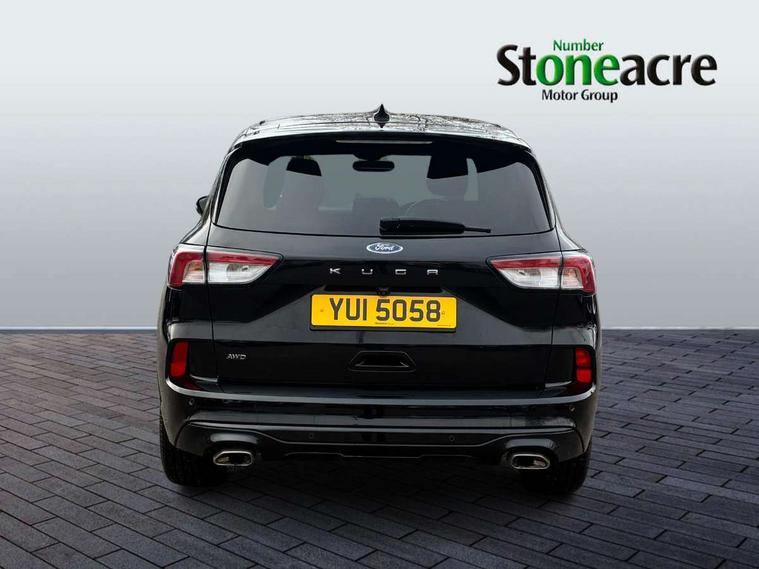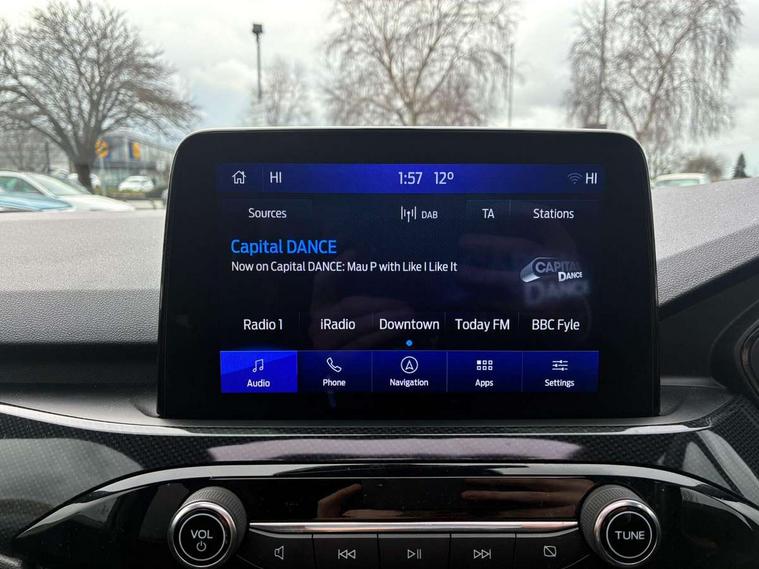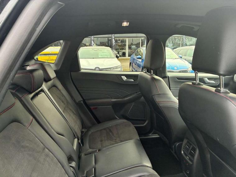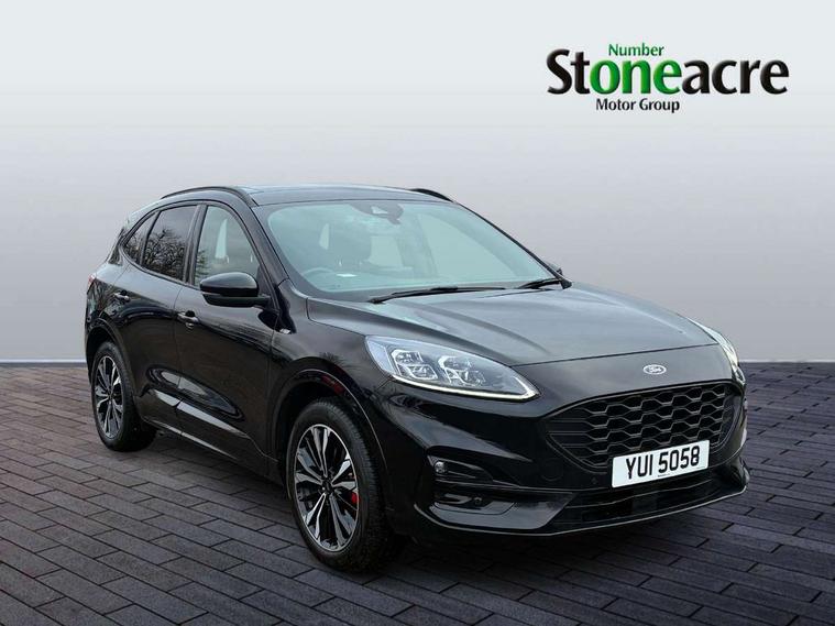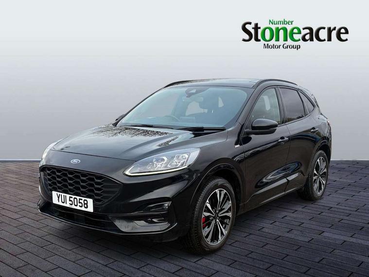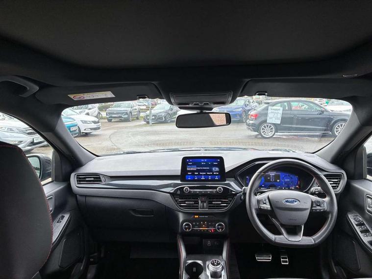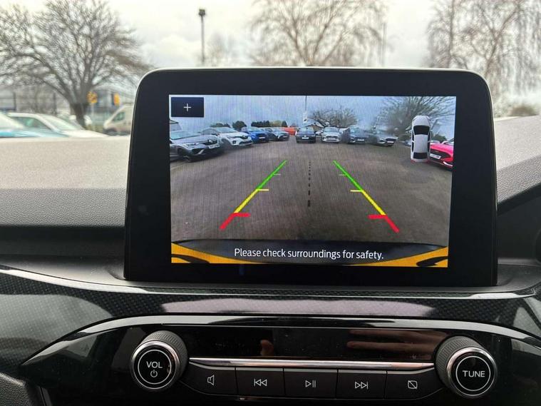12.3" digital colour instrument cluster, 360 degree view camera, e-Call (emergency call), Ford easy fuel, Ford SYNC 4 Navigation with 13" touchscreen, DAB radio, emergency assistance, Andriod Auto/Apple CarPlay, 5G modem & Ford Pass connect, Front and rear parking sensors, Hands free power tailgate, Lane centering assist, Lane keeping aid with lane departure warning, Power assist steering, Selectable drive modes, Service interval indicator, Sports suspension, Twist beam rear suspension, B&O premium audio system with 10 speakers, subwoofer and 2 USB ports, Auto headlamps with high and low beam, Black roof rails, Body colour bumpers, Front LED fog lamps, Large rear spoiler, LED daytime running lights, LED rear lights, Pop out door edge protectors, Power front/rear windows with global close, Power heated folding door mirrors with puddle lights, memory function and camera, Power opening panoramic roof, Quickclear heated windscreen, Rain sensing wipers, Rear privacy glass, Rear side wing doors, Rear wiper, ST-Line body styling kit, Third brake light, 12 way ergonomic power adjust driver's seat with memory (AGR certified), 12 way ergonomic power adjust passenger seat (AGR certified), 2nd row sliding seats, Electronic automatic temperature control (EATC), Front and rear head restraints, Partial premium touch sensico upholstery, Rear centre head restraint, Single front passenger seat, Sports seats, Driver assistance pack with intelligent adaptive cruise control - Kuga FHEV/PHEV, Winter pack - Kuga, 3x3 point rear seatbelts, Airbags - front driver/passenger, front and rear curtain, Drivers knee airbag, Dynamic brake support, Electronic stability control (ESC) and ABS, Evasive steering assist, Ford MyKey Gen 2 safety system, Manual child proof rear door locks, Pre collision assist with autonomous emergency braking, Rear seat Occupancy alert, Red brake calipers, Tyre pressure monitoring system, Engine immobiliser, Keyless entry and Ford power start button (Keyless start), Locking wheel nuts, Remote powered central double locking doors, Thatcham category 1 alarm,