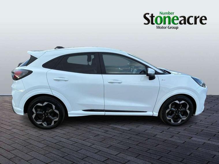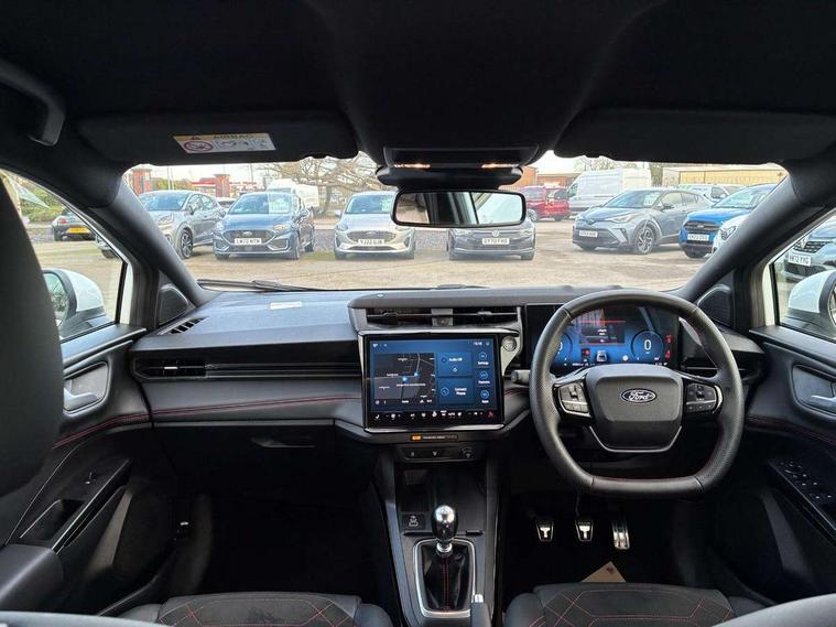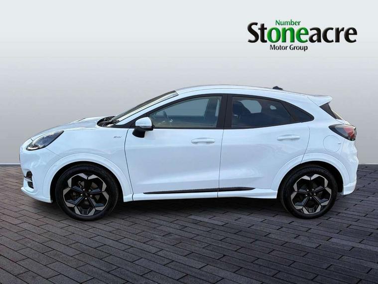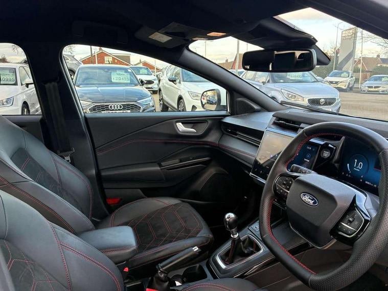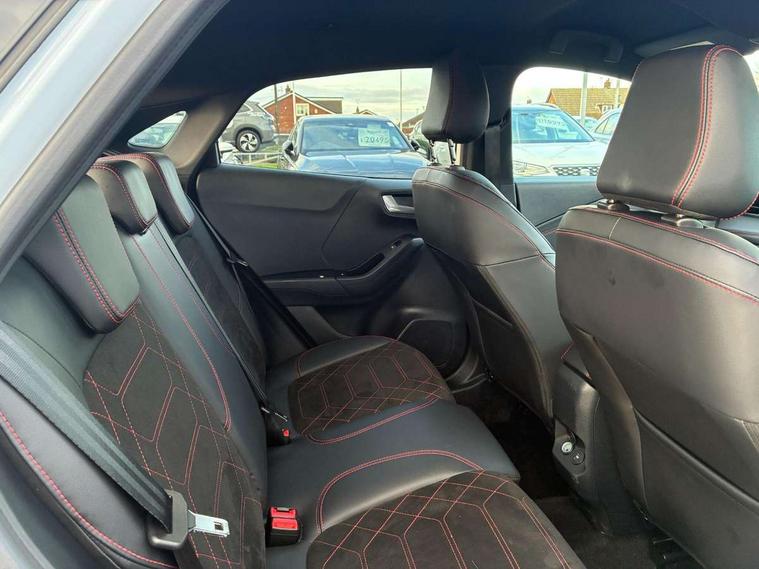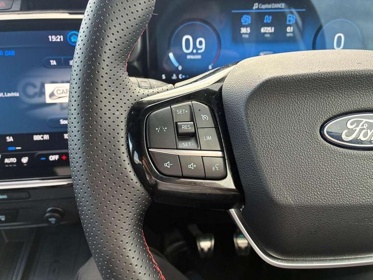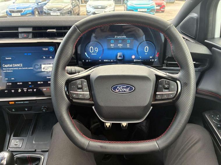Driver impairment monitor, Emergency call service, Ford easy fuel, Full digital 12.8" instrument cluster, Lane keeping aid with lane departure warning, Power assist steering, Selectable drive modes(Normal, Eco, Sport, Slippery and Trail), Speed sign recognition, Sport suspension, 12" landscape touchscreen display with wireless apple car play and android auto premium B&O audio system with 10 speakers, Ford pass connect and emergency assistance, Ford SYNC4 with connected navigation, Automatic headlights with rain sensing wipers and auto high beam, Front fog lamps, LED daytime running lights, LED rear lamps, LED third brake light, Power foldable heated door mirrors with puddle lamps and puma logo protection, Quickclear heated windscreen, Rear privacy glass, Rear side wing doors, Rear wiper, ST-Line X body styling kit, 3 seat bench in 2nd row, 4 way lumbar support for passenger seat, Centre console with armrest and stowage, Electronic automatic temperature control (EATC), Ford megabox extended bootspace, Front and rear head restraints, Front floor mats, Manual 4 way driver seat adjust with lumbar adjustment, Single front passenger seat, ST-Line X Premium synthetic leather upholstery, Comfort pack with power lift tailgate - Puma, 3 rear seatbelts, Child safety lock, Electronic stability control (ESC) and hill start assist, Pre-collision assist with autonomous emergency braking, pedestrian/cyclist detection & post-collision braking, Tyre pressure monitoring system (TPMS), Thatcham alarm,