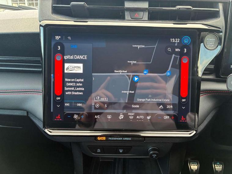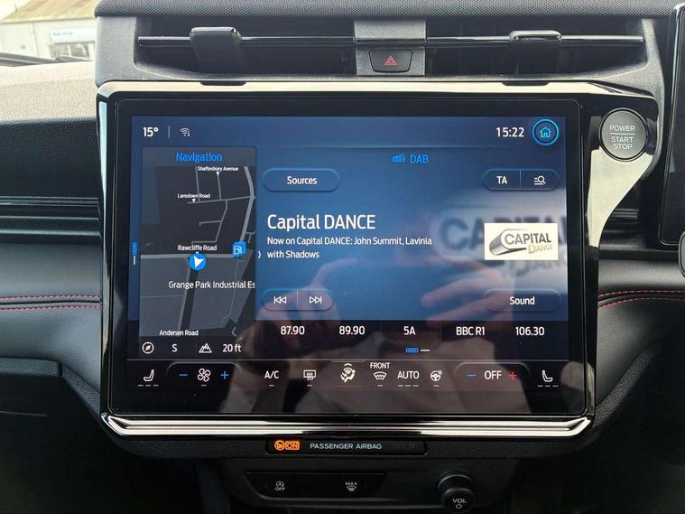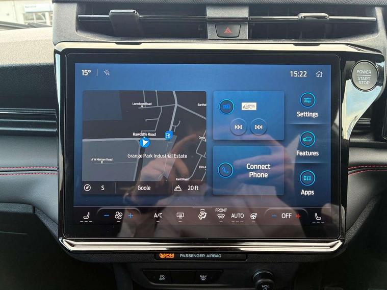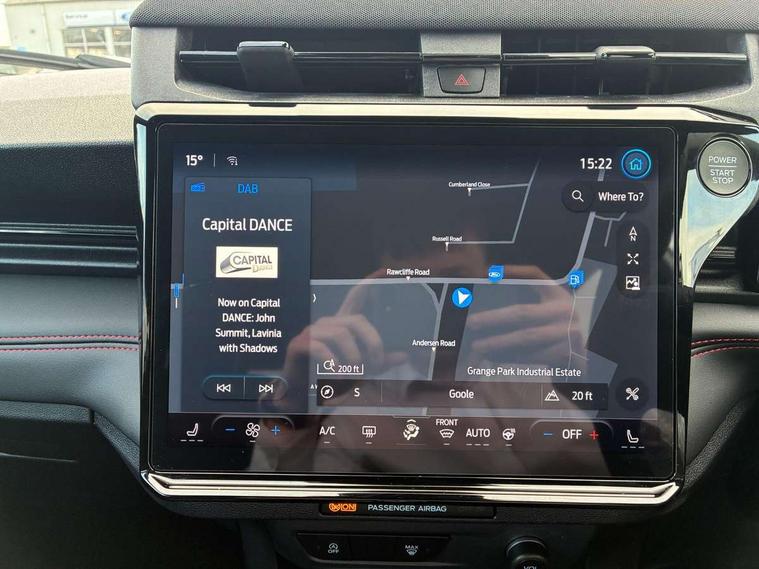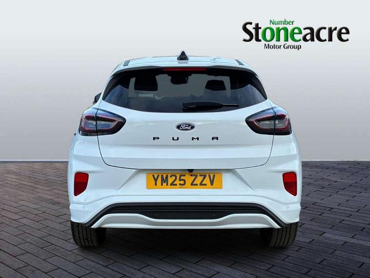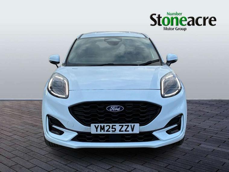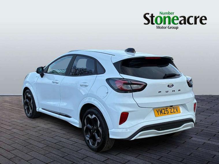 Driver impairment monitor, Emergency call service, Ford easy fuel, Full digital 12.8" instrument cluster, Lane keeping aid with lane departure warning, Power assist steering, Selectable drive modes(Normal, Eco, Sport, Slippery and Trail), Speed sign recognition, Sport suspension, 12" landscape touchscreen display with wireless apple car play and android auto premium B&O audio system with 10 speakers, Ford pass connect and emergency assistance, Ford SYNC4 with connected navigation, Automatic headlights with rain sensing wipers and auto high beam, Front fog lamps, LED daytime running lights, LED rear lamps, LED third brake light, Power foldable heated door mirrors with puddle lamps and puma logo protection, Quickclear heated windscreen, Rear privacy glass, Rear side wing doors, Rear wiper, ST-Line X body styling kit, 3 seat bench in 2nd row, 4 way lumbar support for passenger seat, Centre console with armrest and stowage, Electronic automatic temperature control (EATC), Ford megabox extended bootspace, Front and rear head restraints, Front floor mats, Manual 4 way driver seat adjust with lumbar adjustment, Single front passenger seat, ST-Line X Premium synthetic leather upholstery, Comfort pack with power lift tailgate - Puma, 3 rear seatbelts, Child safety lock, Electronic stability control (ESC) and hill start assist, Pre-collision assist with autonomous emergency braking, pedestrian/cyclist detection & post-collision braking, Tyre pressure monitoring system (TPMS), Thatcham alarm,