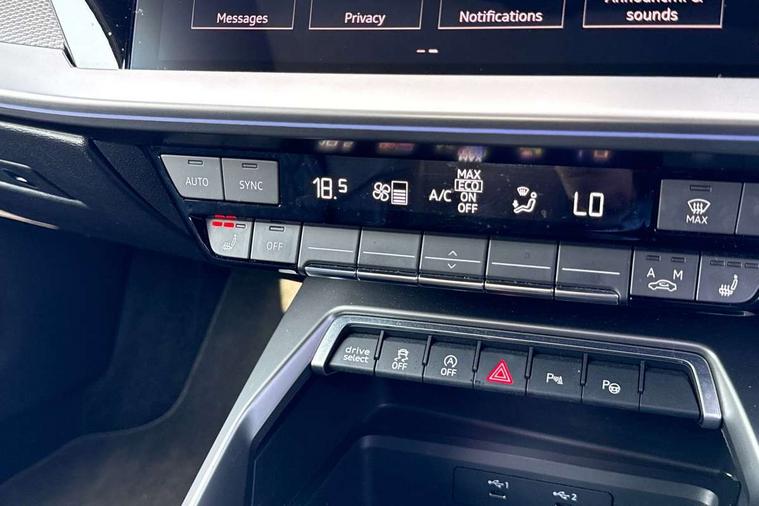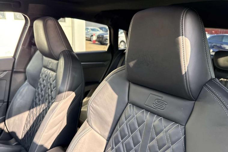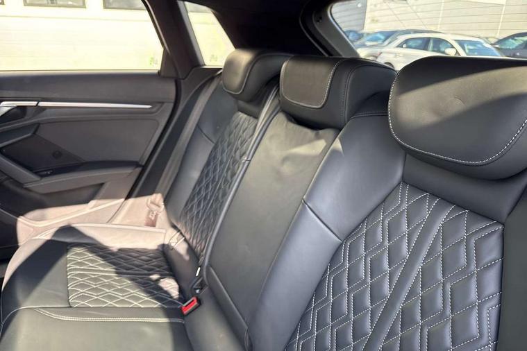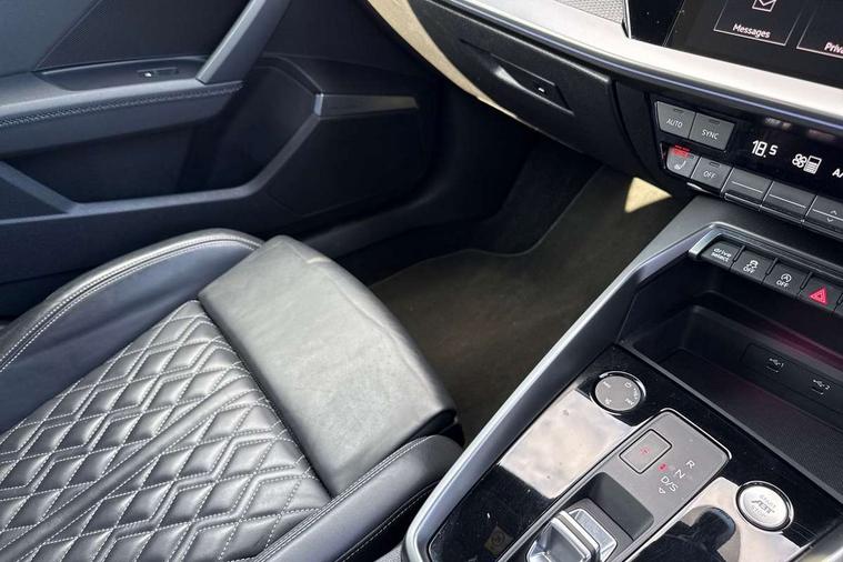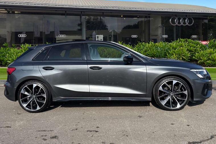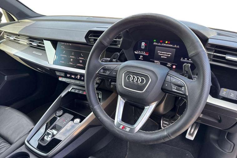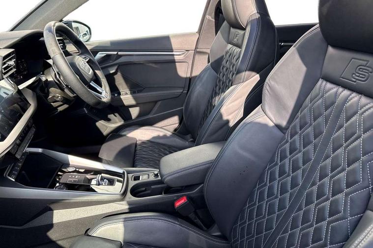 Audi connect emergency call and service, Audi drive select (Auto, Comfort, Dynamic, Efficiency and Individual), Audi smartphone interface, Audi virtual cockpit plus - 12.3" full HD resolution dynamic digital instrument cluster, Automatic start/stop system with recuperation, Bluetooth interface, Collision avoidance assistant, Electromechanical power speed sensitive steering, Head up Display, Lane departure warning system, MMI Navigation Plus with high resolution 10.1" colour touch screen display, Power operated tailgate - Luggage compartment lid opens electrically, Service indicator, Trip computer, Voice control system with natural language interaction, Sports suspension, 2xUSB-C connection with data and charging functions, Bang and Olufsen premium sound system with 3D sound, DAB Digital radio, 3rd brake light, Acoustic glass windscreen, Audi Beam uses LEDs to project Vorsprung logo, Audi matrix LED headlights with LED rear lights + dynamic front and rear indicators, Auto dimming frameless rear view mirror, Body colour front spoiler blade, Electric panoramic sunroof, Electrically adj heated/folding + automatically dimming exterior mirrors + automatic kerb side function for passenger side exterior mirror, Front electric windows, Headlight washers, Illuminated aluminium inserts front door sills with S logo, Integrated LED indicators in door mirrors, LED daytime running lights, Light and rain sensors, Privacy glass - dark tinted rear window, rear door and side windows, Rear diffuser in grained matt black, Rear electric windows, Rear side air outlets in grained matt black, Rear wiper, S roof spoiler, 12V socket and storage compartment in front centre console, 3 spoke multifunction leather steering wheel including paddle shift, 4 way electrically adjustable lumbar support for driver and front passenger, 40/20/40 split folding rear seat bench with cupholder, Black cloth headlining, Dual zone electronic climate control, Electrically adjustable front seats for driver's side, Fine Nappa leather upholstery with front sports seats S embossed logo, Front and rear centre armrest in leather, Front and rear headrests, Front/rear floor mats, Heated front seats, Height and reach adjustable steering wheel, Interior lighting - glove compartment light and right hand side, Luggage compartment floor covering, Seat side bolsters, Stainless steel pedals and front footrest in black, Aluminium interior elements pack - A3 Sportback, Black styling pack - A3 Sportback Vorsprung, Driver assistance package - A3 Sportback, Extended ambient lighting pack - A3 Sportback, LED interior lighting pack - A3 Sportback Edition 1/Vorsprung, 3x3 point rear seat belts, Driver and front passenger airbag with passenger airbag deactivation, Electronic Stabilisation Control (ESC) including ABS, ASR and EDL, First aid kit with warning triangle and 2 safety vests, Front side airbags with head airbags and interaction airbag, Hill hold assist, Pre-sense front with pedestrian and cyclist detection, Seatbelt monitoring, Tyre pressure loss indicator, Advanced key, Anti theft alarm, Anti-theft wheel bolts, Electronically operated child lock, Immobiliser, Remote control central locking, Carbon inlays, accent surfaces in the dashboard and centre console in platinum grey silk effect paint finish,
