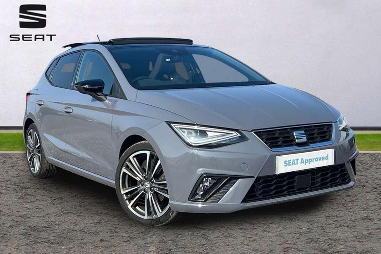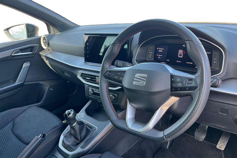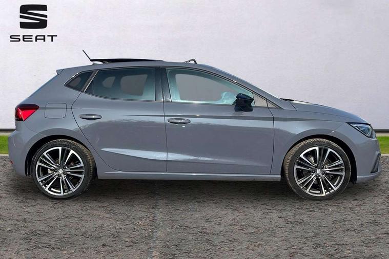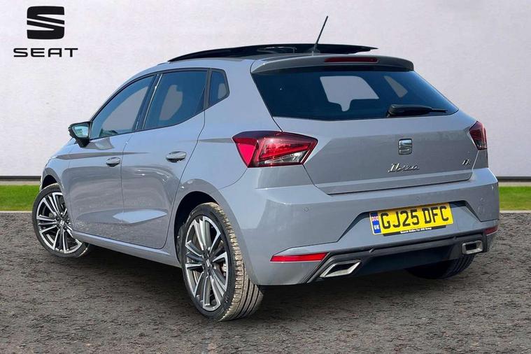 'Lights On' Reminder warning buzzer, 10" Digital cockpit, 9.2" touchscreen navigation system with type C USB socket, Voice control and DAB/AM/FM radio, Auto start and stop system, Bluetooth audio streaming with handsfree system, Digital clock, E-call, Full link smartphone integration with mirror link, wireless apple carplay, Google android auto + USB Type C cable for apple and android devices, Lane assist, Low fuel warning light, Outside temperature gauge, Power Steering, Rear parking sensor, Seat connect plus with safety, service, remote and online, SEAT drive profiles and ECO function, SEAT logo boot release, Speed limiter, Traffic sign recognition, Trip computer, Sports suspension, Auxiliary input socket, Beats audio system with 18" space saver spare wheel and luggage compartment lining, Radio/MP3 player, SD card slot, Steering wheel mounted controls, Anti theft roof antenna, Auto dimming rear view mirror, Automatic rain sensing wipers, Black door mirror caps, Body colour bumpers, Body colour door handles, Brilliant black window surrounds, Dark tinted rear windows, Doorstep with anniversary limited edition, Electric adjustable/heated/folding door mirrors, Electric front windows, Electric headlight adjustment, Electric panoramic sunroof, Electric rear windows, Front/rear fog lights, FULL LED automatic headlights with dynamic headlight range control, coming and leaving home, LED daytime running lights, Lassered lettering Anniversary Edition in B pillar, LED 3rd brake light, LED tail lights, Rear roof spoiler with FR twin exhausts, Rear side wing doors, Rear wiper, 3 seat bench in 2nd row, 60/40 split folding rear seat, Ambient interior lighting, Chrome detailing and black headlining, Dual zone climate control with combination filter, Front courtesy lights, Front cupholders x 2, Front reading lights, Gear shift indicator, Glovebox, Grey interior air vents, Grey interior styling, Height adjustable front and rear headrests (five), Height adjustable front seats, Height/reach adjust steering wheel, Illuminated air vent surrounds, Illuminated boot, Instrument lighting with brightness control, Isofix, Leather multifunction flat bottomed sports steering wheel, Microsuede cloth upholstery, Passenger sunvisor, Single front passenger seat, Sports bucket seats, Storage pockets on back of front seats, Sunvisors with mirror and driver side card holder, Safety and driving pack (S) - Ibiza, 3 point seatbelts on all 3 rear seats, ABS, Active front headrests, Child locks on rear doors, Electronic stability control, Energy recovery system, Front driver and passenger side airbags with curtain airbag and front passenger airbag deactivation, Hill hold control, Multi-Collision braking, Seat belt reminder for front and rear seats, Tiredness recognition system, Tyre pressure monitoring system, KESSY Keyless entry and go, Locking wheel bolts, Perimeter alarm and interior monitoring inc.backup horn, tow away protection and electronic engine immobiliser, Remote central locking + deadlocks, 18" Alloy wheels in cosmo grey,