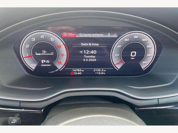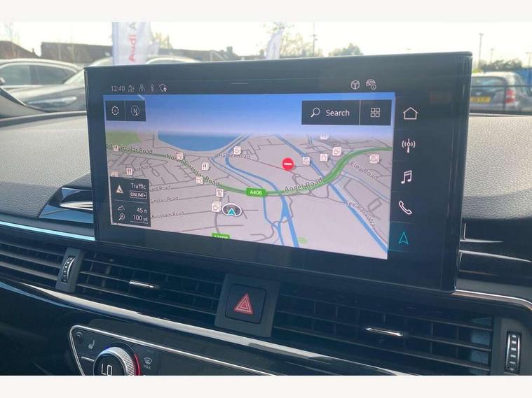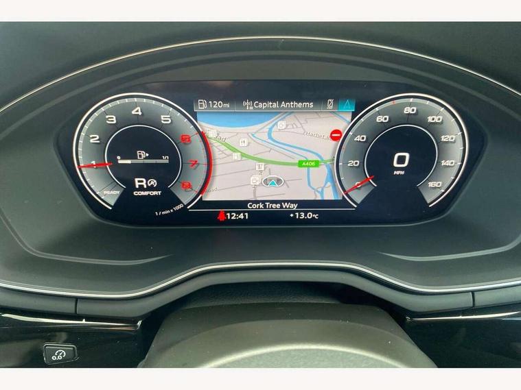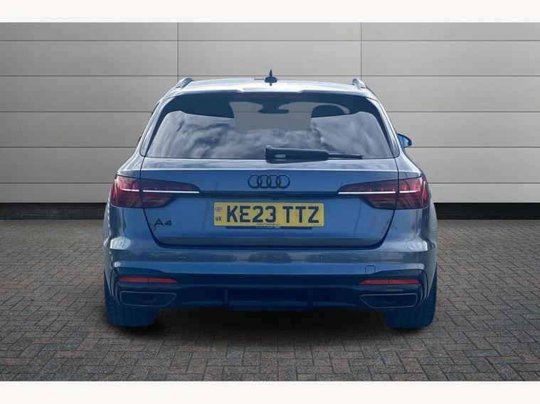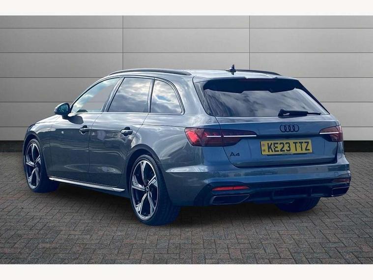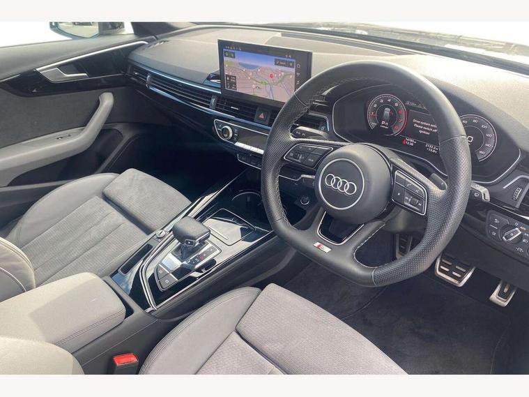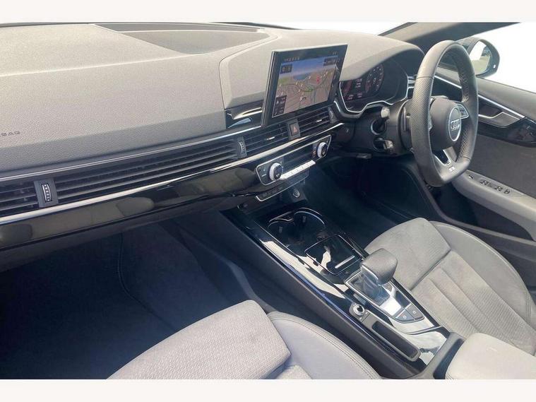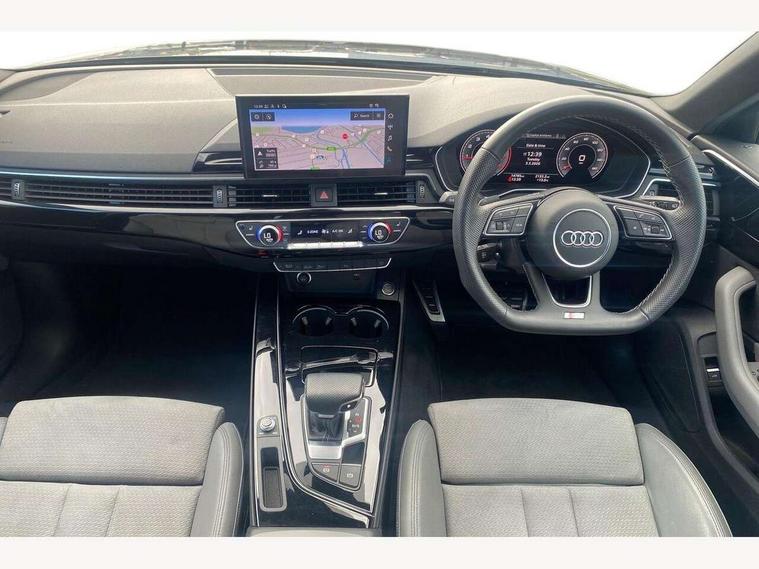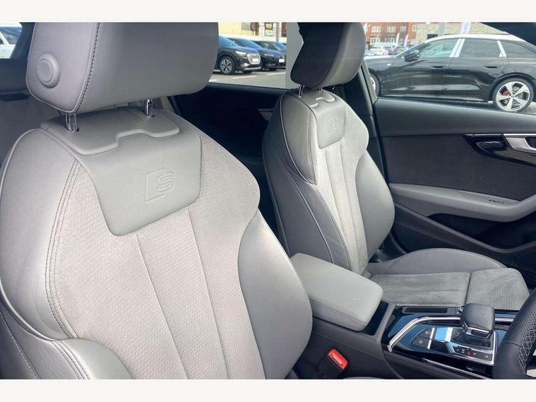 Audi connect safety and service (e-call), Audi drive select, Audi smartphone interface, Audi virtual cockpit, Automatic start-stop system with coasting functionality and efficiency programme, Bluetooth interface, Camera based traffic sign recognition, Electromechanical power steering, Email, calendar and text messages displayed via MMI, Front and rear parking sensors, Lane departure warning, MMI Navigation plus with MMI touch includes 10.1" high resolution colour MMI display, 3D map, Power operated tailgate, Rear view camera, Voice control system, 54 litre fuel tank, Sports suspension lowered by 23mm, 2 USB charging ports, 8 passive loudspeakers, DAB digital radio reception, Audi beam uses LEDs to project the audi logo onto the ground as you exit your A4, Auto dimming rear view mirror, Black Audi rings and black badging (model name in black badging, no engine badging), Body colour door handles, Body colour front spoiler lip, Body colour side sill trim, Electric adjustable/heated/folding door mirrors with auto dimming, Exhaust tailpipes in high dark chrome, Grained matt black side air inlets with matt aluminium silver inlay, High beam assistant, High gloss black B pillar trims and triangular rear door trim, LED headlights with LED rear lights + dynamic rear indicators + headlight adjustment and high beam, turning light + LED daytime running lights, LED third brake light, Privacy glass, Rain and light sensors, Rear diffuser in matt black with trim strip in matt aluminium silver, Rear side wing doors, Rear wiper, RS4 rear spoiler in body colour, S Line roof edge spoiler, Sport front and rear bumpers with side skirts, Variable intermittent front wash/wipe, Windscreen with acoustic glazing, 4 way electric lumbar support for driver and front passenger, 40/20/40 split folding 3 rear seat bench in 3 parts with rear centre armrest, Black carpets, Black cloth headlining, Black perforated leather gearknob, Contrast stitching on seats, steering wheel and gear lever gaiter, Deluxe 3 zone electronic climate control, Electric load area cover, Front and rear head restraints, Front centre armrest, Heated front seats, Illuminated door sill trims with S logo, ISOFIX child seat mounting and top tether, Manual seat adjustment, Single front passenger seat, Stainless steel pedals and foot rest, Tool kit, Black styling pack - A4 Avant, LED Interior light pack - A4/S4, 3 rear seatbelts, 6 airbags - Driver, front passenger, curtain and side windows, Attention and drowsiness assist, Electronic Stabilisation Control (ESC) including ABS, ASR and EDL, Hill hold assist, Multi collision brake assist, Pop-up bonnet for pedestrian protection, Pre sense city, Rear door child safety locks, Seatbelt monitoring, Warning triangle and first aid kit, Anti theft alarm, Anti theft wheel bolts, Central locking, Keyless Go, Piano black finish inlay, Tyre repair kit,