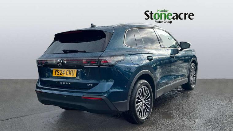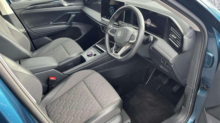 Adaptive cruise control (ACC), Advanced driver attention and drowsiness monitor, Bluetooth mobile phone interface, Digital Cockpit Pro - 10.25" high resolution dash display screen with customisable menus and information, Dynamic road sign display, E-Sim card for online connectivity, eCall emergency call service, Front Assist - Autonomous emergency braking with pedestrian and cyclist monitoring, Lane change system, Side assist, Rear traffic alert and Exit warning system, Lane keeping system Lane Assist, Multifunction front facing camera, Oncoming vehicle braking when turning including swerve support, Park assistance plus with front and rear parking sensors, Power assisted steering with speed sensitive, Start/stop system with regenerative braking, Warning signal and warning light for front and rear seatbelts not fastened, Wireless App-Connect, Front wheel drive, Digital radio reception (DAB), Diversity antenna for FM reception, Ambient lighting with logo projection, Auto dimming interior rear view mirror, Automatic headlight control system, Body coloured bumpers and air intake with chrome trim, Body coloured door handles, Body-coloured exterior mirror housings, Coming/leaving home lighting function, Heat insulating glass in side and rear windows, Heat insulating windshield, Heated rear window, High level 3rd brake light, Illuminated door handle recesses, Illuminated lightline between headlamps, Rain sensor windscreen wipers, Rear fog light on one side, reversing light on both sides, Rear side wing doors, Rear wiper, 12V outlet in center console rear and in luggage compartment, 12V socket in centre console, 3 bench rear seats in 2nd row, Air care climatronic 3 zone air conditioning system with rear air conditioning control panel, Carpet mats, front and rear, Centre console with illuminated storage compartment with sliding cover and two drinks holders, Ceramique headlining, Door and side trim panel in foam film and woven fabric, Front centre armrest, ISOFIX anchors for child seats on outer rear seats and front passenger seat compatible with i-Size, Mechanical rear seat release, Power adjustable lumbar support in front, Rear bench seat, split folding, longitudinally movable and folding with load-through hatch and centre armrest, Safety optimised front head restraints, Single front passenger seat, Sun visors with illuminated vanity mirrors, Three rear head restraints, Variable luggage compartment floor, Comfort package incl. Memory feature for Park assist and Safelock - Tiguan, Design package - Tiguan, 3 point seat belt for centre rear seats, 3 Point seat belts in front with pretensioners, 3 point seatbelts in outer rear with ECE label, Driver and front passenger airbag with front passenger airbag deactivation, Electronic parking brake with auto hold, Front and rear curtain airbags, Front and rear side airbags, Front centre airbag, Front disc brakes, Manual child proof rear door locks, Rear disc brakes, Two tone horn, Warning triangle, Anti theft wheel bolts, Soul instrument panel,