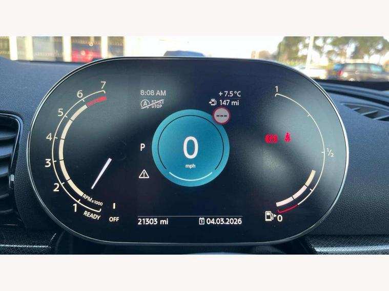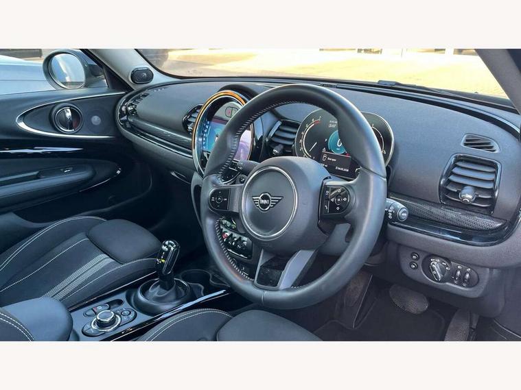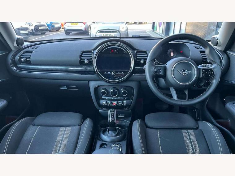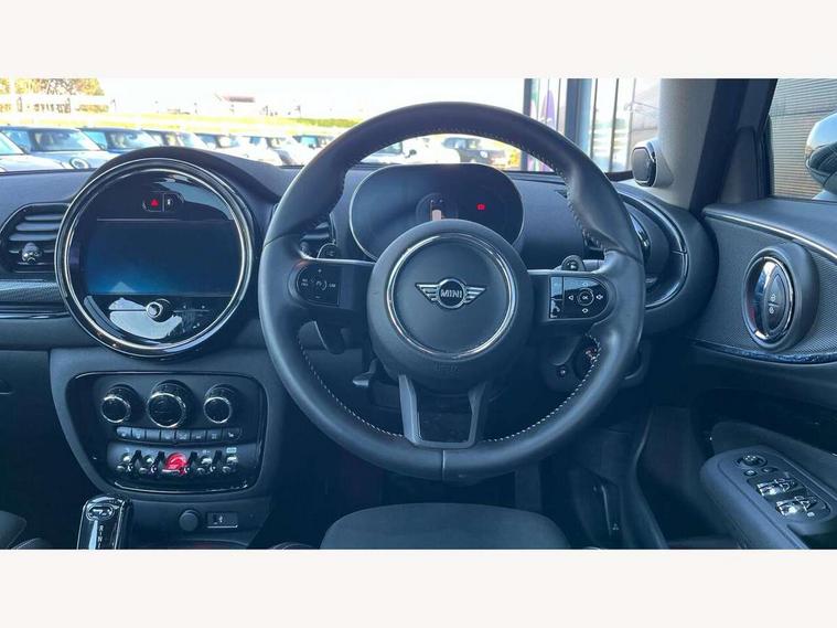 Active Guard incl speed limiting and lane departure functions with auto steering, and front collision warning with brake intervention, Automatic start/stop function with brake energy recuperation, Compatible mobile phone bluetooth with audio streaming, Digital cockpit, Electro-mechanical speed dependant steering assistance, Instrument cluster, Mini E-call, MINI TeleServices, On board computer, Double Vanos system, Fully variable valve control, High precision injection, Performance Control, Steptronic transmission with double clutch, FM tuner and DAB digital radio, Bonnet scoop, Chrome border honeycomb structure radiator grille with S badge, Chrome fuel filler cap, Dynamic brake lights, Electric windows, Heated rear window, Heated windscreen washer jets, LED headlights with closed ring as daytime driving lights, LED rear light with union jack design, Metal door sill strips with Cooper S imprint, Model logo, Model logo on rear doors, Rain sensor with auto headlights, Rear fog lights, Rear window wiper, Side scuttle panel with integrated indicator, Split rear doors, Sun/heat protection glass, Twin exhaust tailpipe, White indicator lenses, 12V Accessory socket in centre console, 3 spoke sport leather steering wheel + limiter function and audio controls, 360L luggage compartment capacity, 4 lashing eyes in luggage compartment, 60/40 split folding rear seat, Chrome interior highlights, Cupholders, English handbook, Front and rear head restraints, Glove compartment, Headliner with grab handles and clothes hooks, Height and length steering column adjustment, Interior lighting with 12 basic colours selectable via toggle switch in roof, Isofix rear child seat preparation, Leather gearshift lever and handbrake gaiters, LED reading lights, vanity mirror lights, front foot well light and spotlight on front seats, Manual air conditioning, Mechanical seat adjustment, driver seat height adjust, forward/back and front seats backrest, Multifunction steering wheel, Storage compartments in doors, Sunvisors with vanity mirrors, Toolkit, Excitement pack - Clubman, Navigation pack - Clubman, 2 tone horn, 3 point seatbelts on all seats, 6 Airbags - front, side, head and seat belt tensioners, Anti-lock braking system (ABS), DSC - Dynamic Stability Control, Electronic handbrake, Front and rear disc brakes, Tyre pressure monitoring system, Alarm system with tilt sensor, monitoring doors, bonnet interior and tailgate, Auto drive away locking, Deadlocking function, Electronic vehicle immobiliser, Locking wheel bolts, Start/stop toggle with keyless go, Tyre repair kit,