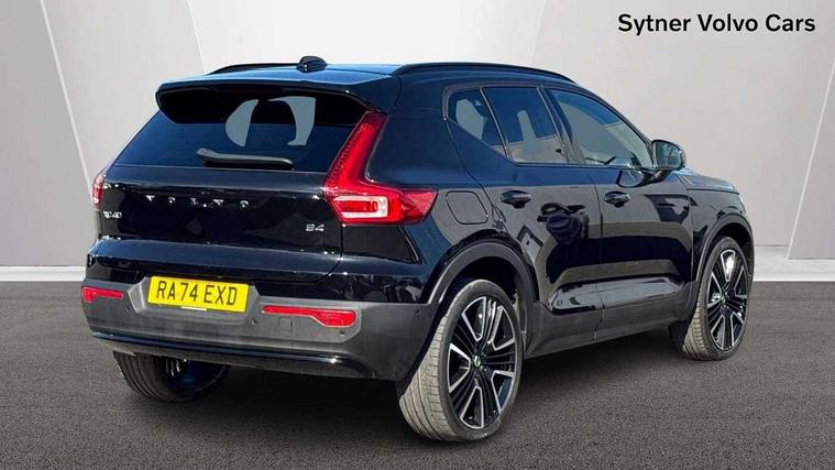 12.3" Progressive Driver Display, 360 degree surround view parking camera with side proximity sensors, 9" centre console portrait touch screen, Adjustable steering wheel force, Android auto (Wired), Apple carplay (wired), Bluetooth handsfree system, Driver alert control, Driver assistance (pilot assist and adaptive cruise control), Driver awareness - Blind spot information system with steer assist, cross traffic alert with autobrake and rear collision warning and mitigation, E-call, Front park assist, Google automotive services - Enabled entertainment apps, navigation with google maps, voice recognition with google assistant, Hands free power tailgate, Intelligent speed assistance, Lane keeping aid, Oncoming Lane Mitigation, Rear park assist, Speed sensitive steering, Volvo cars services with app - Driving journal, emergency and breakdown call, engine remote start, remote door locking/unlocking and vehicle dashboard, Wireless/Inductive Mobile Phone Charging, Automatic transmission with start/stop and manual change functions, Dynamic chassis, DAB Digital radio, Premium Sound by Harman Kardon, Dolby Pro Logic II Surround Sound, Dirac Unison, 12 speakers/600W and subwoofer, Steering wheel mounted remote controls, Active bending pixel LED headlights with adaptive shadow technology, Active high beam incorporating daytime running lights, Adaptive brake lights with high level LED brake lights, Auto dimming feature for exterior door mirrors, Auto dimming interior mirror, Automatic headlamp levelling, Dark tinted windows - rear side windows and rear screen, Front aluminium tread plates, Front and rear electric windows, Headlight cleaning system, High gloss black front and rear skid plate, High gloss black front bumper deco, High gloss black mesh front grille with high gloss black surround, High gloss black window trim, Home safe and approach lighting, Integrated roof rails in high gloss black, LED front fog lights with cornering function, Power glass tilt and slide panoramic sunroof with sun curtain, Puddle lights, Rain sensor with automatic windscreen wiper activation, Rear side wing doors, Rear wiper, Roof antenna, Roof spoiler, Visible VIN plate, 12V socket in front tunnel console and luggage compartment, 2-Zone electronic climate control with CleanZone air quality system and pollen filter, 3 seat bench in 2nd row, 3 Spoke tailored steering wheel with chrome trim, 60/40 versatile split folding rear seat, Centre console cupholders and storage, Flexible load floor and grocery bag holder, Floor mats, Front cabin courtesy lights, Front door pocket, front cupholder, ambient front door, rear reading, rear courtesy, instrument panel and tailgate lighting, Front footwell illumination, Front headrests, Front reading lights, Front seat cushion extensions, Front side step illumination (under door), Glovebox bag hook, Heated front seats, Height/reach adjustable steering column, High gloss centre tunnel deco, Illuminated glovebox, Illuminated luggage compartment, Illuminated vanity mirrors + ticket holder, Integrated waste bin, Isofix attachments on outer rear seats, Load cover, Load protection net, Multi directional lumbar support for driver and passenger seat, Power driver seat with memory + exterior mirrors memory, Power folding rear headrests, Power passenger seat, Rear armrest with cupholders, Single front passenger seat, Underfloor cargo storage, Climate pack without heated front seats - XC40, 3x3 point rear seatbelts, City safety with steering support with Pedestrian + cyclist + front collision warning with full auto brake and rear auto brake, Driver and passenger airbags, Drivers knee airbag, Electronic parking brake with auto hold, First aid kit, Front and outer rear seatbelt reminder and pretensioners, Front seats SIPS airbags, Hill descent control, Hill start assist, Inflatable curtain, Passenger airbag cut-off device, Power child locks on rear doors, Road sign information display, Run off Road Protection, SIPS (Side Impact Protection System), Slippery road and hazard light alert, Stability and Traction Control with Spin control, Engine Drag Control and Corner Traction Control, Tyre pressure monitoring system, Vehicle deceleration control with Anti-lock Brake System, Electronic Brake Distribution and Emergency Brake Assist, Warning triangle, WHIPS whiplash protection system - front, 2 x Key integrated remote control central locking including with deadlocking system and auto open/close windows and sunroof, Anti-theft alarm including immobiliser/volume sensor + level sensor, Keyless drive includes keyless entry and keyless start, Locking wheel nuts,