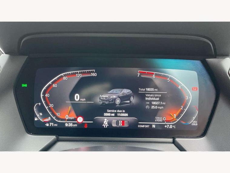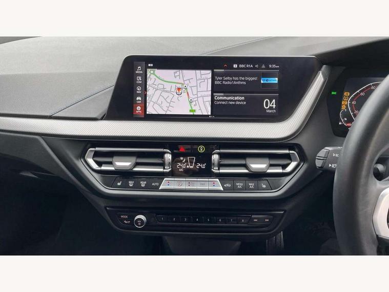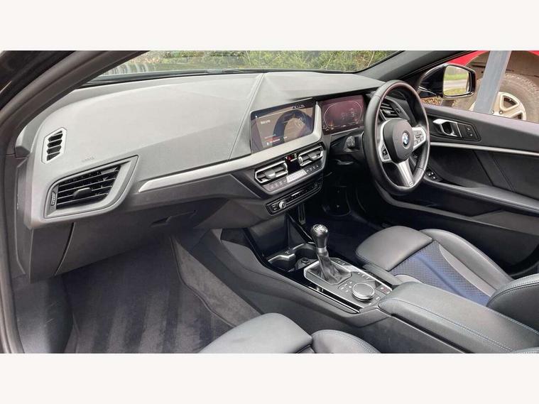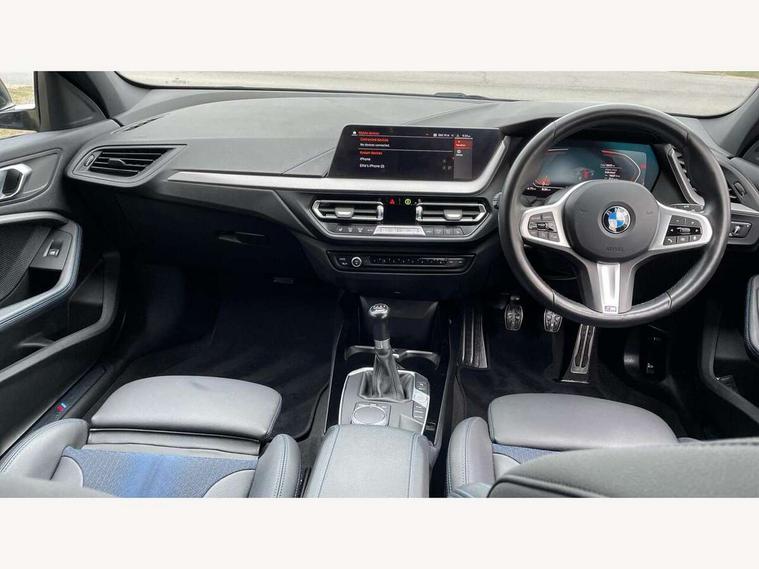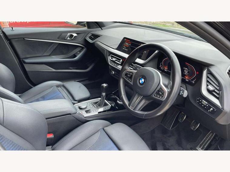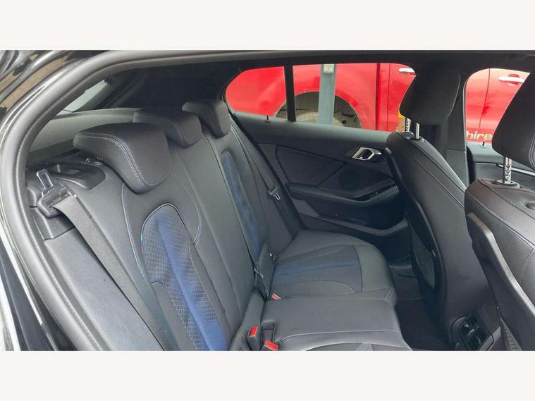 Active guard plus, Attentiveness assist, BMW ConnectedDrive online services, BMW Teleservices, Check Control warning system for monitoring of lights and door/luggage compartment open warning, Cruise control with speed limiter, Eco pro mode, Front axle single joint with specific axle kinematics to minimise drive influences on steering + provide increased rigidity agile driving behaviour, Integrated owners handbook, Lane departure warning system, Oil sensor for level and grade, On board computer, Optimum shift indicator, Personal Profile, Pull away assistant, Rigidly mounted rear subframe - Multi link construction with separate spring / damper configuration and excellent driving characteristics, Speed limit Info including no-overtaking indicator, Aluminium lightweight construction, Anti roll bar front and rear, Balancer shaft, Double VANOS twin scroll turbocharging system, Drive Performance Control, Electronic differential lock, High precision injection, M sport suspension, Petrol Particulate Filter, Twin tube gas filled shock absorbers with degressive characteristic curve, VALVETRONIC engine management, DAB Digital radio, Auto dimming rear view mirror, Automatic headlight beam throw control, Automatic windscreen wipers and automatic headlight, Body colour door handles, Body colour mirror caps, Body colour roof trims, Chrome 'M' logo side designation, Chrome exhaust twin tailpipes round 90mm in left, Chrome kidney grille frame with Satin Aluminium struts, Direction indicator side lights in exterior mirrors, Electrically adjustable exterior mirror with mirror adjustment switch on drivers armrest and aspheric on driver side, convex on passenger side, Fading support, Folding side mirrors with auto dimming/folding wing mirrors with auto dimming, Follow me home headlights, Front and rear bumper system with replaceable deformation elements, Front and rear electric windows with open and close fingertip control, anti trap facility and comfort closing, Front door sill finishers in black plastic with M designation in metallic look, Green tinted heat protection glazing, High gloss shadowline window frame, Recess cover mirror frames and B/C pillar embelisher trim, High level third brake light, Integrated front windscreen with washer jets, LED daytime running lights, LED eyebrow turn indicators, LED front fog lights, Lightweight engineering, Matt black air guide grilles, Matt black wheel arch trim, Model designation on electric bootlid, Nearside reverse light in rear light cluster, Preparation for high beam assistant, Rear fog lights, Rear side wing doors, Rear window wiper, Shark fin antenna, Trailer stabilisation logic, Visible VIN plate, Welcome lighting, 12V power socket in front centre console with blanking plug, 3 rear seat head restraints, 3 seat bench in 2nd row, 3 spoke sports leather steering wheel in black leather with black stitching and decorative finisher in pearl chrome, specific M badge + leather knob, Anthracite headlining, Black boot net with lashing eyes, Cargo function on 2nd seat row, Child seat ISOFIX attachment for two outer rear seats and front passenger seat with anchorage points, Conditioned based service, Driver and front passenger backrest net on rear, Driver and front passenger seat heating, Driver side folding compartment in instrument panel, Folding rear clothes hook, Four grab handles integrated in roof lining, Front and rear door pockets with bottle holders, Front and rear side armrest integrated into door trim, Front armrest, Front sports seats, Gearshift lever with M designation, Glove compartment, Height adjustable front head restraints, Luggage compartment for bag hooks on left and right, foldable luggage compartment liner and four lashing eyelets, Manual adjust steering wheel, Multi-function controls for steering wheel, Single front passenger seat, Storage compartment in centre console, Storage compartment in luggage compartment, Stowage of the parcel shelf in luggage compartment trim, Sun visors with vanity mirrors and insert tab, Two front centre console cupholders, Two zone automatic air conditioning, Type C two USB ports in rear centre console, Velour floor mats, Additional interior lighting pack - 1 Series, BMW live cockpit professional pack- 1 Series, Connected pack professional - 1 Series, Interior lights pack - 1 Series, M Sport exterior styling aerodynamics pack - 1 Series, 2 tone horn, 3 point seatbelts on all seats, front pyrotechnic belt tensioners, stopper and belt force limiters, rear coded belt buckles, Airbags - Front driver/passenger, front and rear curtain head protection, front side, manual deactivation of front passenger airbag, Anti lock braking system (ABS) with brake assist, BMW emergency call, Brake drying, Braking readiness, Child proof locking system in rear door, City braking function, Comfort modes, Cornering brake control, Crash sensor activating of airbags, Unlocking doors, hazard warning lights, interior light, safety battery terminal, Driver and front passenger seat belt security check, Dynamic stability control + (DSC+), Dynamic Traction Control - DTC, Electrically operated hand brake, Front and rear disc brakes, Seatbelt warning, Side impact protection, Tyre pressure monitoring system, Warning triangle and first aid kit, Central locking switch for all doors, fuel filler cap and luggage compartment, Deadlocking function system to all doors, Drive away locking system on all doors and luggage compartment with de-activated in iDrive settings, Locking wheel bolts, Remote control with integrated key with High-gloss Black inlay and M designation and 1 button for open/ close lock, window, open luggage compartment, Start/stop button illuminated in centre console with keyless engine start and auto start stop deactivation button, Thatcham Cat.1 alarm and immobiliser, Wheel slip limitation close to the actuator (ARB), Contrast stitching on instrument panel, 18" Burnished M double spoke bi-colour alloy wheels finished in orbit grey - style 819M