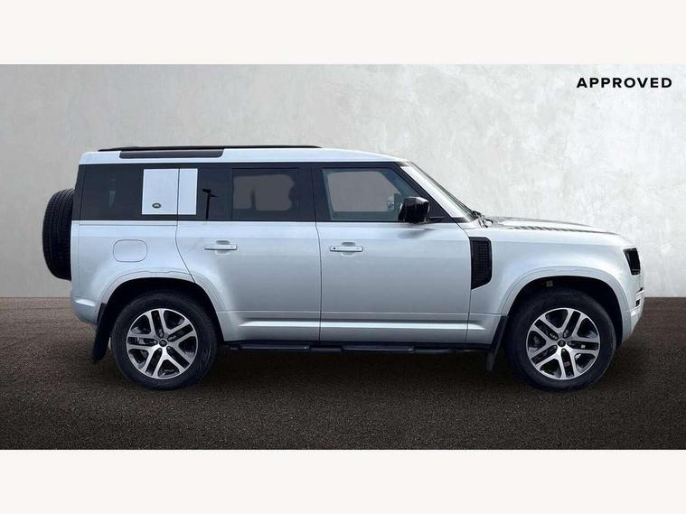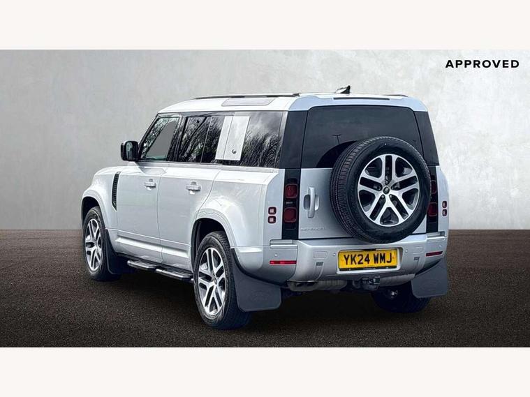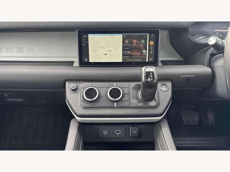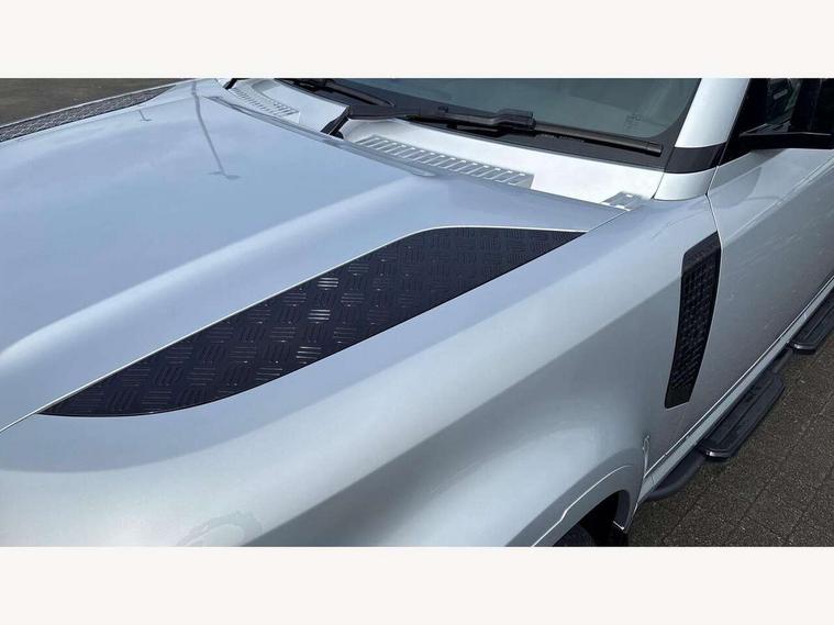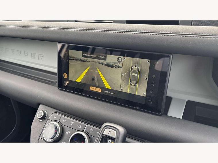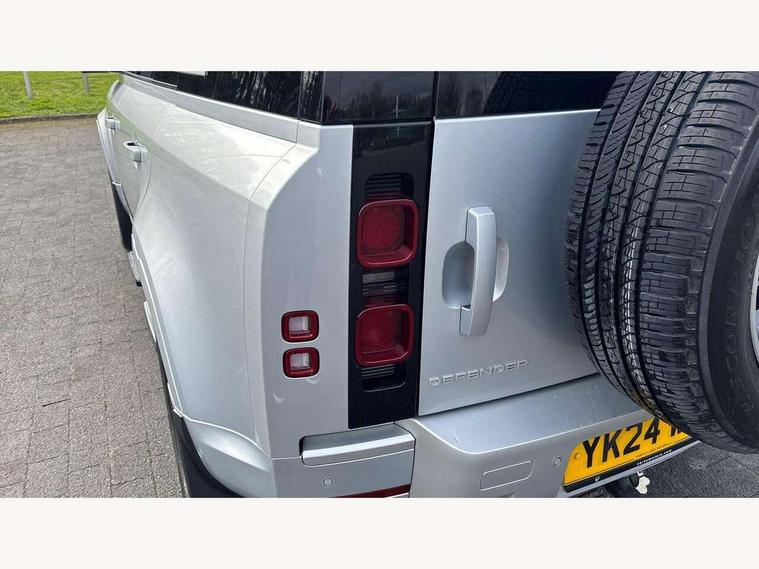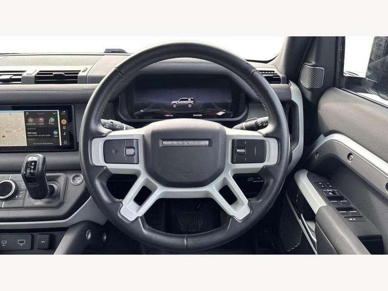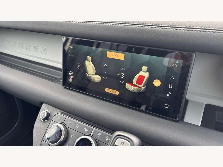 360 degree parking aid, 3D Surround Camera with 360 View, 180 Rear View, Front Traffic Detection, Forward Vehicle Guidance, Tow Hitch Assist and clear sight Ground View, Android Auto, Apple CarPlay, Assisted tailgate with soft close, Blind spot assist, Bluetooth system, Brake pad wear indicator, Clear exit monitor, Connected navigation pro, Cruise control + speed limiter, Driver condition monitor, Electric power assisted steering (EPAS), Interactive driver display, Lane keep assist, Push button start, Rear traffic monitor, Traffic sign recognition with adaptive speed limiter, Trip computer, Wade Sensing, 8 speed automatic transmission, Adaptive dynamics, All wheel drive system, Electronic air suspension, Twin speed transfer box, DAB Radio (Digital Audio Broadcasting), Pivi pro connected, Automatic headlight levelling, Automatic headlights, Body coloured roof, Centre high mounted stop light, ClearSight interior rear view mirror, Electric heated/power fold door mirrors with approach lights and auto dimming driver side, Electric windows with one touch open/close and anti-trap, Follow me home lighting, Front fog lights, Heated rear window with timer, Heated windscreen, Illuminated metal treadplates with brand name script, LED tail lights, Matrix LED headlights with signature DRL, Privacy glass, Puddle lights, Rain sensing windscreen wipers, Rear fog lights, Rear side wing doors, Rear wiper, Side hinged tailgate, Signature graphic (with interior storage), Sliding panoramic roof, Trailer stability assist, 12 way heated and cooled electric memory front seats with 2 way manual headrests, 12V power socket in loadspace, 3 seat bench in 2nd row, 40:20:40 folding rear seats with centre armrest, Alpine lights, Configurable cabin lighting, Durable rubber cabin flooring, Durable rubber loadspace flooring, Electric cabin pre conditioning, Electric reach + rake adjustable steering column, Footwell lights, Front centre console refrigerator compartment, Front passenger isofix child seat attachment, Grained Leather upholstery, Heated steering wheel, Leather gearshift, Light oyster morzine headlining, Loadspace cover, Loadspace Hook, Multifunction steering wheel, Overhead stowage for sunglasses, Premium cabin lighting, Rear headrests, Rear ISOFIX, Rear reading lights, Single front passenger seat, Standard interior, Standard leather steering wheel, Standard seat configuration, Storage glovebox, Sunvisors with illuminated vanity mirrors, Online pack with data plan - Defender, XS Edition exterior pack - Defender, 5 x 3 point seatbelts, ABS, Brake hold function, Cornering brake control (CBC), Cross car beam in light grey powder coat brushed finish, Customer configurable autolock, DSC - Dynamic Stability Control, EBD - Electronic brakeforce distribution, Electric parking brake (EPB), Emergency brake assist, Emergency braking, ESP + traction control, Front airbags with passenger seat occupant detector, HDC - Hill descent control, Hill launch assist, Low traction launch, Power operated child locks, Remote for (e-Call, Optimised assistance call, InControl app, Climate, beep and flash and door), RSC - Roll stability control, Seat belt reminder, TPMS (Tyre pressure monitoring system), Alarm, Immobiliser, Intrusion sensor, Keyless entry, Locking wheel nuts,