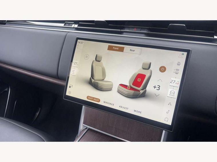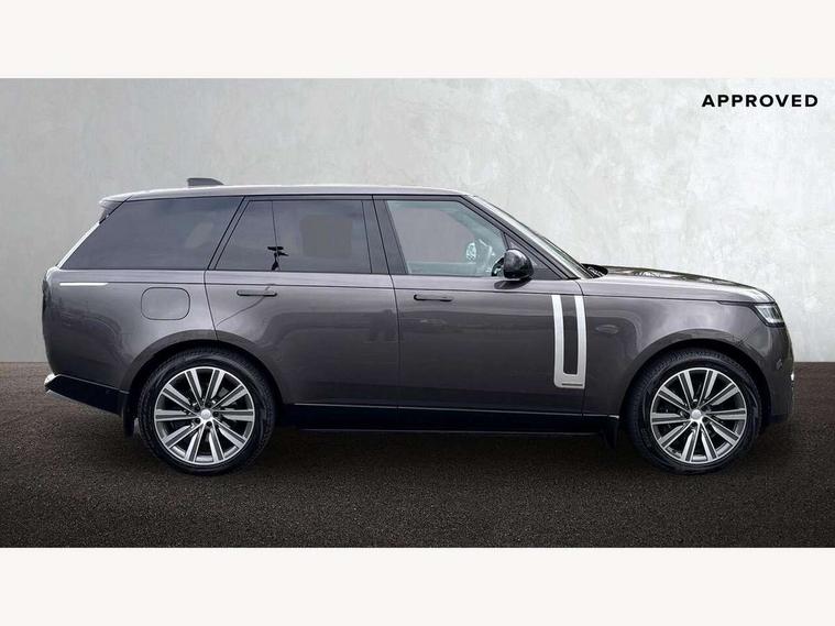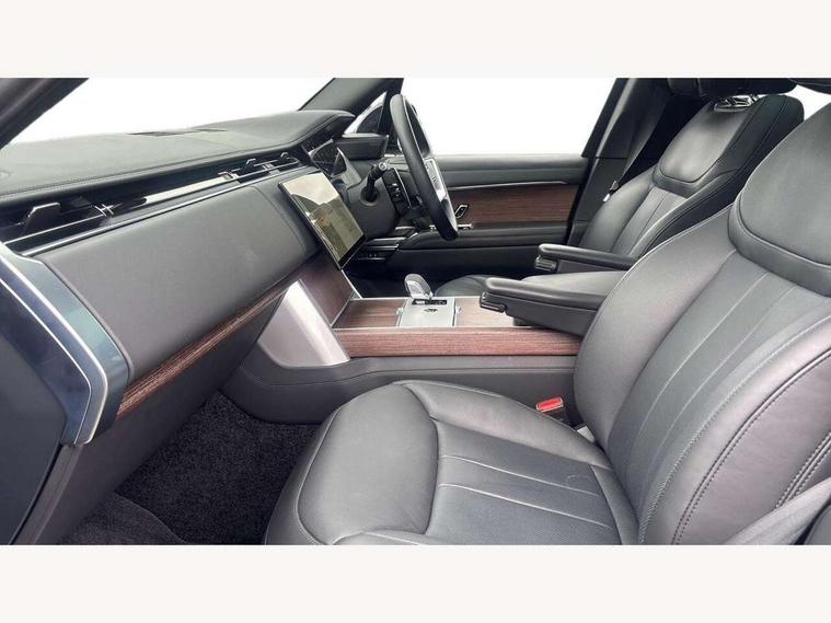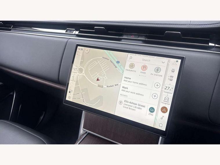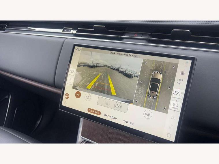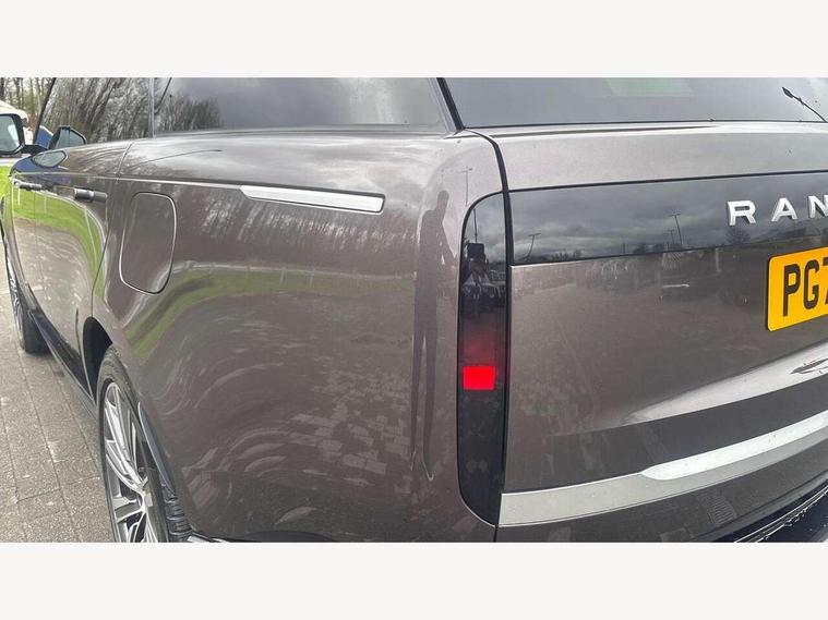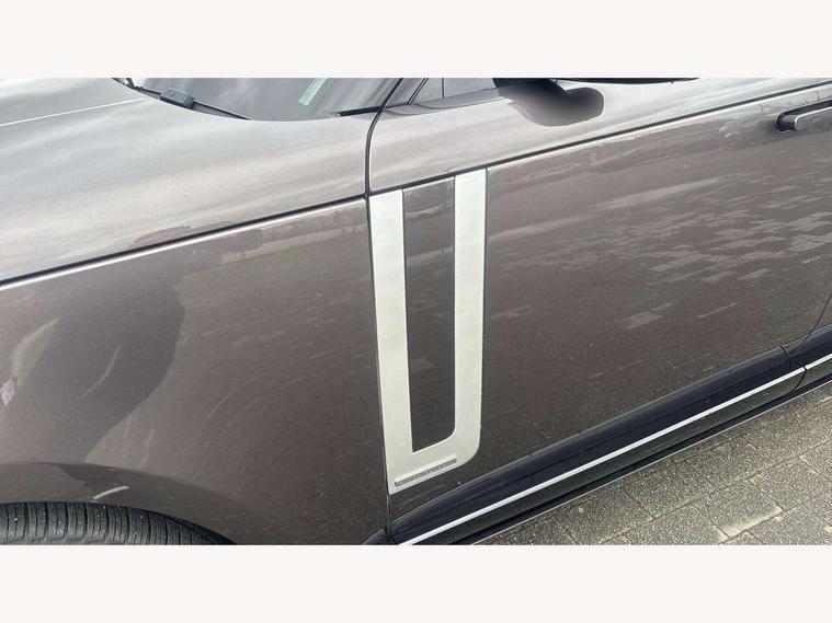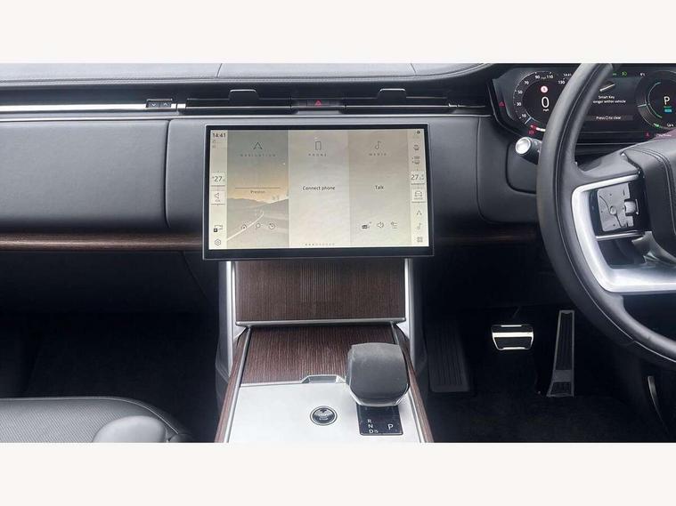 13.1" Touchscreen, 3D surround camera inc frwd traffic detection, vehicle clearance guidance, 3D view, clearsight ground view, manoevure light, 360 parking aid, wade sensing, All Terrain Info Centre, All wheel steering, Android Auto, Apple car play, Blind spot assist, Bluetooth connectivity streaming, Configurable programs, Driver condition response, Eco mode, Electric power assisted steering (EPAS), Emergency call service, Front and rear parking aid, Head up Display, Interactive driver display, Lane keep assist, Rear collision monitor, Rear traffic monitor, Remote, Traffic sign recognition with adaptive speed limiter, Wi-Fi Enabled with data plan, Wireless device charging with phone signal booster, 7 kW onboard charger, 8 speed automatic transmission, Active damper technology system, Adaptive dynamics, Adaptive off-road cruise control, All Wheel Drive (AWD), Automatic access height, Electronic active differential with torque vectoring by braking, Home charging cable 5m Mode 2 including plugs, Public charging cable 5m Mode 2 including plugs, Terrain Response 2 Auto, Twin speed transfer box, Digital Audio Broadcast radio-DAB, Pivi pro including smart settings, Connected navigation pro, nuance speech, USB socket, Acoustic laminated windscreen, Animated directional indicators, Automatic headlights, Automatic levelling headlights, Centre high mounted stop light, ClearSight interior rear view mirror, Electric windows with one touch open/close and anti trap, Engine cover, Flush deployable exterior door handles, Front and rear recovery eyes, Front fog lights, Headlamp power wash, Heated rear window, Heated washer jets, Illuminated metal treadplates with Autobiography script, Laminated front and rear side glass, LED tail lights, Power fold, auto-dimming, heated door mirrors with approach lights, Rain sensing windscreen wipers, Rear boot, Rear fog lights, Rear side wing doors, Side repeater indicators in mirror, Solar attenuating windscreen, Trailer stability assist, Winter wiper park position, 12V power sockets, 3 seat bench in 2nd row, Air quality sensor, Auto folding loadspace cover, Bright metal pedals, Cabin air purification pro, Cabin lighting, Customer configurable single point entry, Driver and passenger front seat armrests, Easy boot loading, Ebony Carpet, Electric rear side window sunblinds, Front and rear cupholders, Front and rear grab handles, Front head restraints, Gearshift paddles, Heated steering wheel, Hook in load space, Loadspace light, Luggage tie down in loadspace, Multifunction steering wheel, Rear centre armrest, Rear head restraints, Rear ISOFIX, Single front passenger seat, SV bespoke carpet mats, Twin blade sunvisors with Illuminated vanity mirrors, Upper and lower glovebox, Versatile loadspace floor in tailgate, Online pack with data plan - Range Rover, 3x3 point rear seat belts, Anti-lock braking system (ABS), Black brake calipers, Brake hold function, Cornering brake control (CBC), Customer configurable autolock, DSC - Dynamic Stability Control, Electronic brake force distribution, Electronic parking brake, Electronic traction control, Emergency brake assist, Emergency braking, Front airbags with passenger seat occupant detector, Front side airbags, Hill descent control, Hill launch assist, Illuminated seat belt buckles, Low traction launch, Occupant protection assist, Power operated child locks, Roll stability control, Tyre pressure monitoring system (TPMS), Immobiliser, Intrusion sensor and alarm, Keyless entry, Locking wheel nuts, Remote central locking, Noble chrome controls,